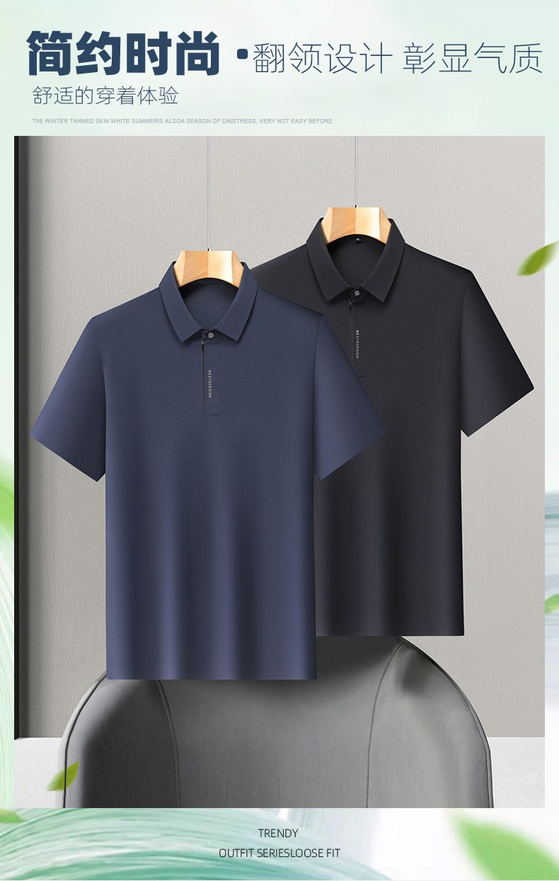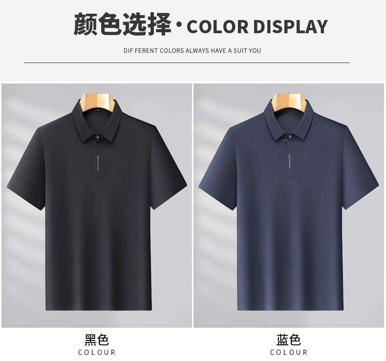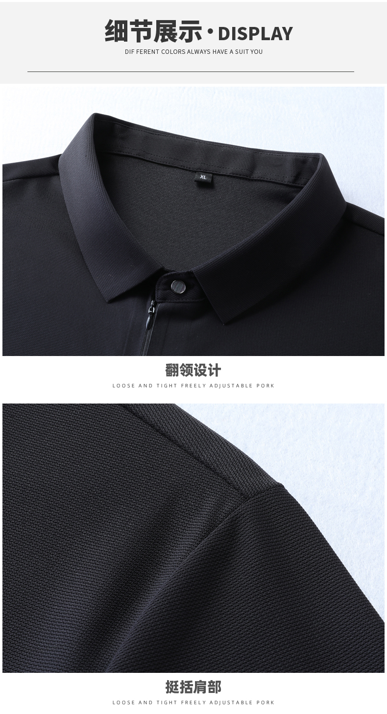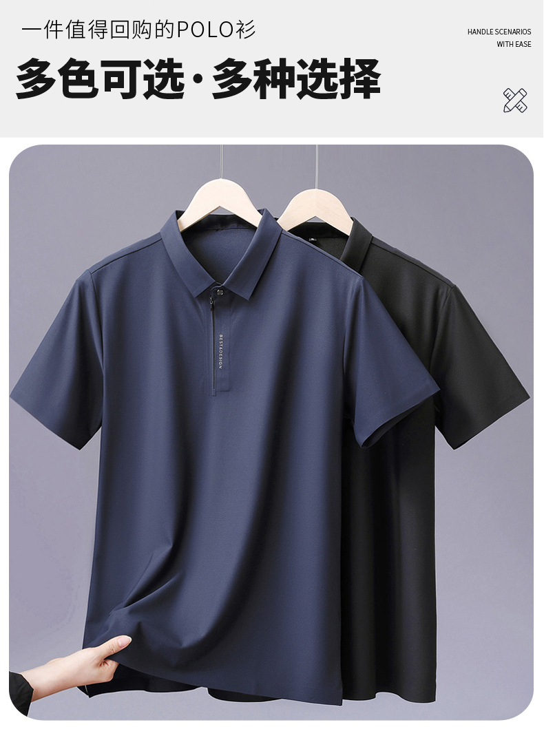 【DLS】大依优型大码拉链款短袖Polo衫翻领加肥加大男士大号弹力透气舒适夏季弹力半袖