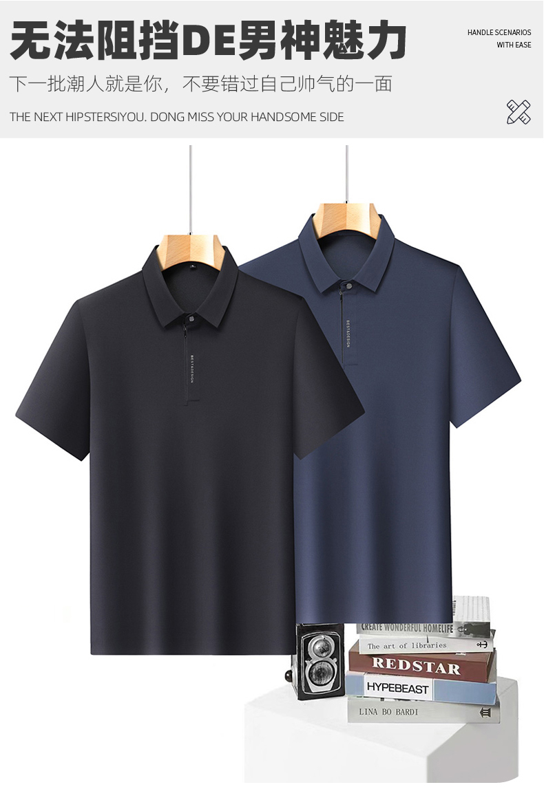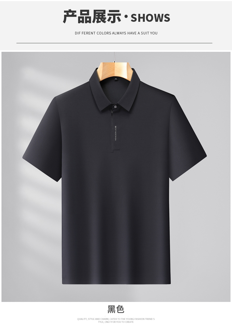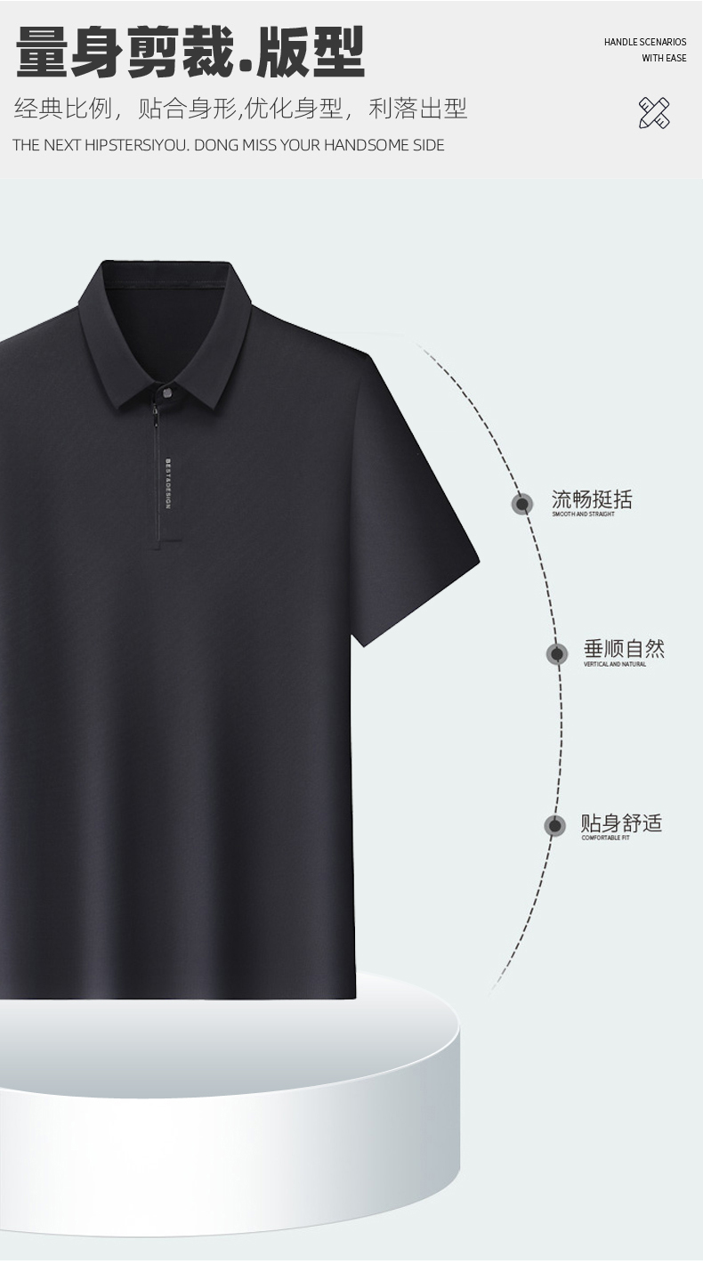 【DLS】大依优型大码拉链款短袖Polo衫翻领加肥加大男士大号弹力透气舒适夏季弹力半袖