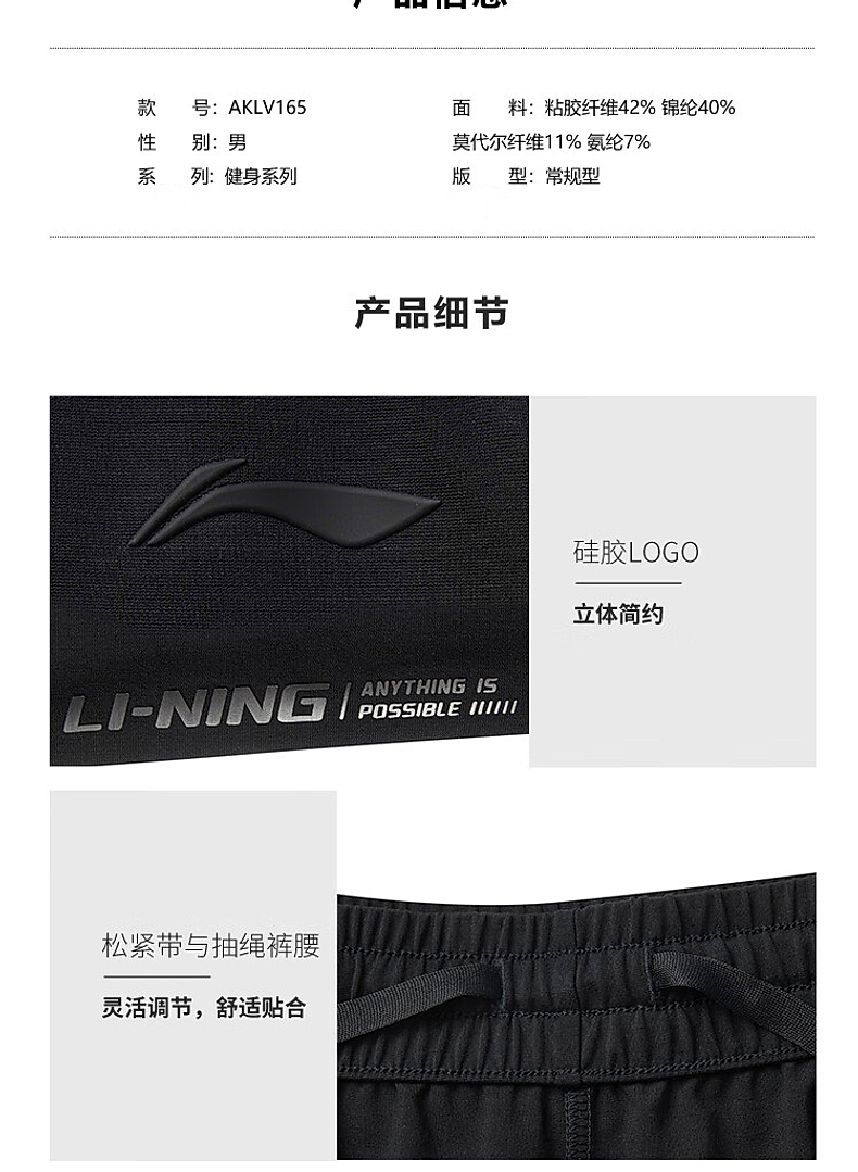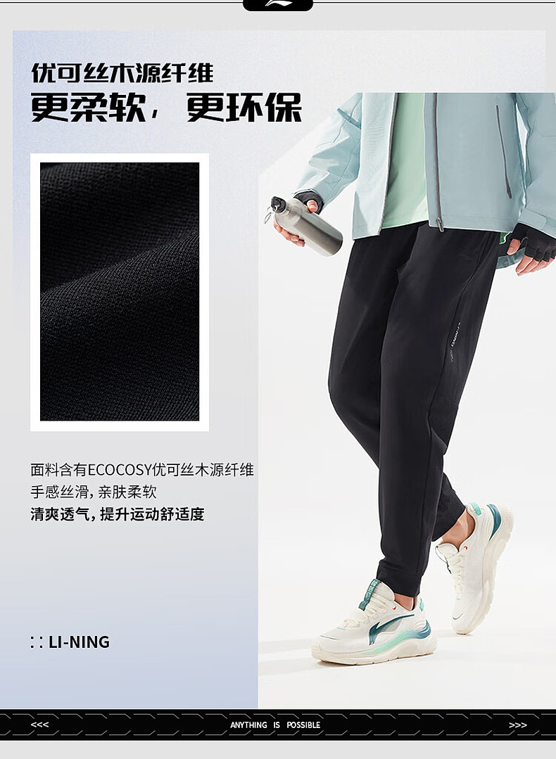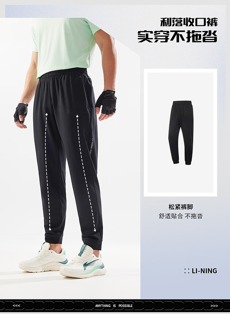 李宁健身系列男子冰感舒适吸湿排汗束脚卫裤AKLV165