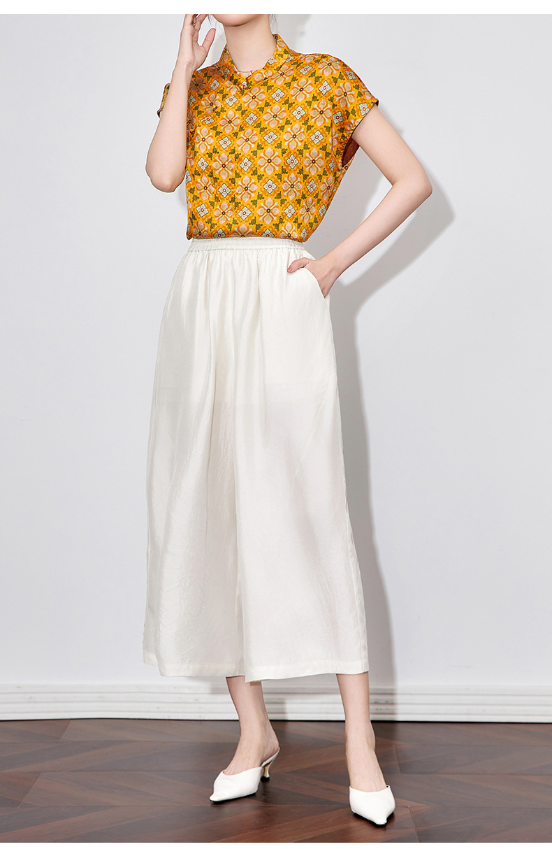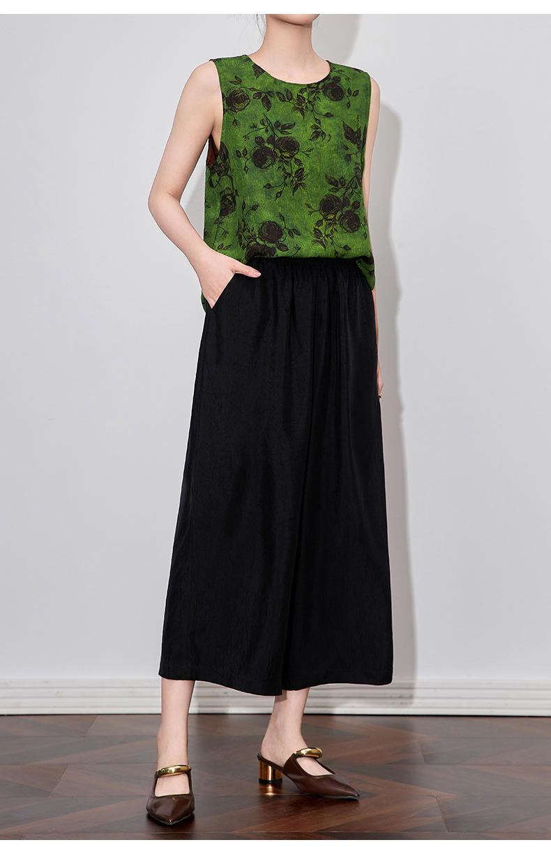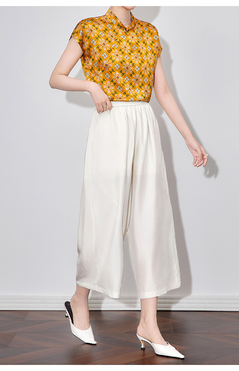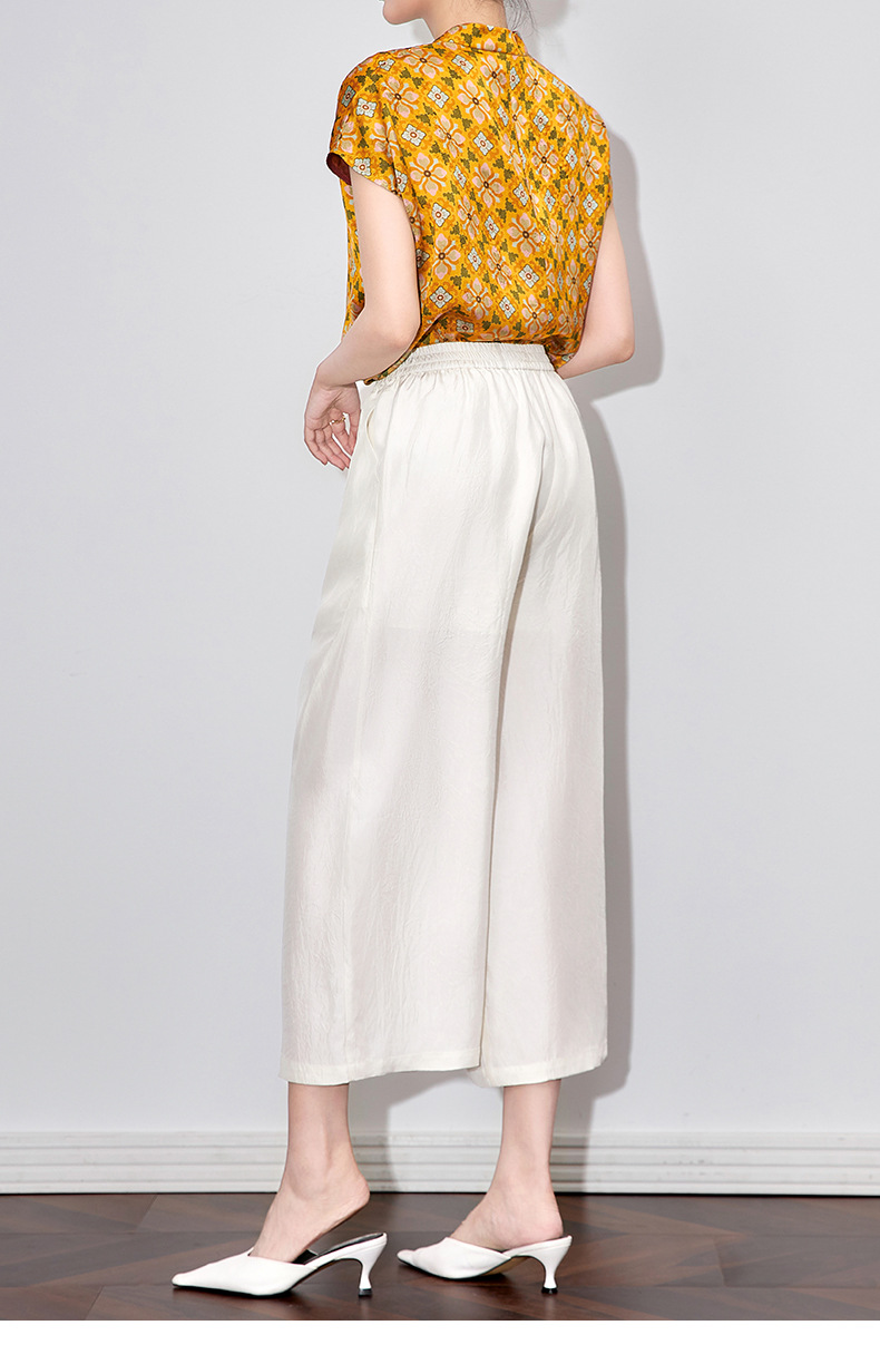WL 2510410凉感抓皱醋酸缎宽松松紧腰九分裤通勤休闲时尚 商品图0