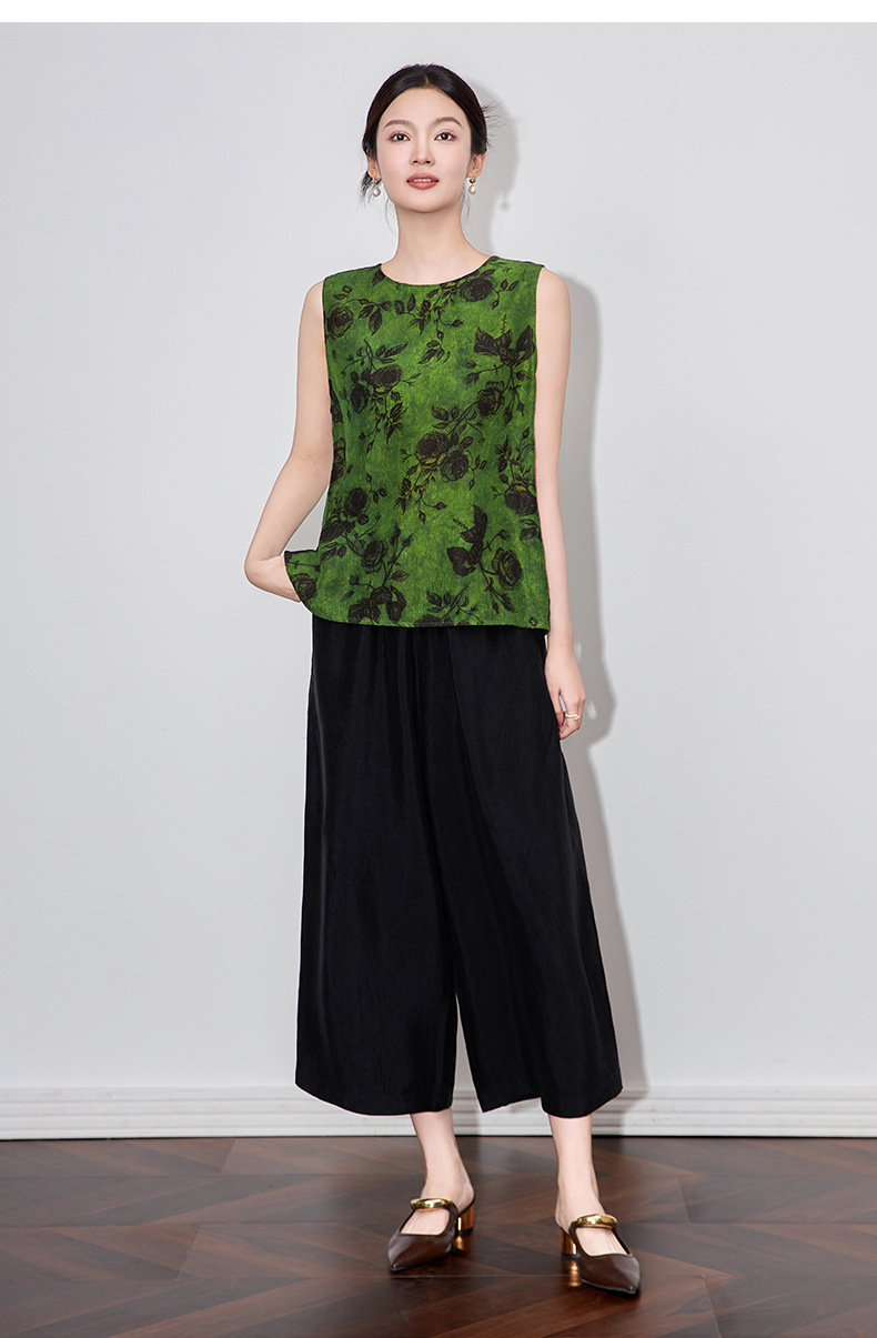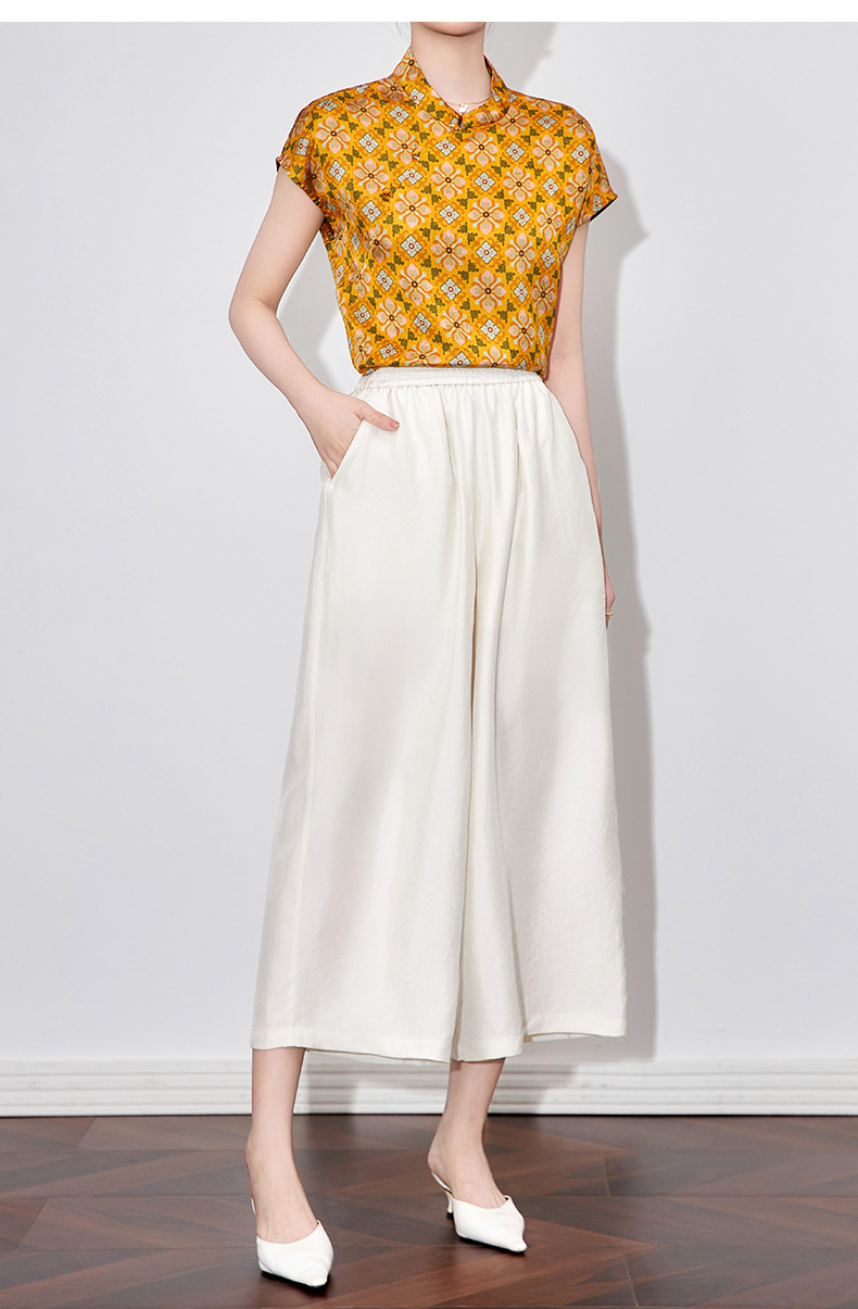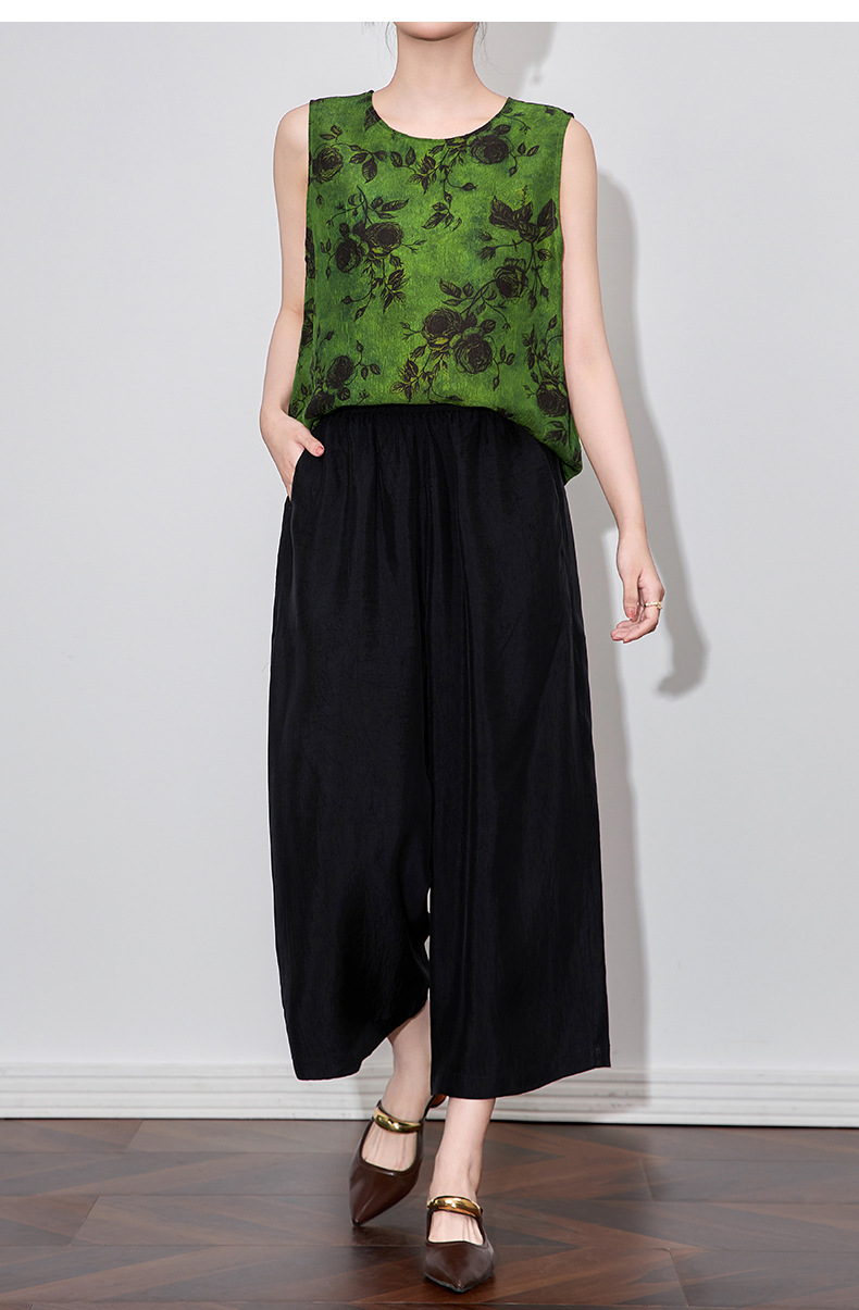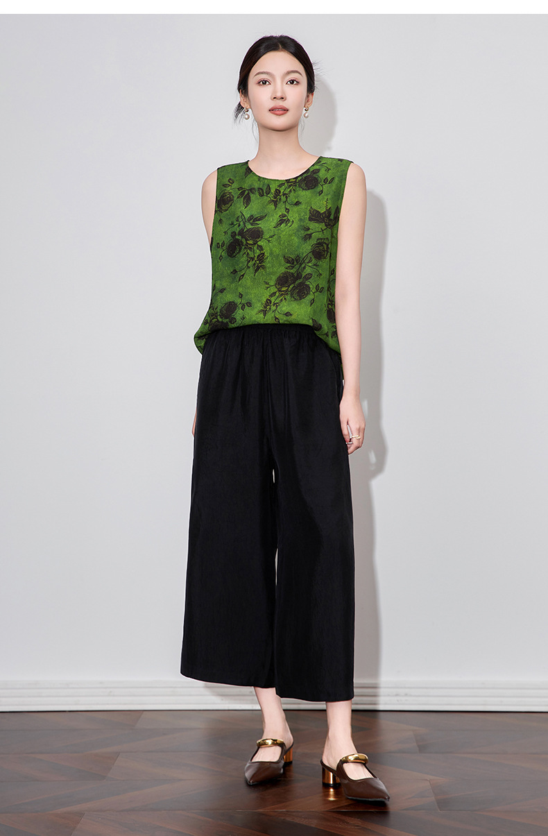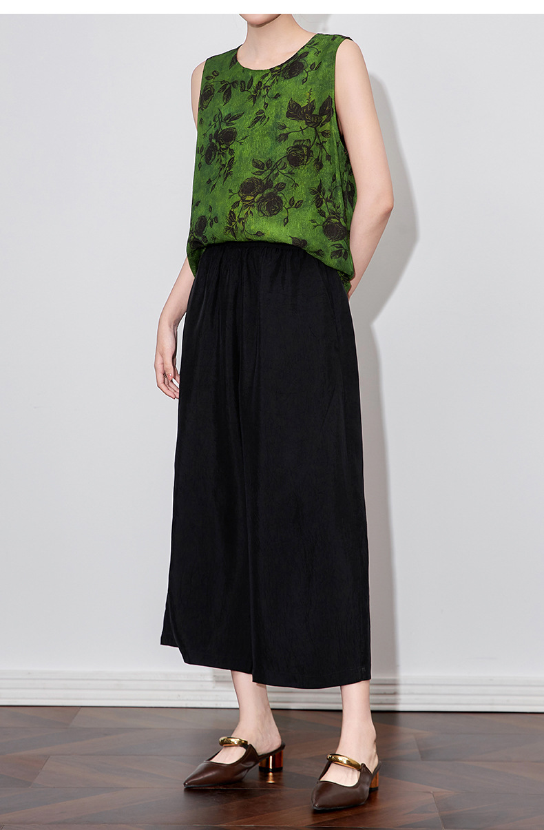 WL 2510410凉感抓皱醋酸缎宽松松紧腰九分裤通勤休闲时尚 商品图0