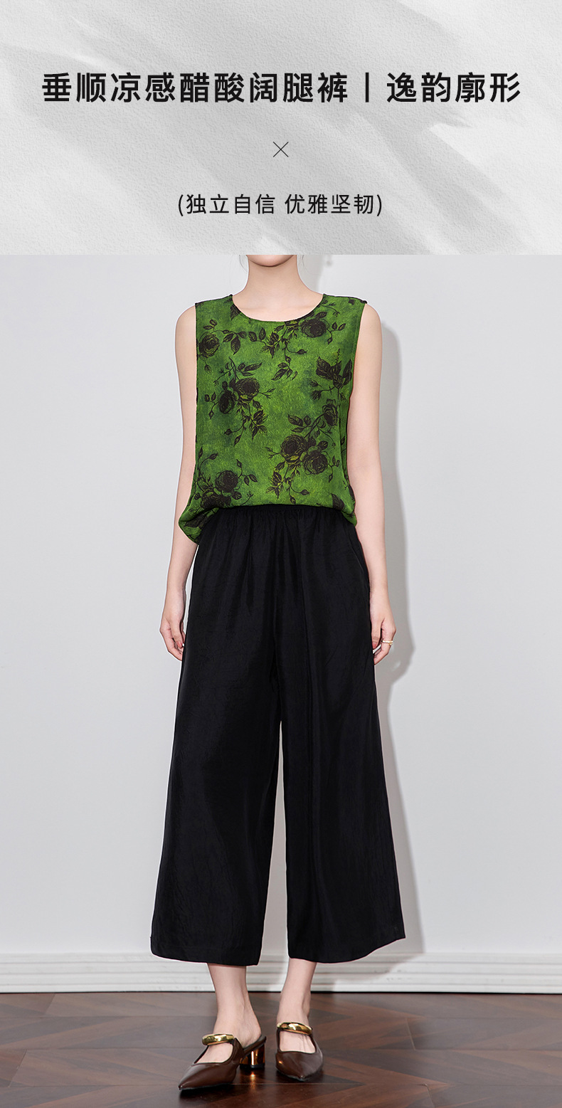 WL 2510410凉感抓皱醋酸缎宽松松紧腰九分裤通勤休闲时尚 商品图4