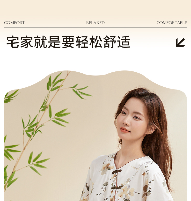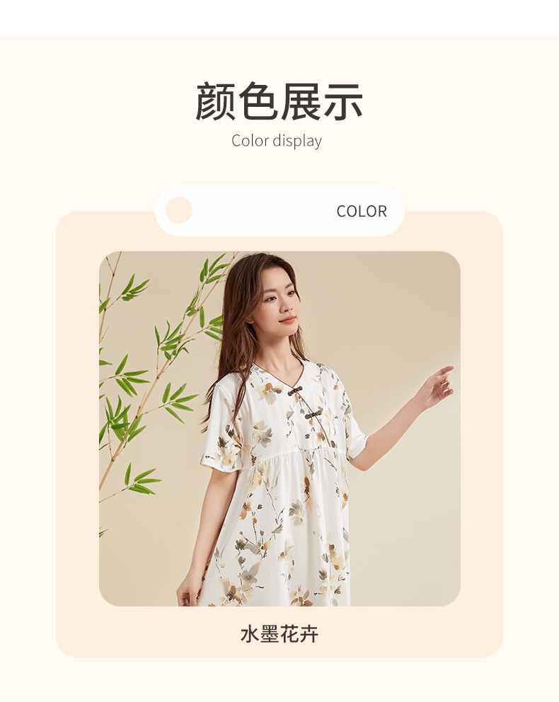 贝佳人新款宽松休闲睡衣睡裙舒适中式连衣裙家居服女BW522502