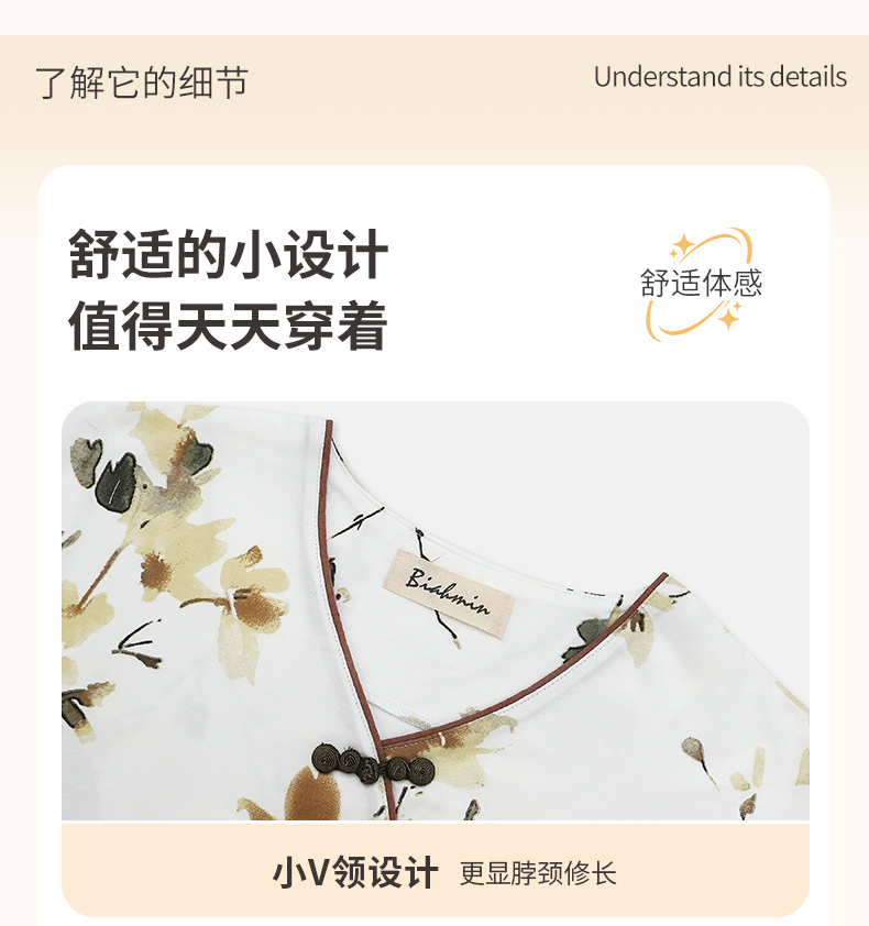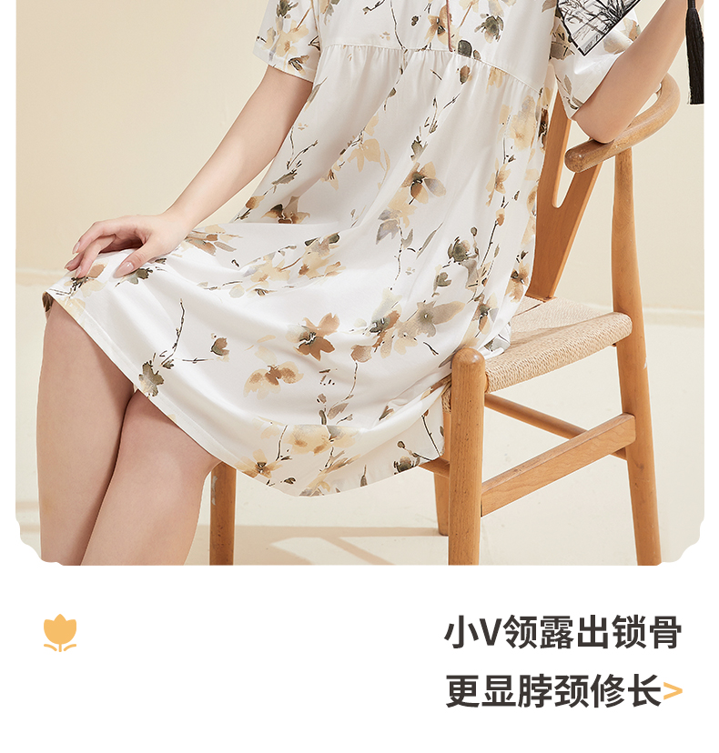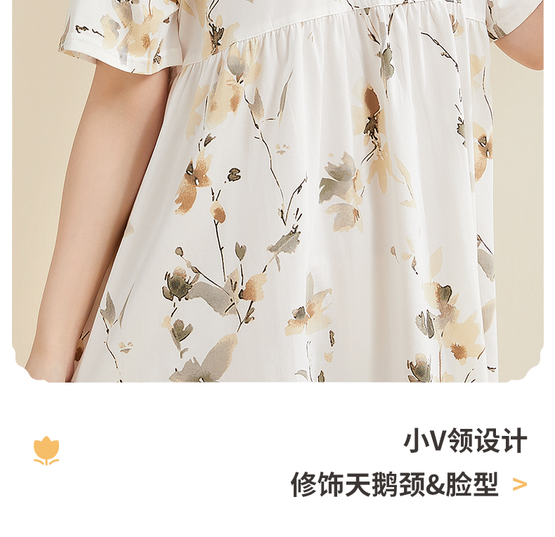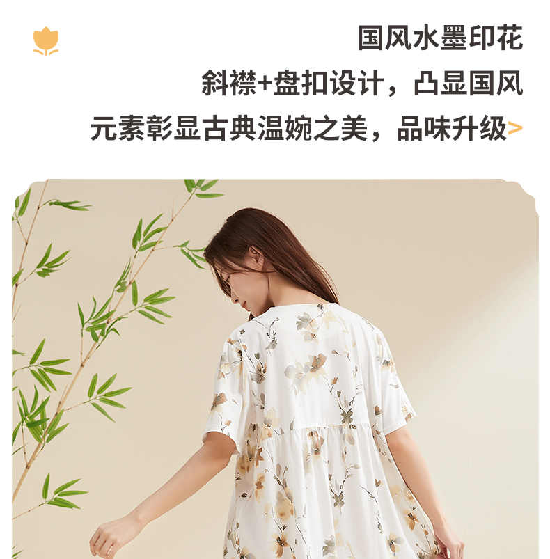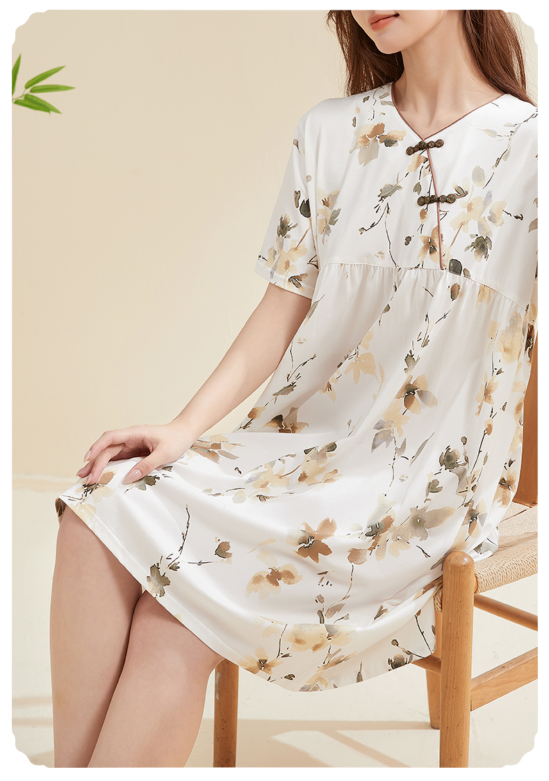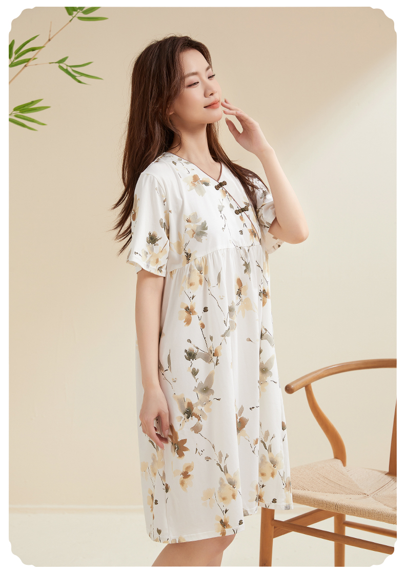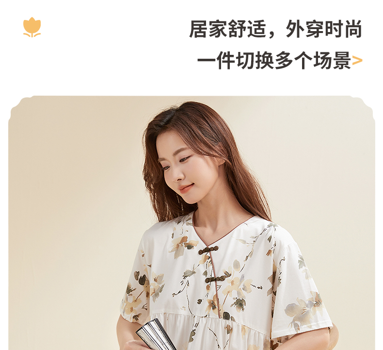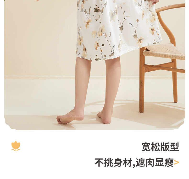 贝佳人新款棉家居服睡裙舒适花鸟印花短袖连衣裙睡衣女BW522503
