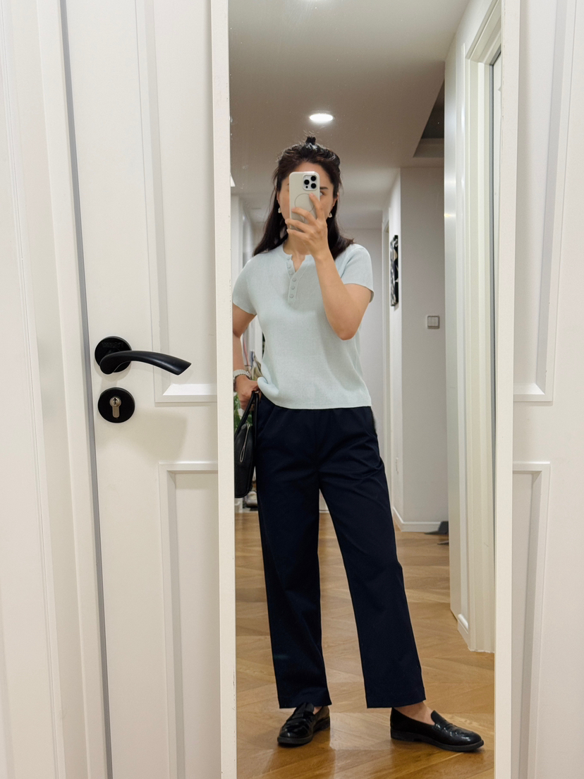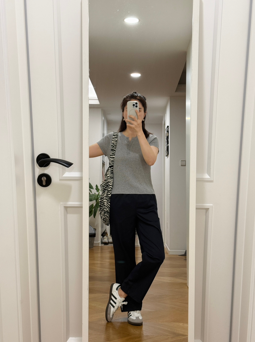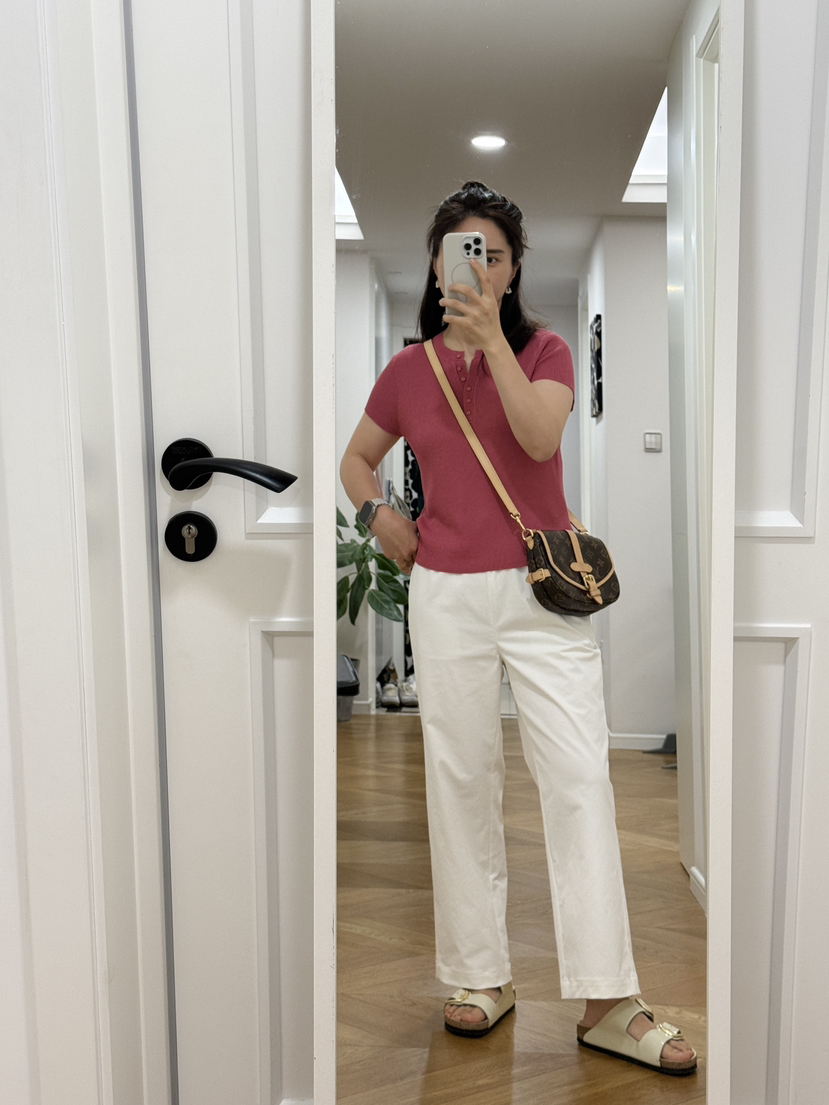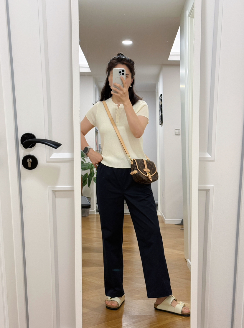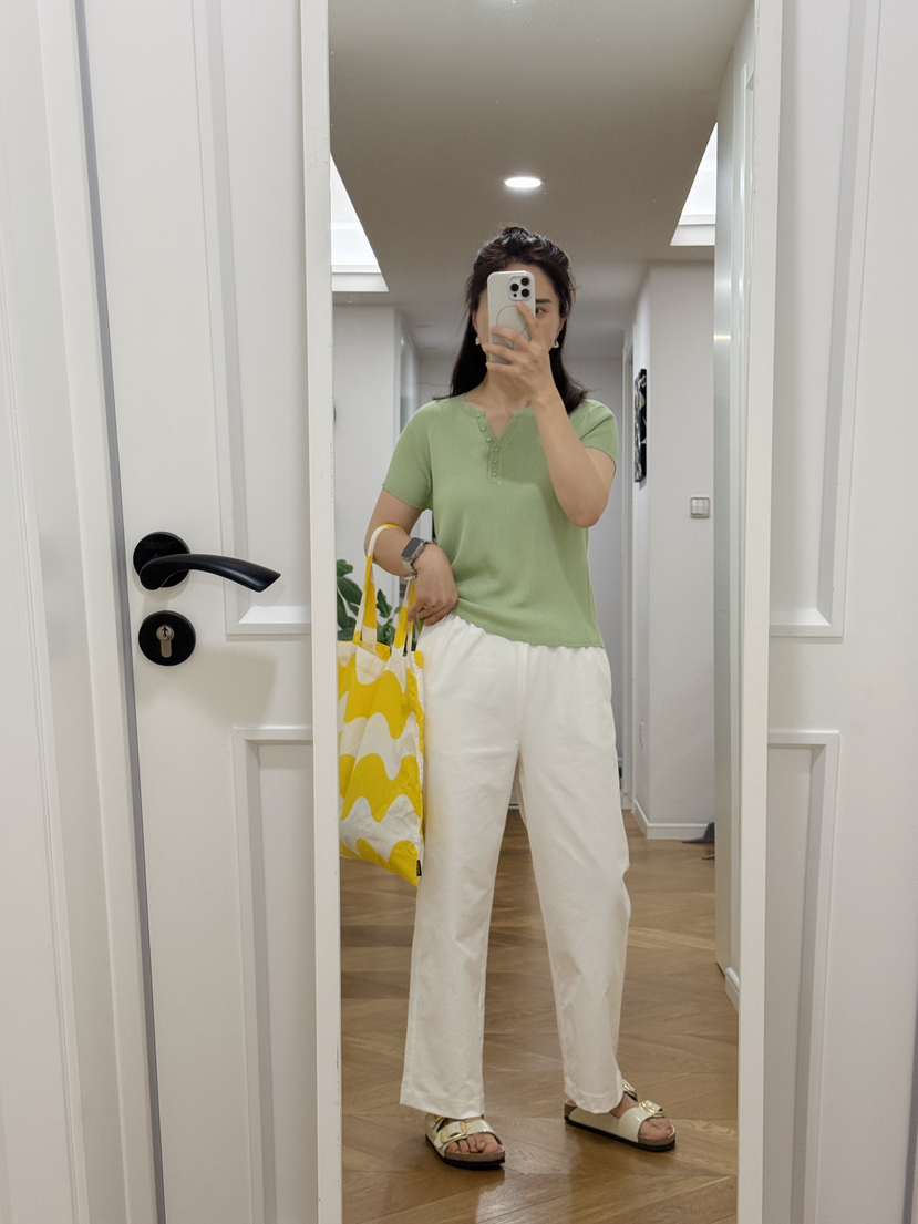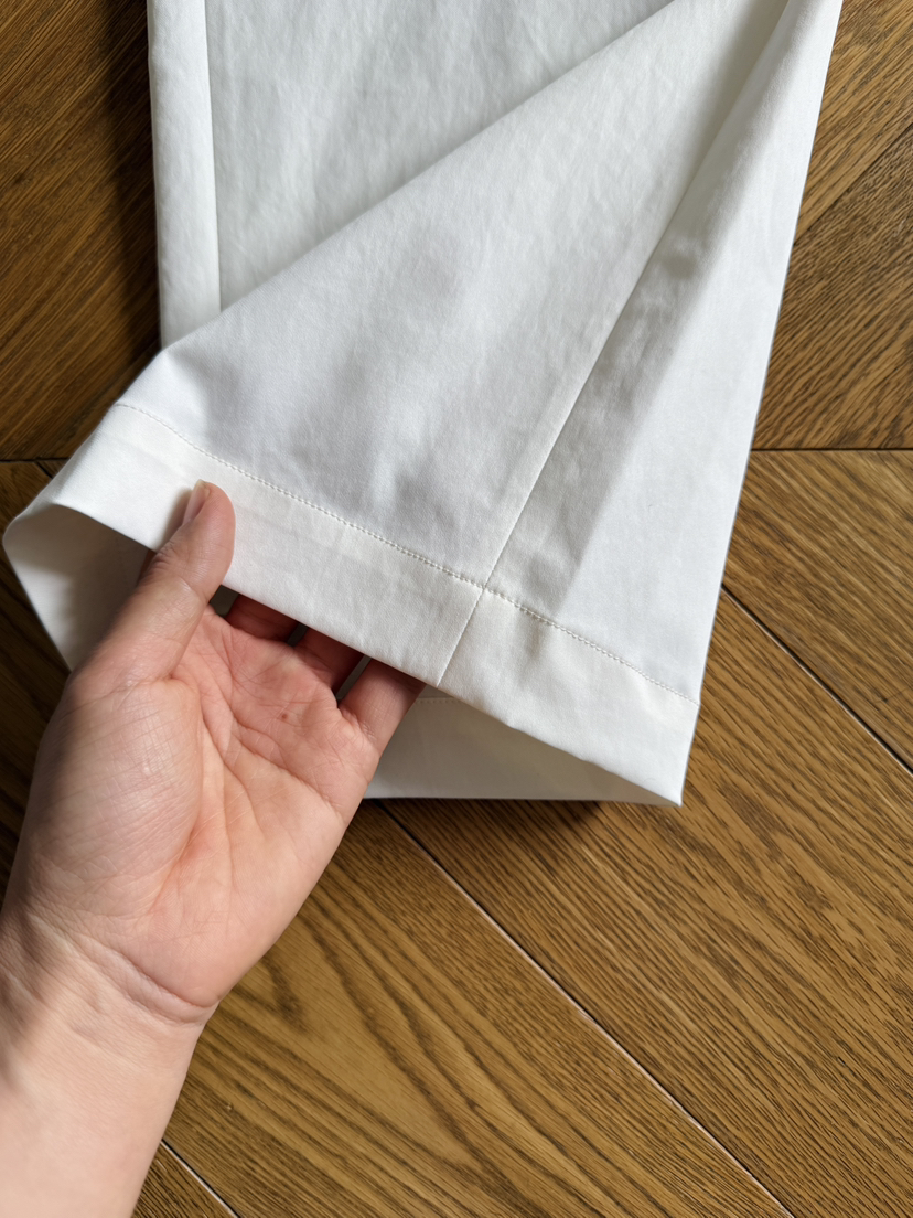 看着其貌不扬的裤子,穿起来实在太舒服了!!版型是the row的,没有做太长,通勤/日常都可以穿,白色用了肤色口口袋布,完全不透!穿肤色内裤刚好,太适合夏天,面料柔顺不易皱,皱了一抹久平整了。
