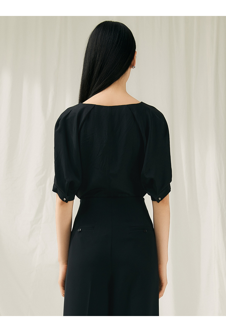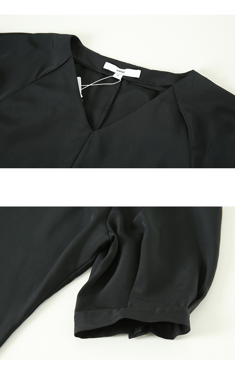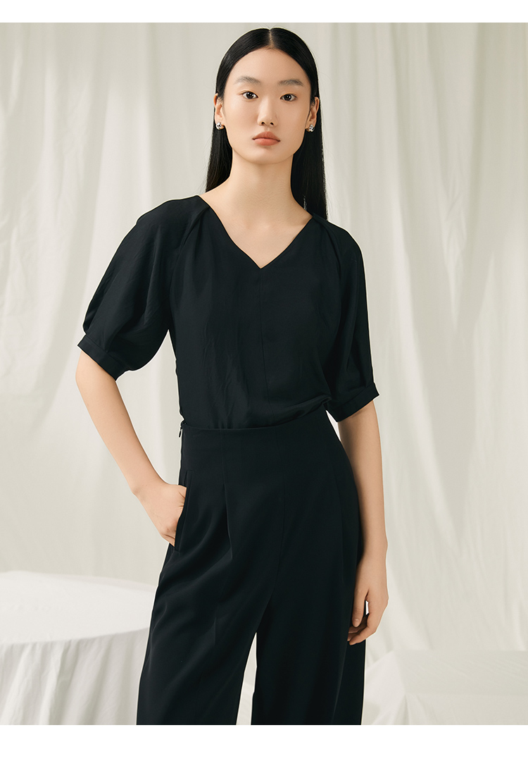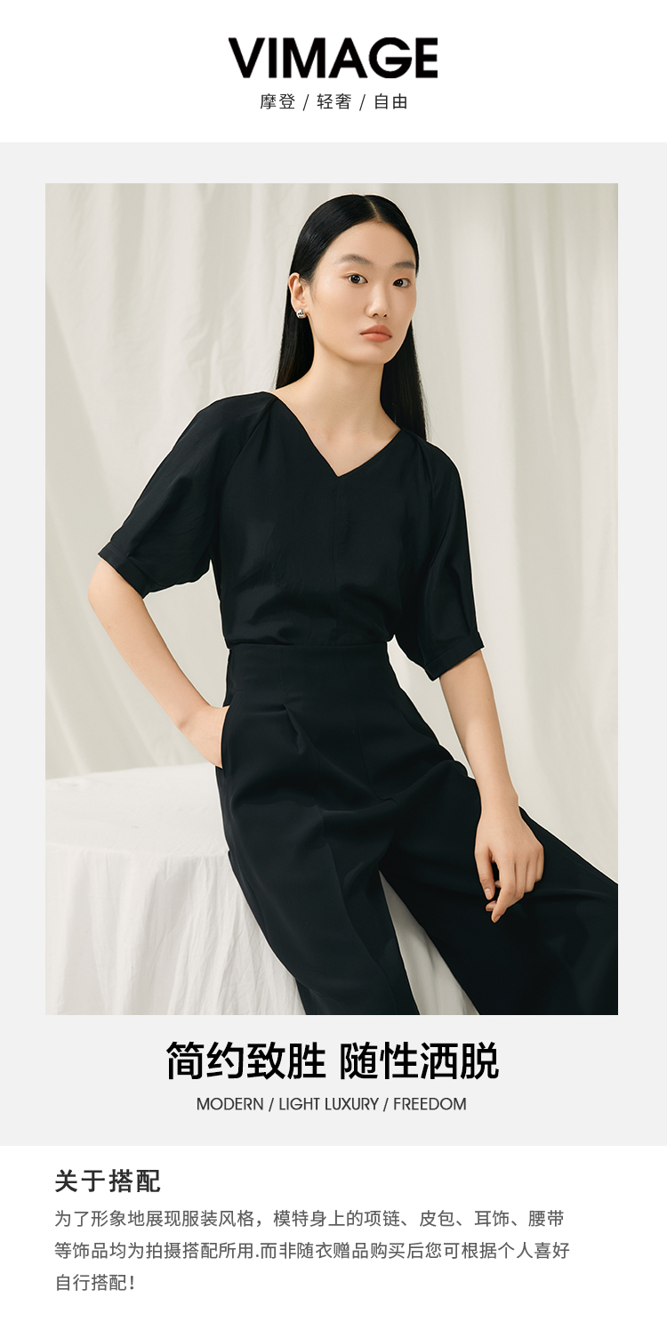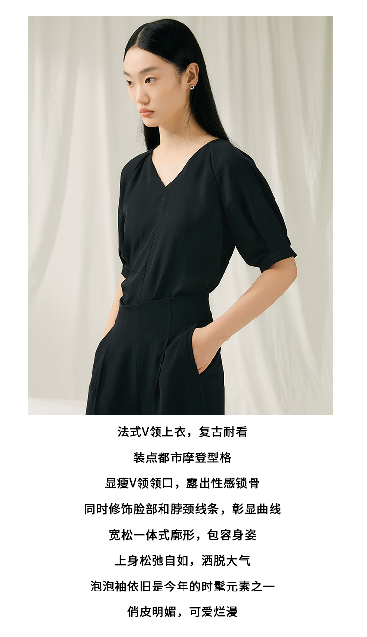 VIMAGE纬漫纪夏季新款泡泡袖V领修身短袖小上衣女V1913528