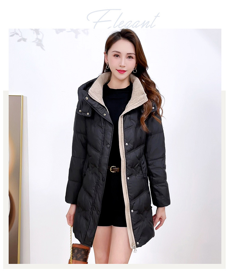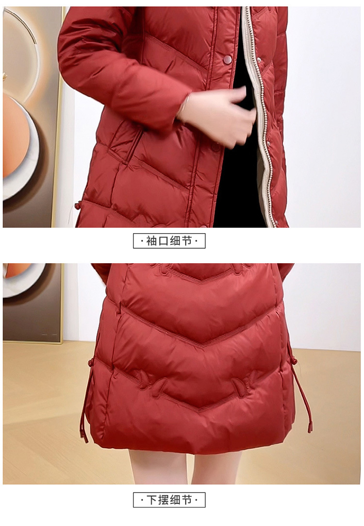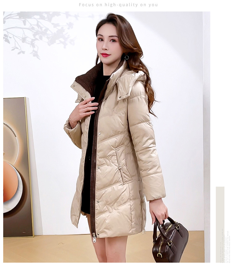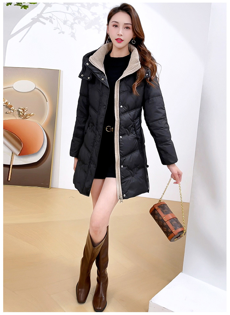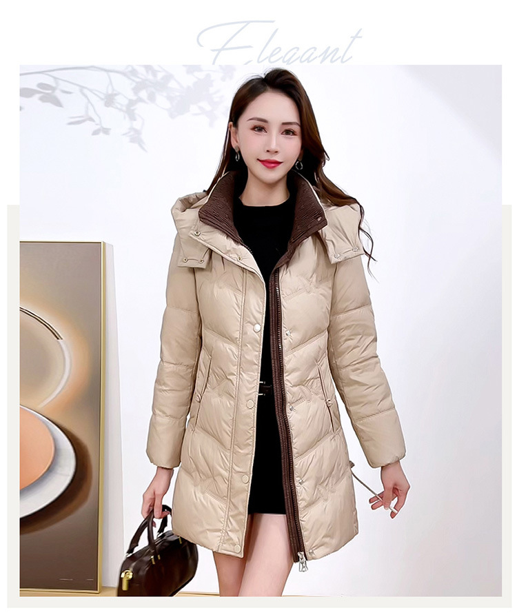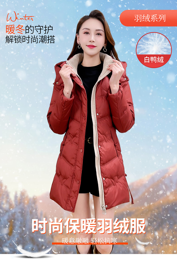 简约中长款连帽羽绒服,加厚保暖白鸭绒外套QYM-CR-XN24B21-L