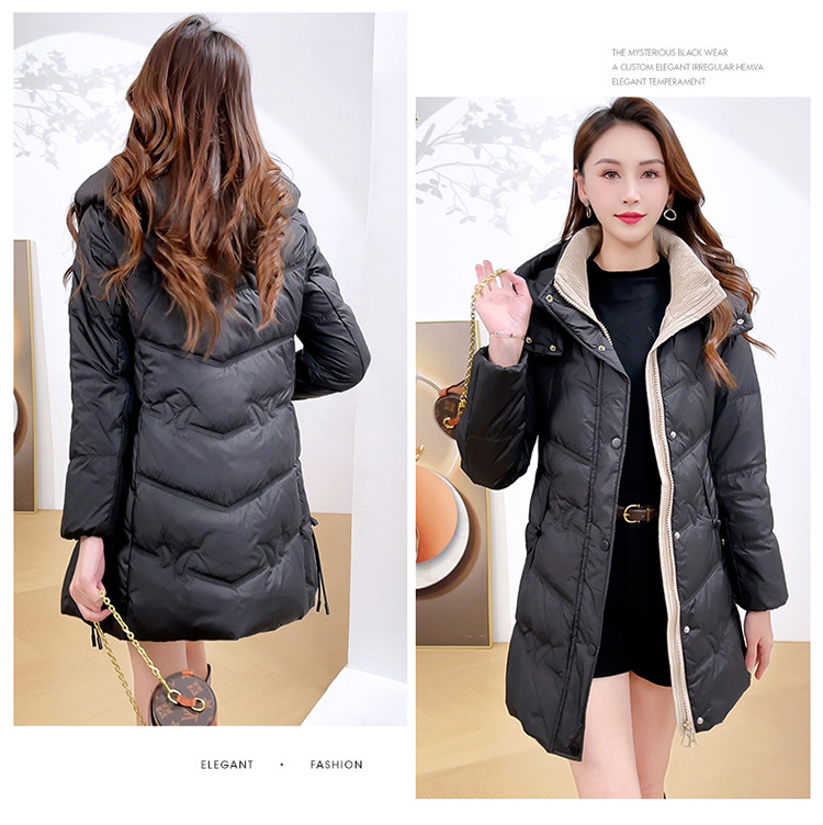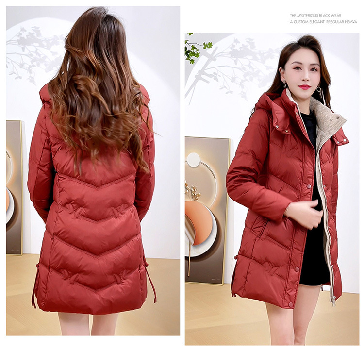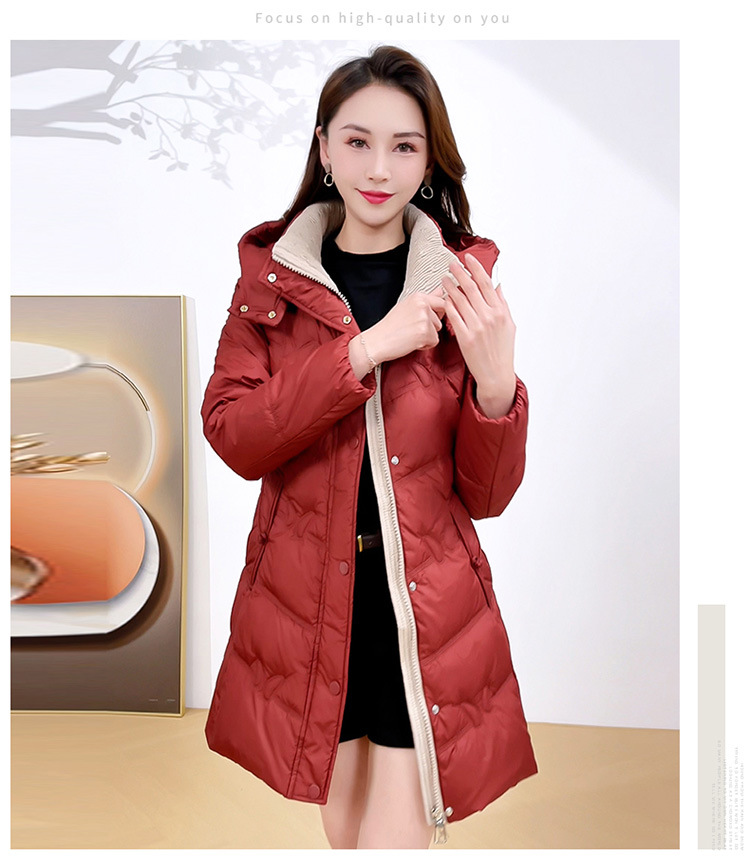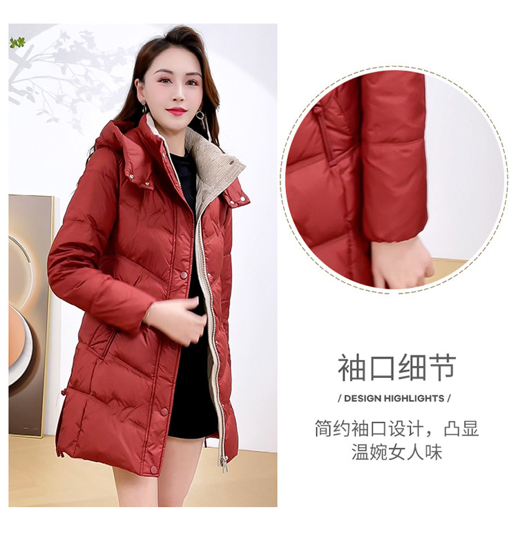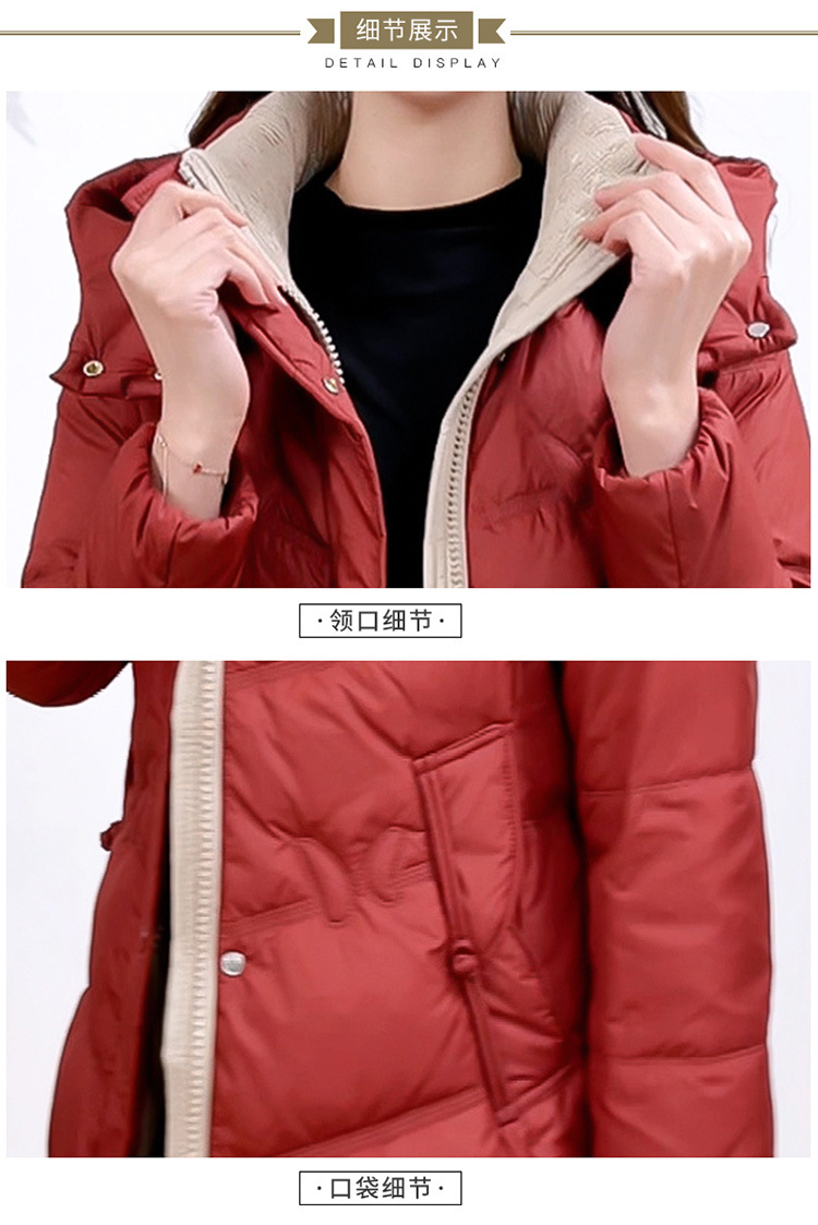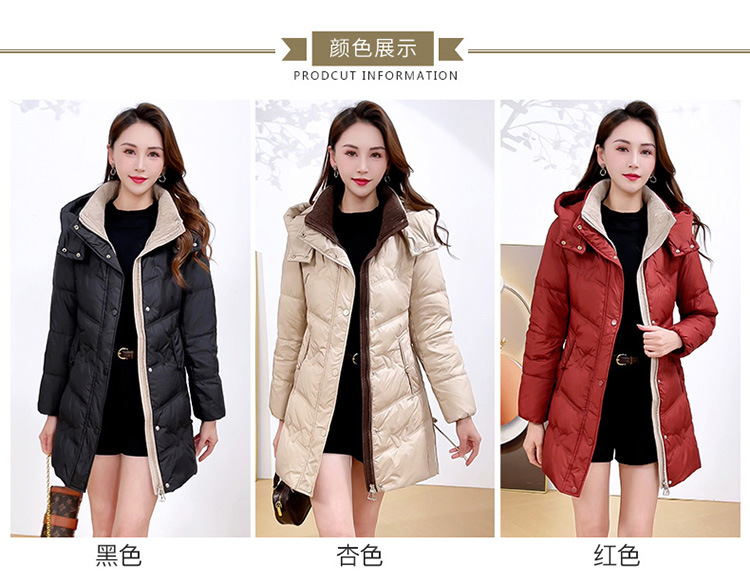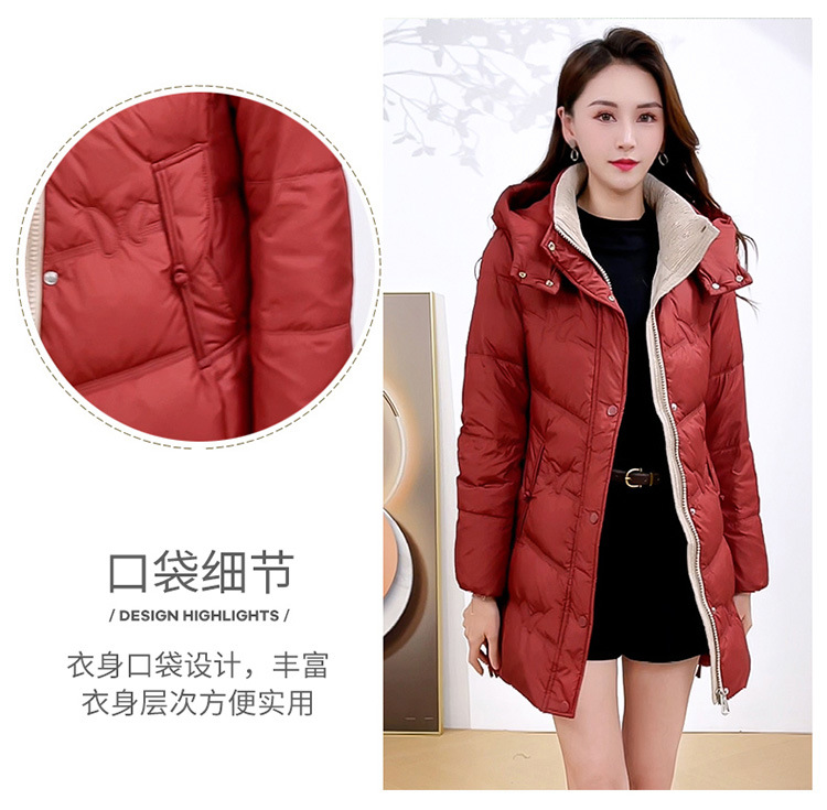 简约中长款连帽羽绒服,加厚保暖白鸭绒外套QYM-CR-XN24B21-L