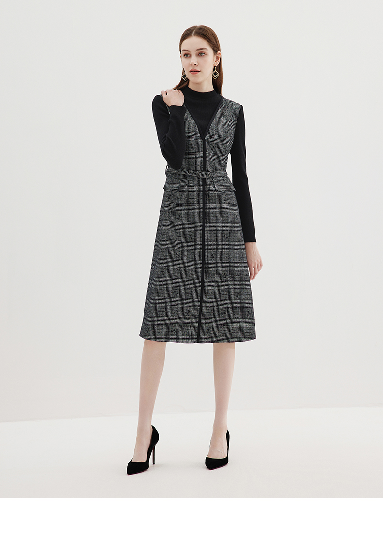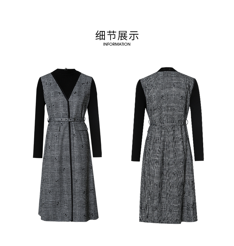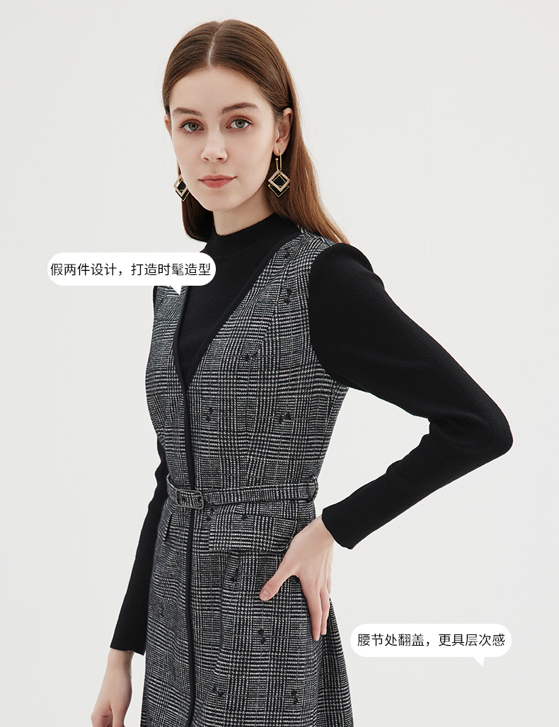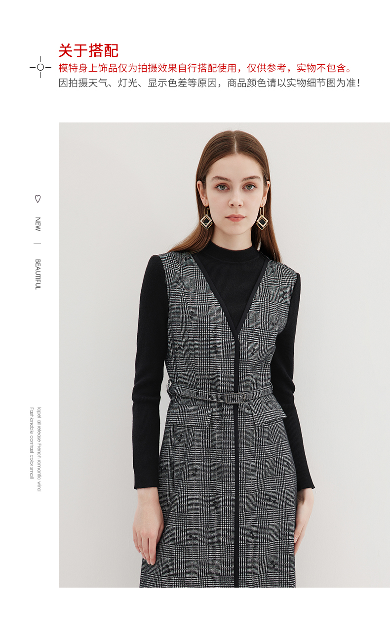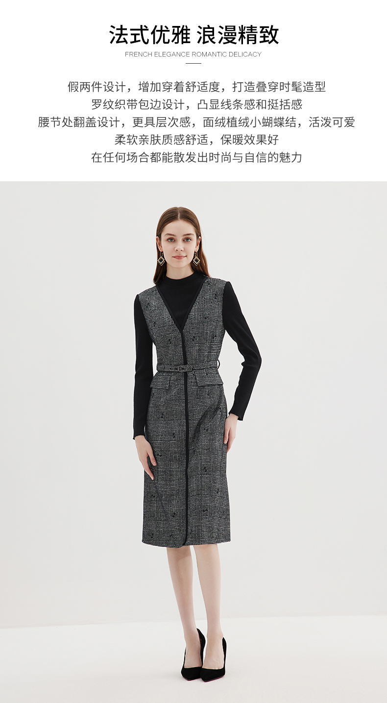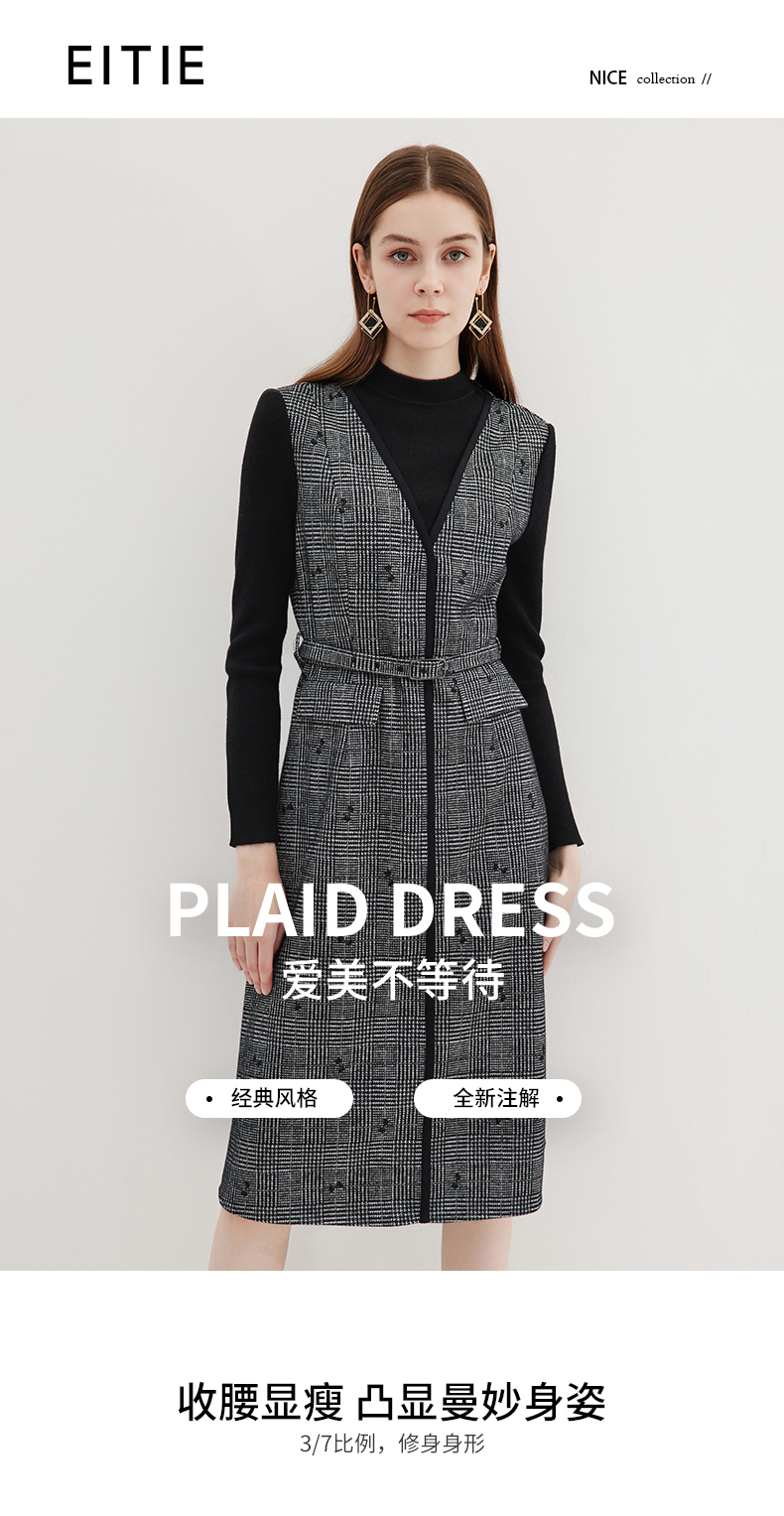 EITIE爱特爱冬季新款高腰修身优雅假两件连衣裙7207929