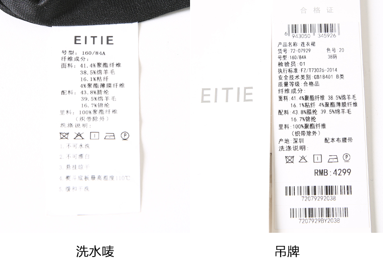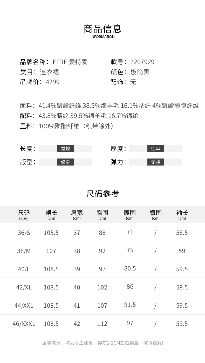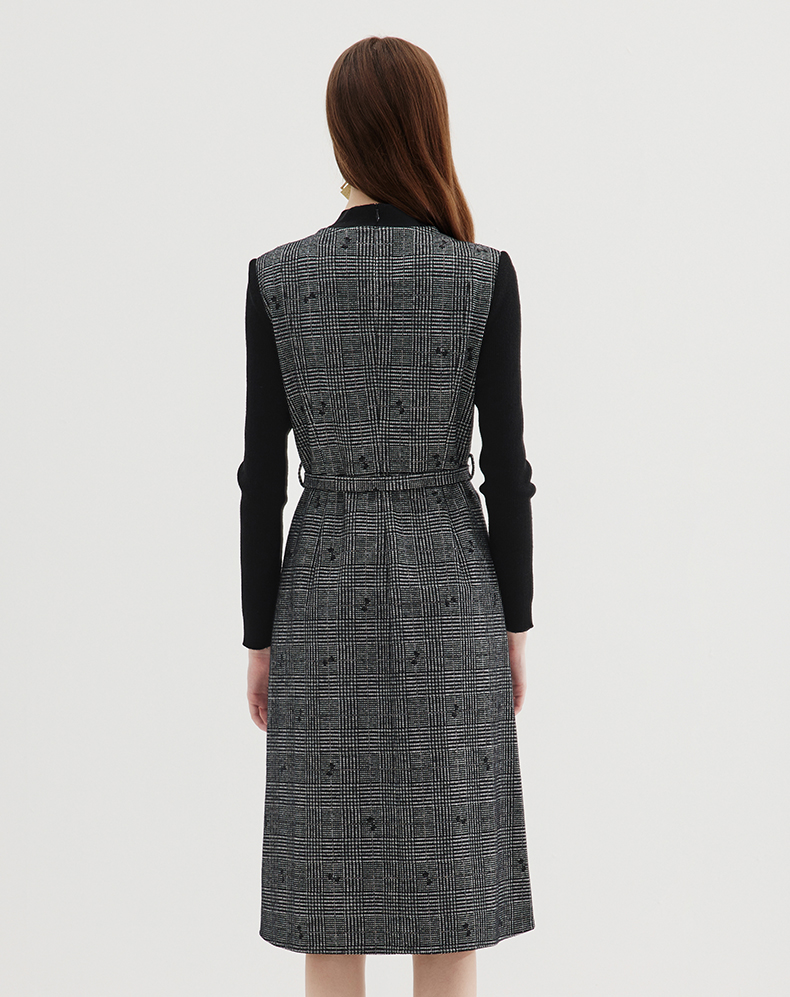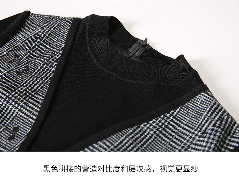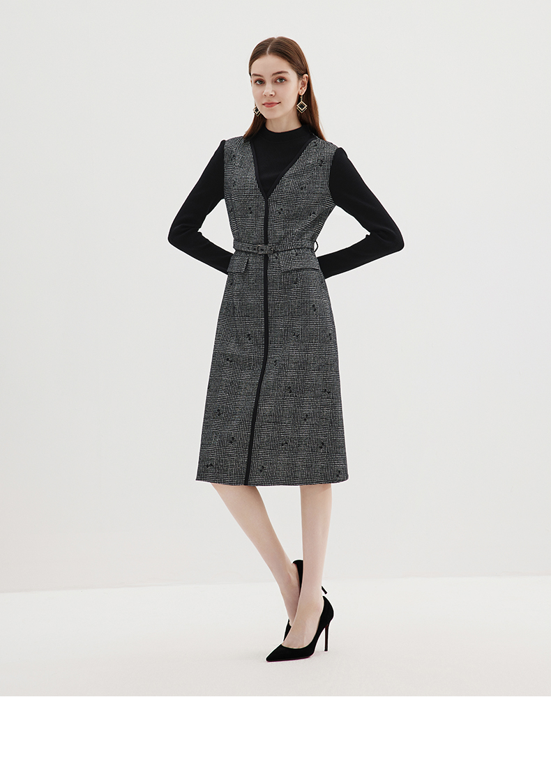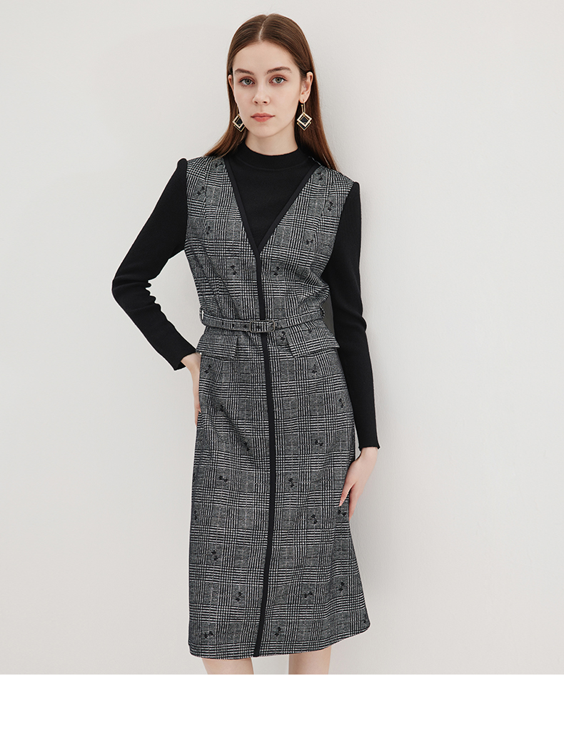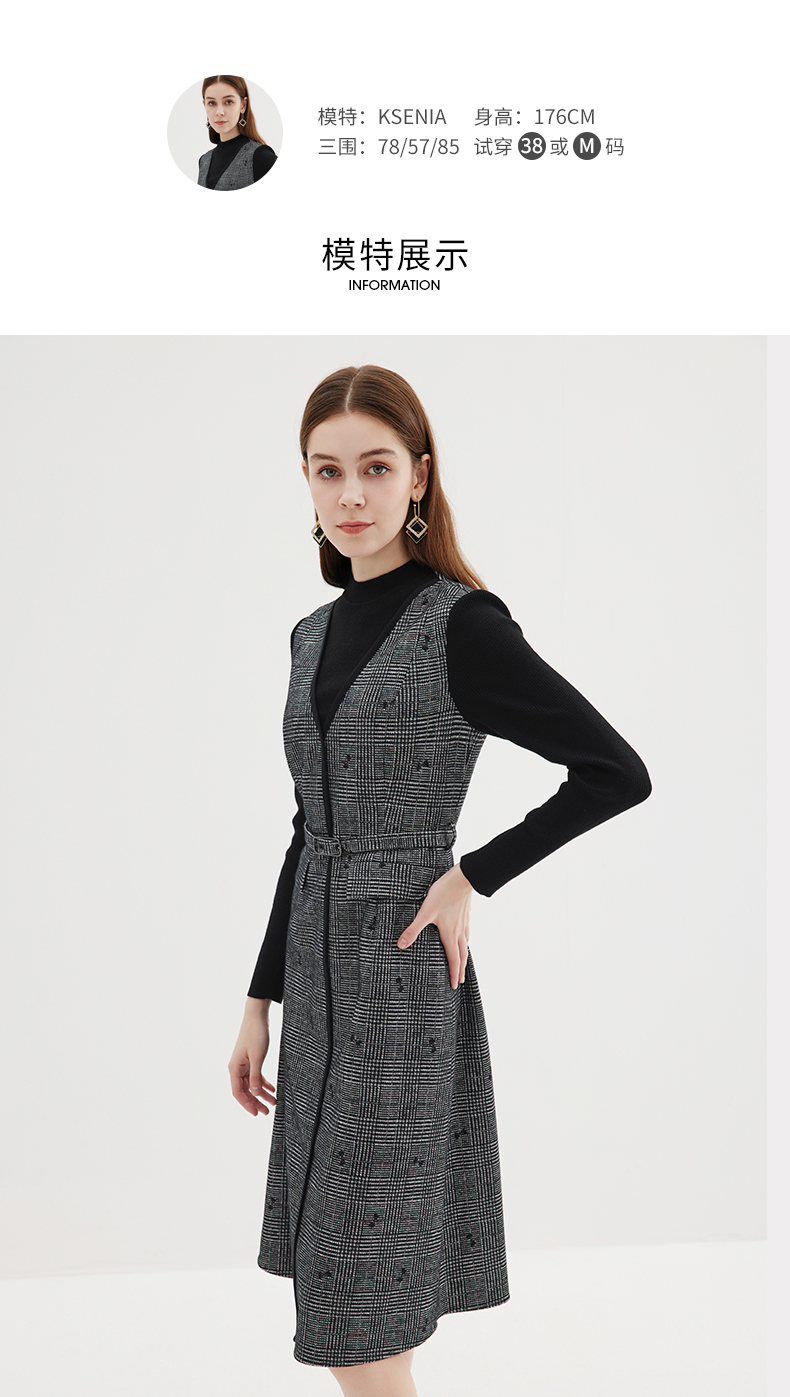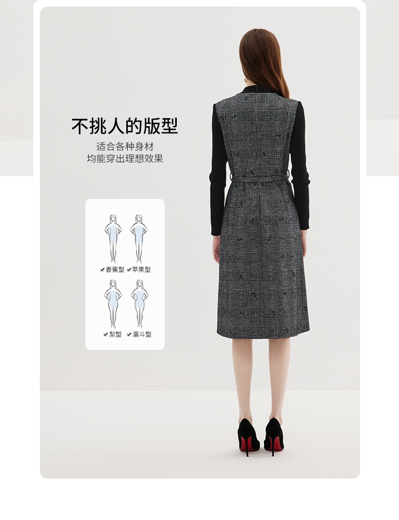 EITIE爱特爱冬季新款高腰修身优雅假两件连衣裙7207929