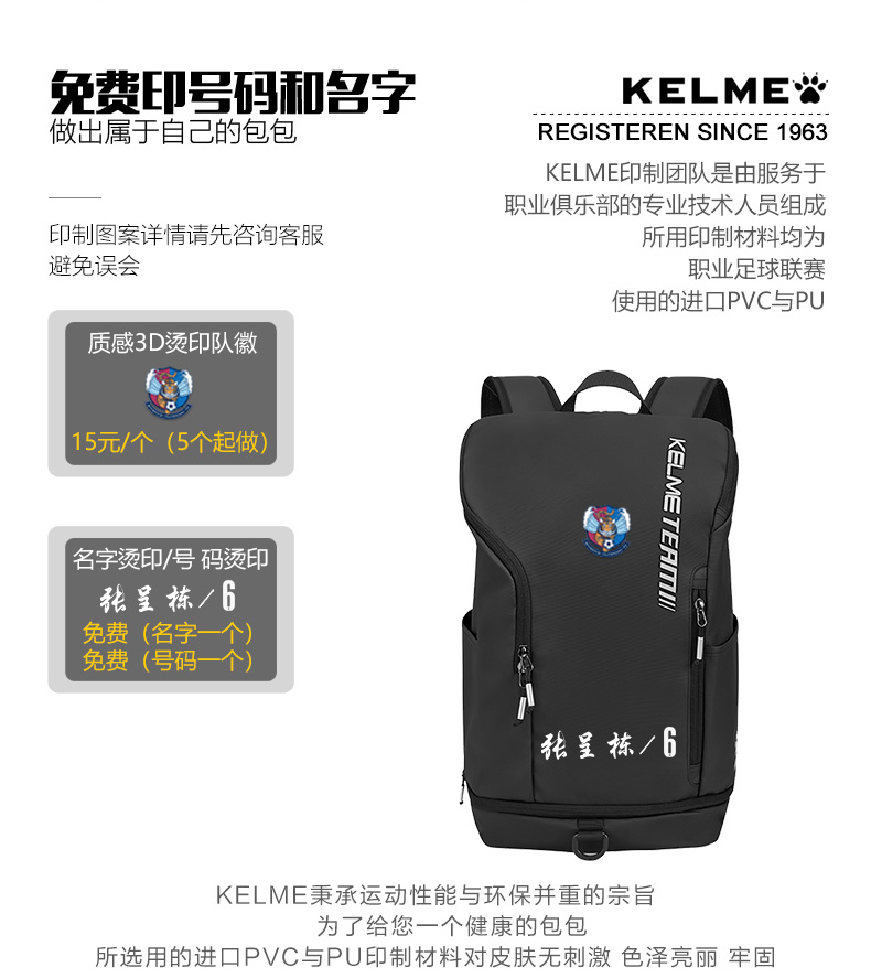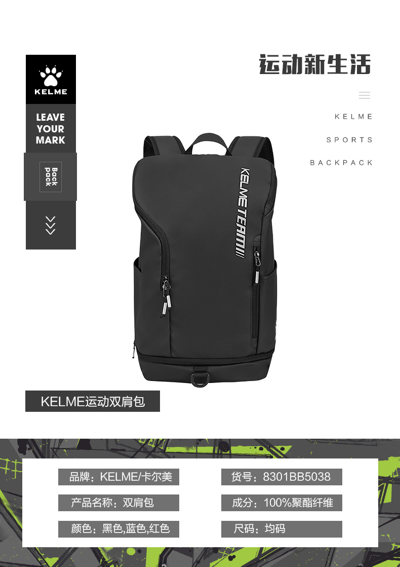 KELME卡尔美双肩包男书包学生大容量户外跑步篮球训练运动电脑包