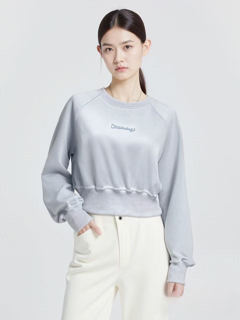 【工艺系列卫衣】刺绣款~95%棉短款宽螺纹牙刷绣卫衣-喜出