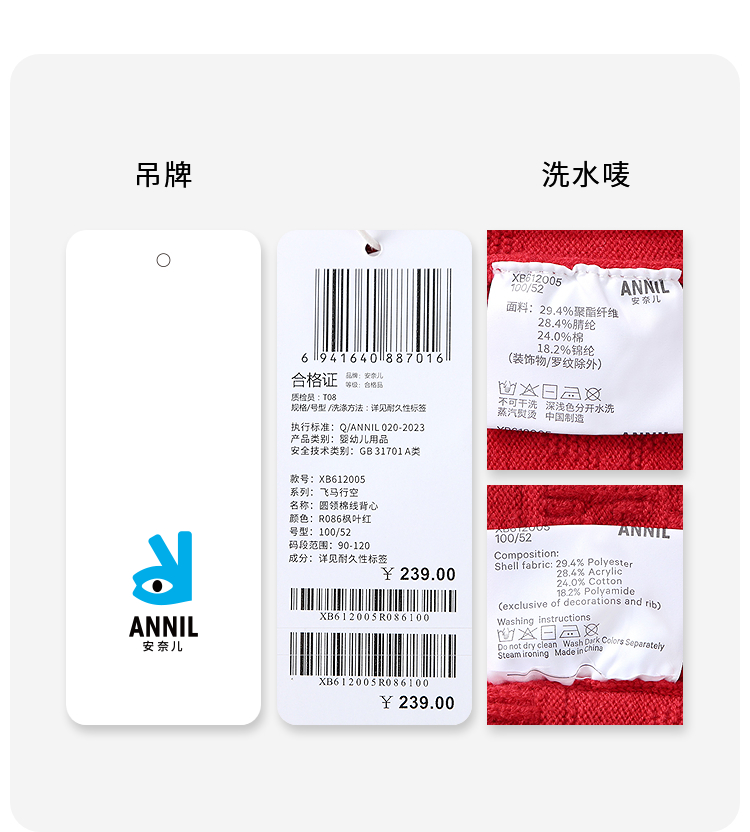 【实体店同款】男童圆领棉线背心春季新款安奈儿童装XB612005