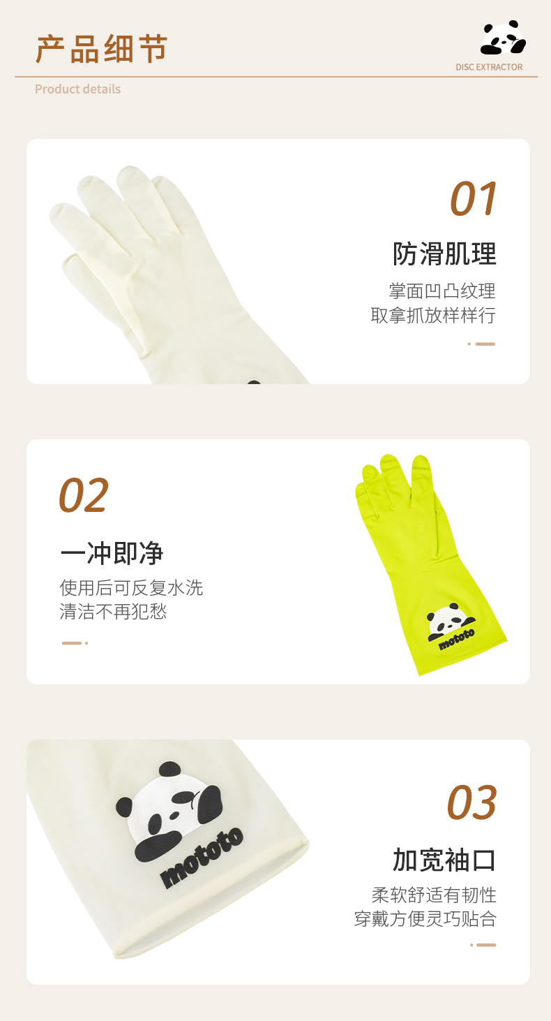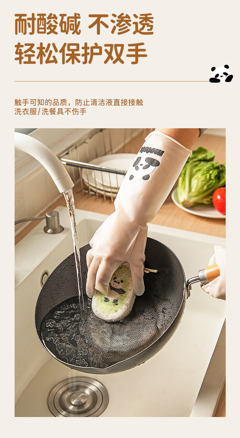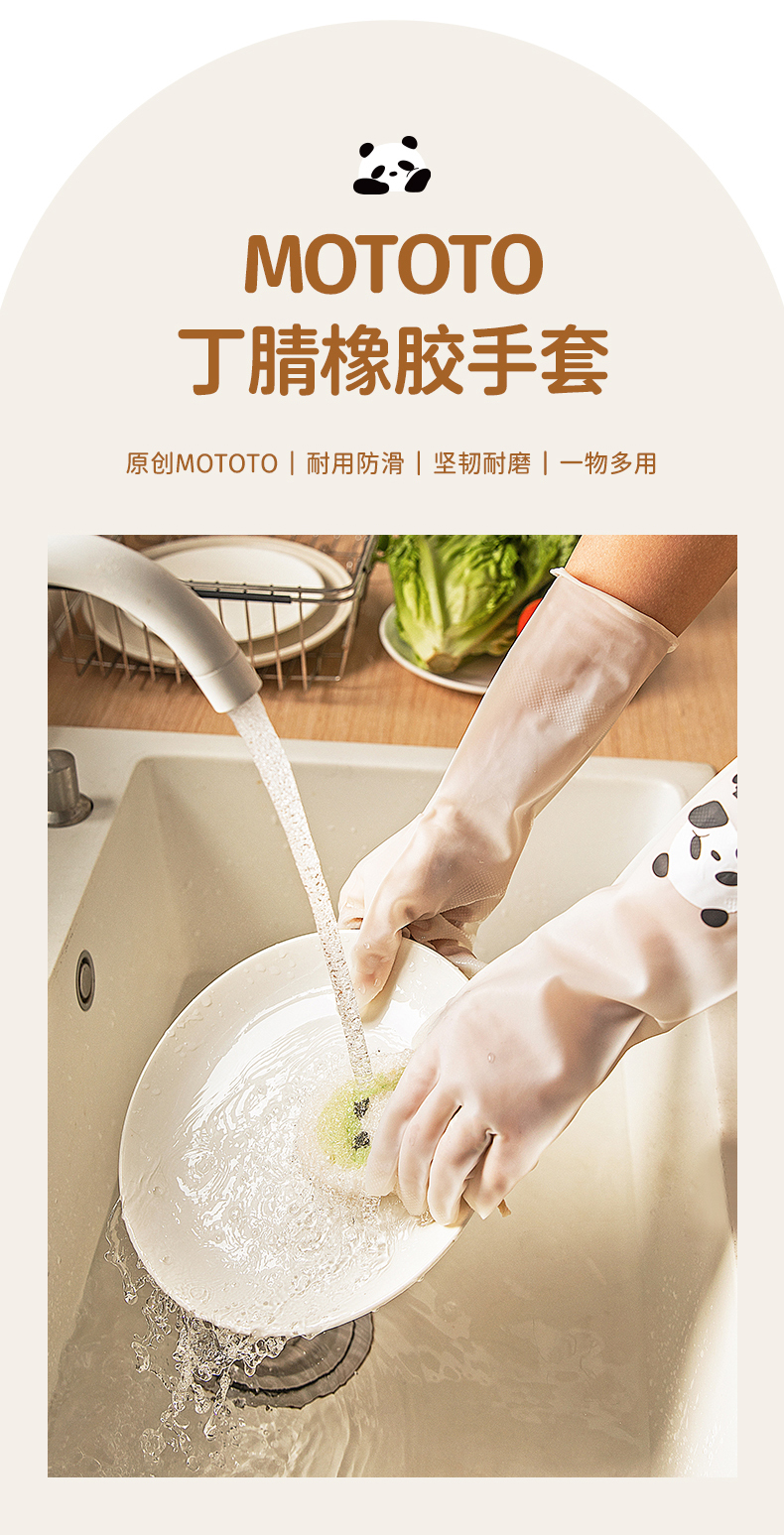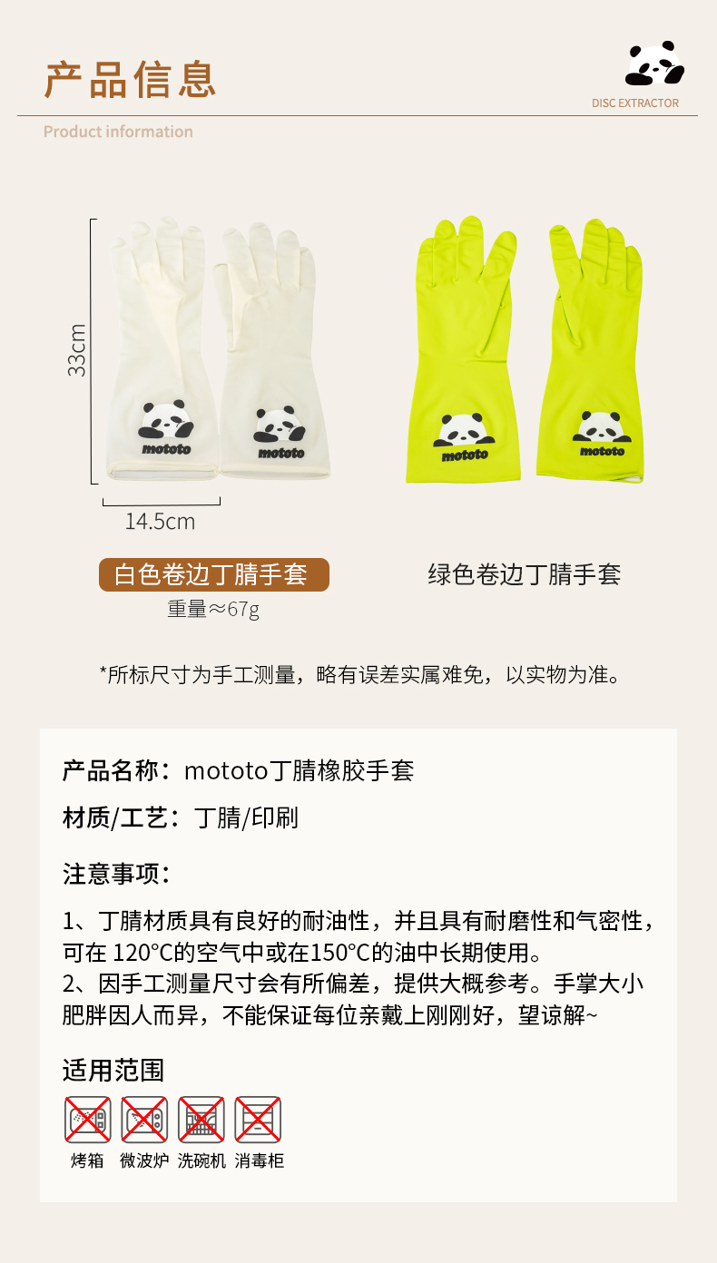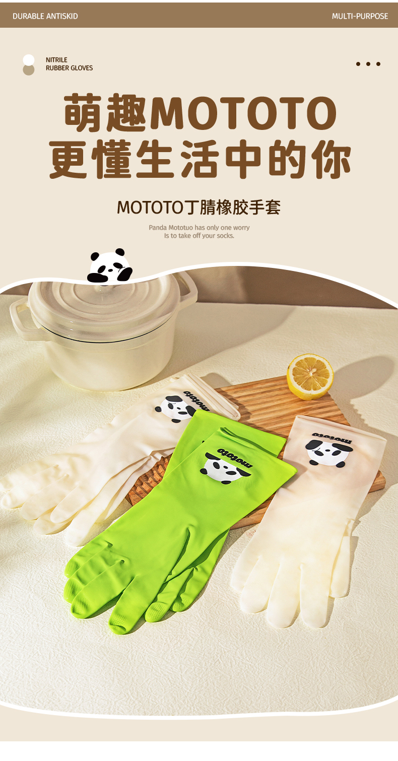 摩登主妇mototo熊猫丁腈手套家务洗碗厨房耐用加长橡胶食品级手套
