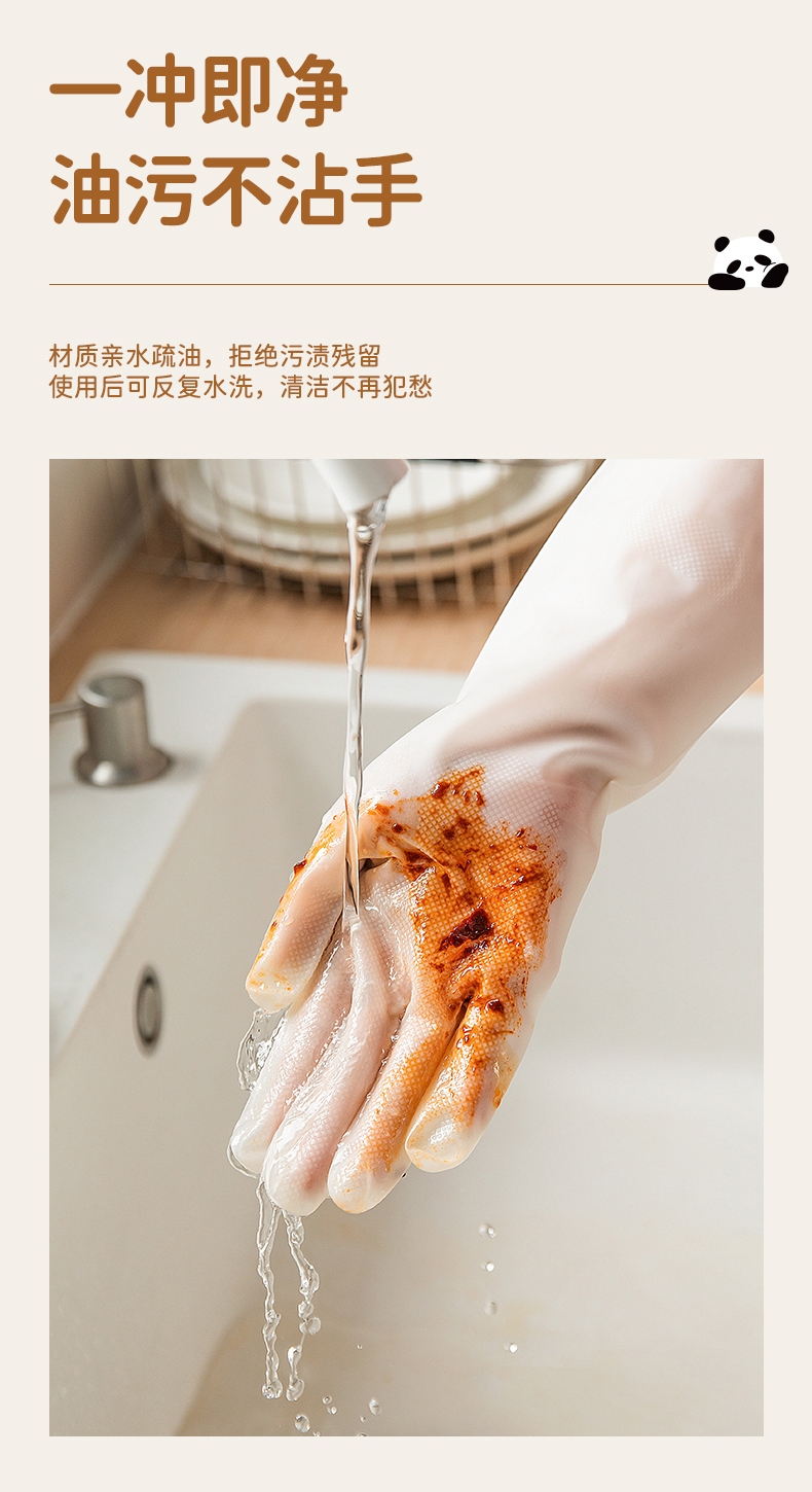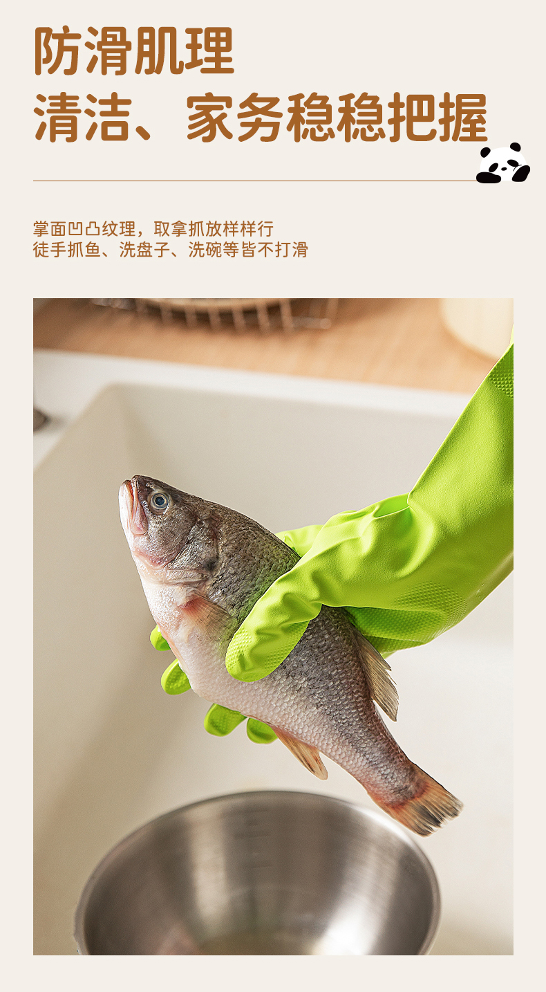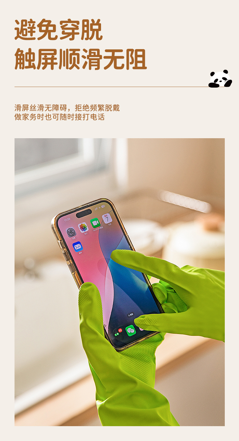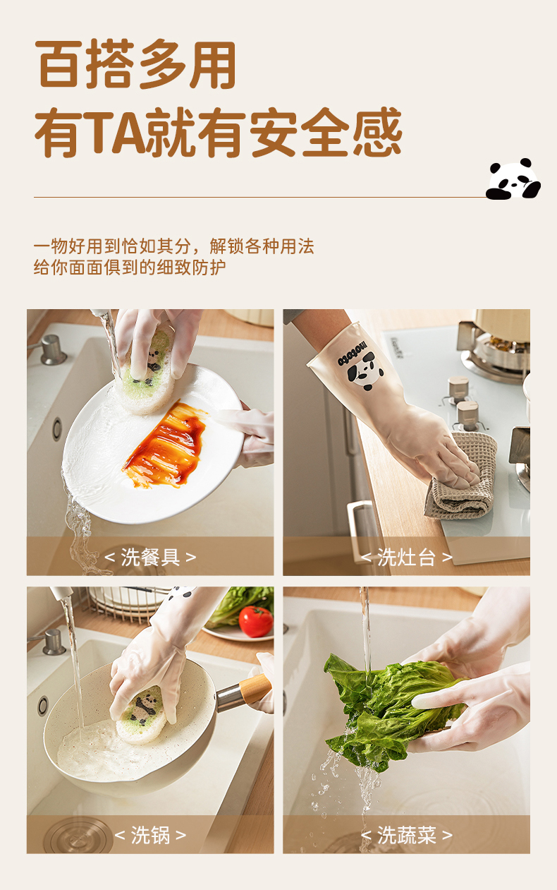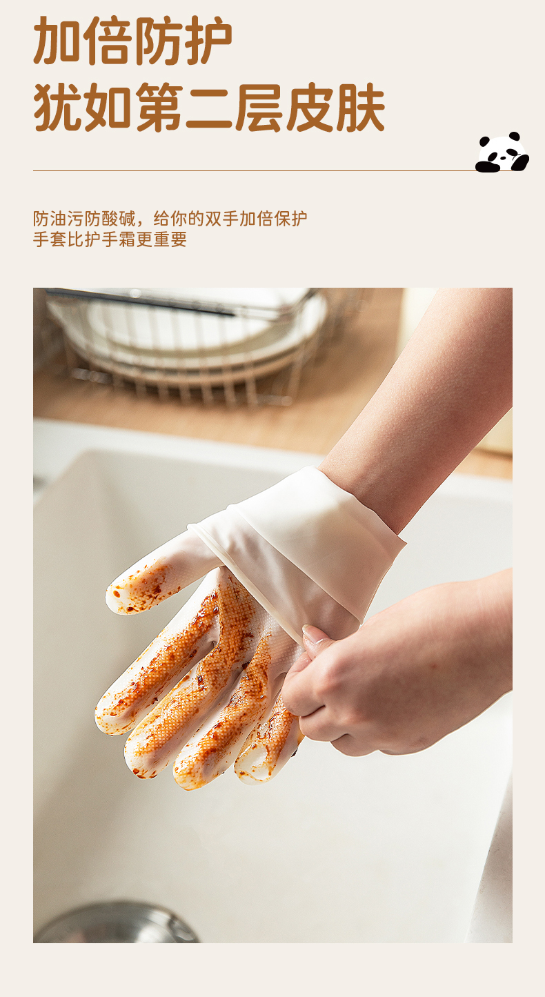 摩登主妇mototo熊猫丁腈手套家务洗碗厨房耐用加长橡胶食品级手套