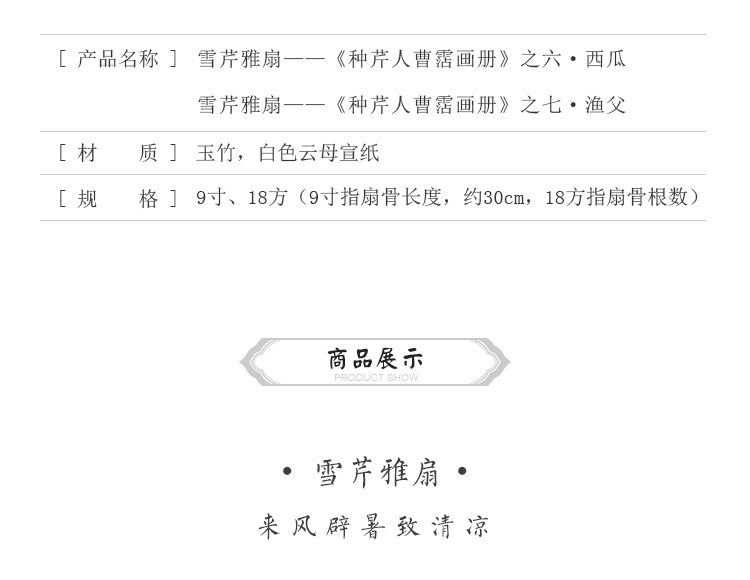 雪芹折扇 舒卷自在 开合清风