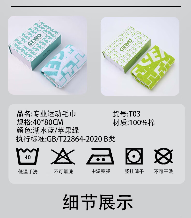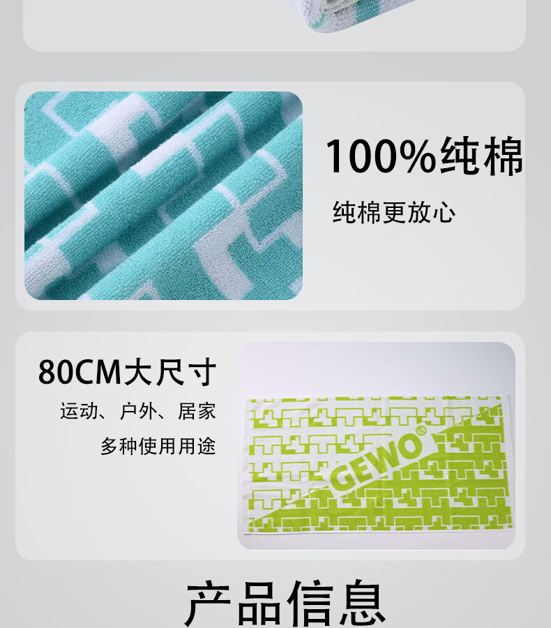 GEWO杰沃运动毛巾捷沃大汗巾T03运动大汗巾纯棉毛巾2色可选