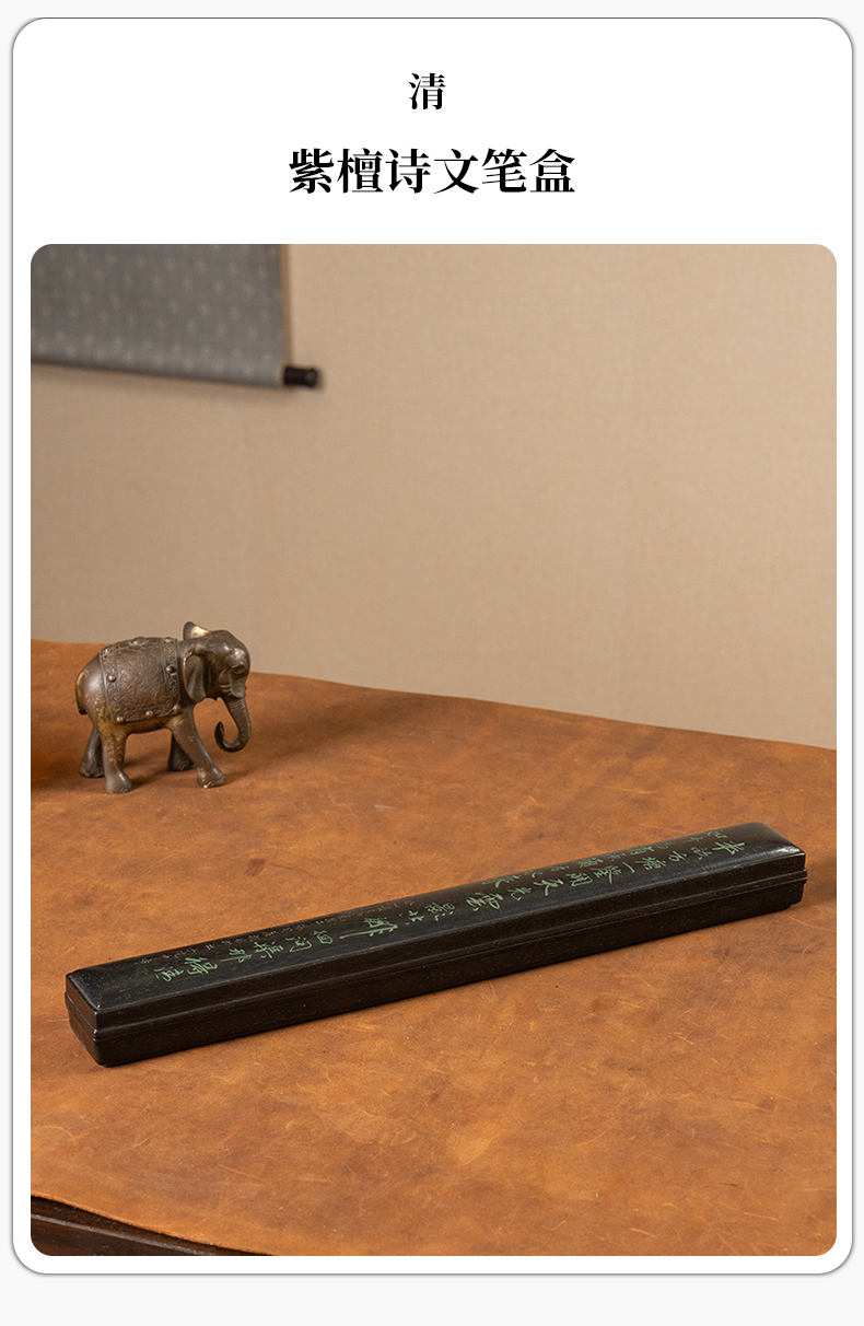 清 黄花梨百宝嵌花鸟诗文笔筒