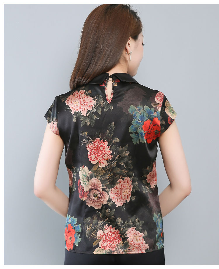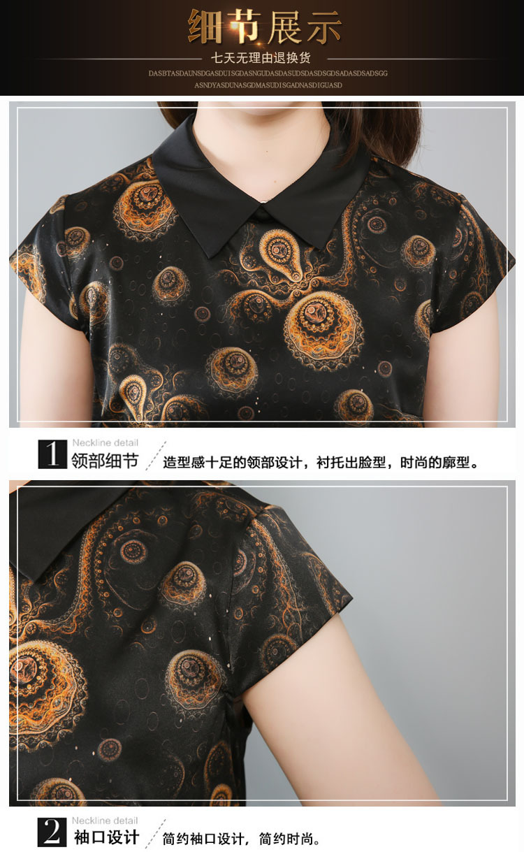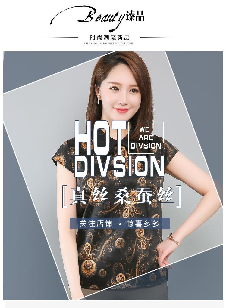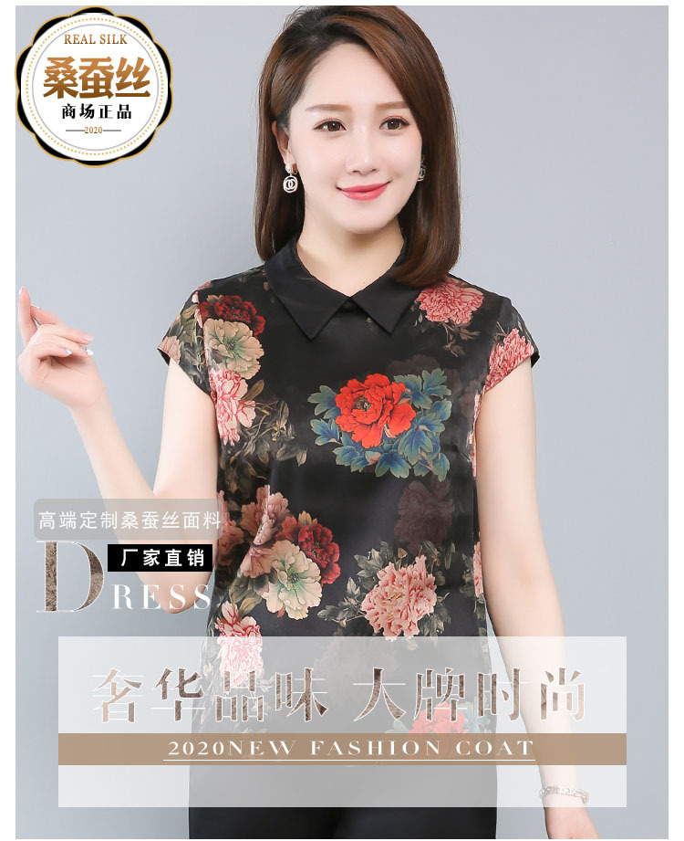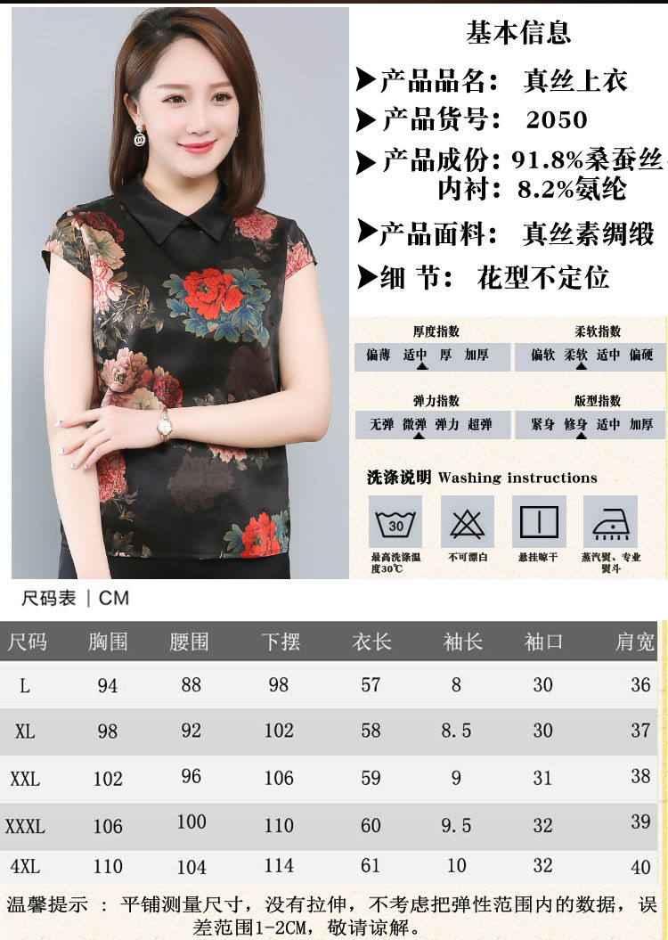 上海旗袍厂ZT-B2050丝绸服装女装真丝印花T恤 大码妈妈装桑蚕丝上衣小衫