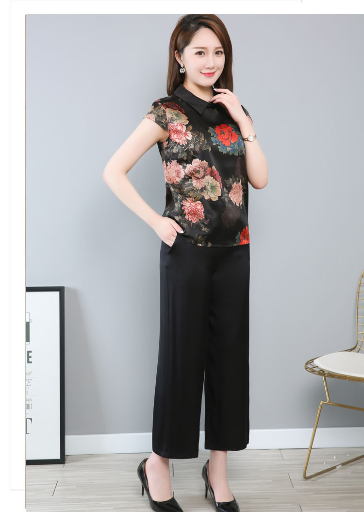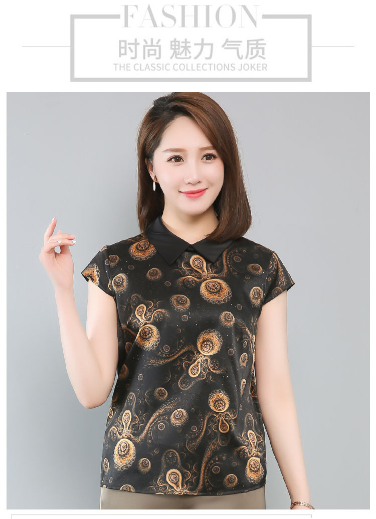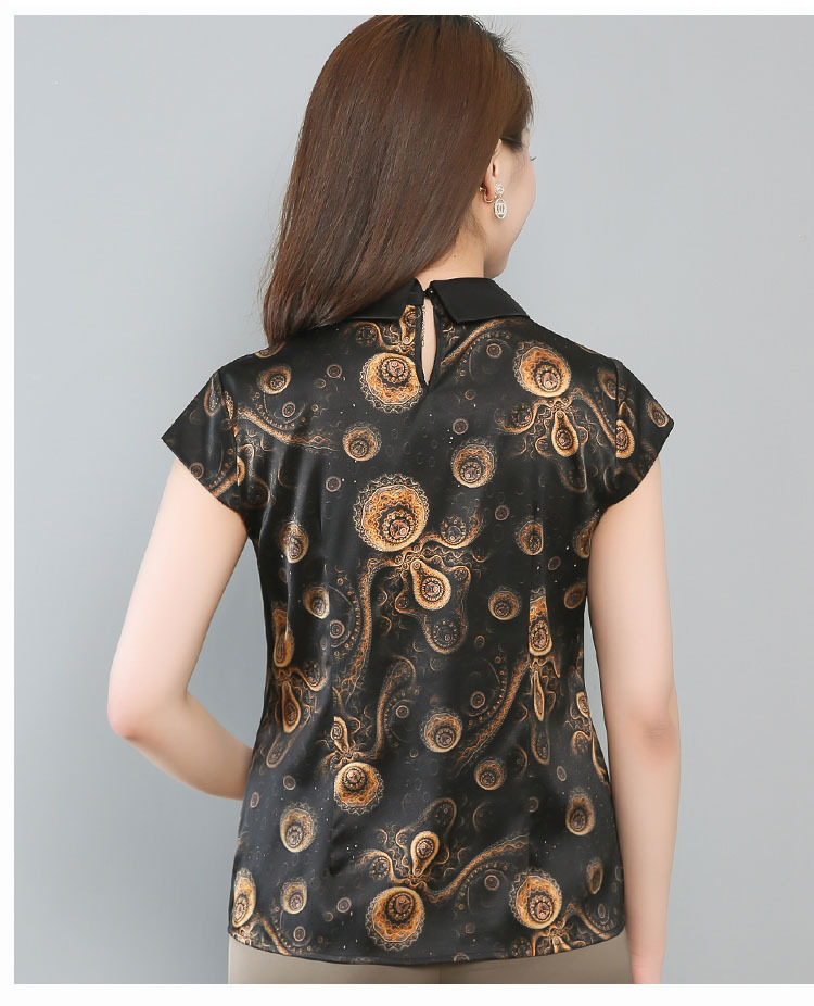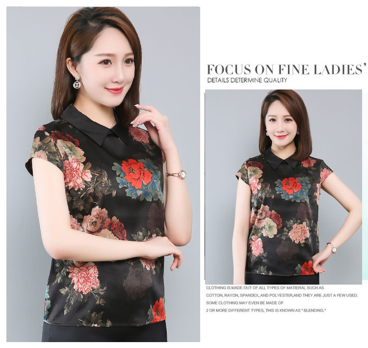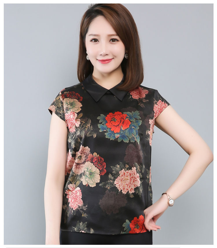 上海旗袍厂ZT-B2050丝绸服装女装真丝印花T恤 大码妈妈装桑蚕丝上衣小衫