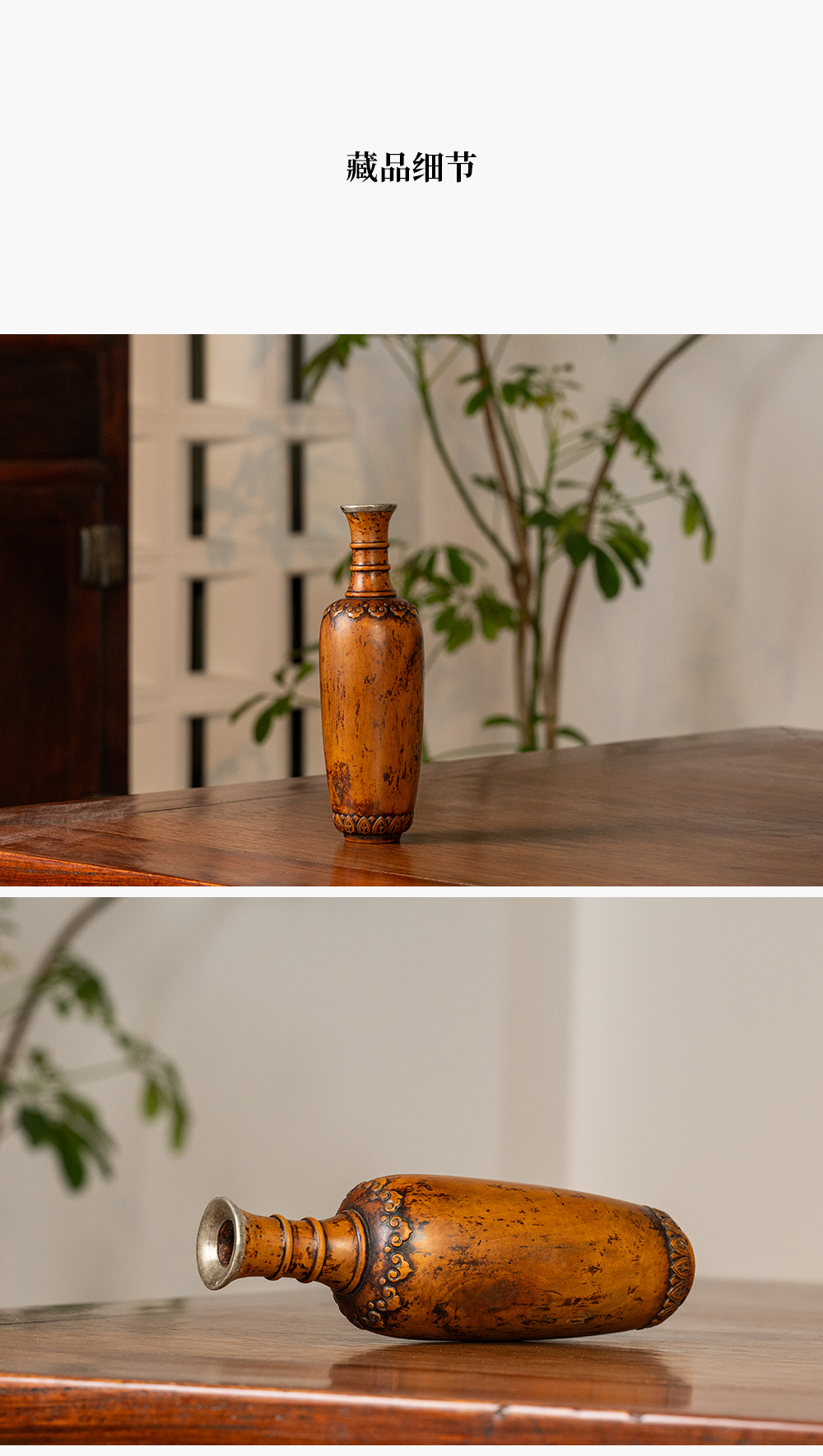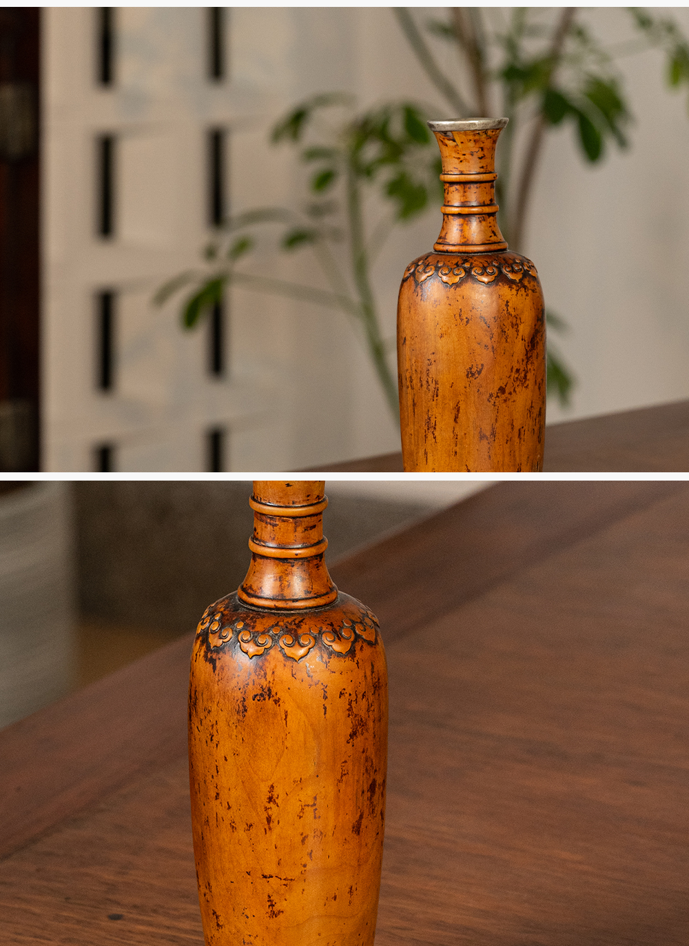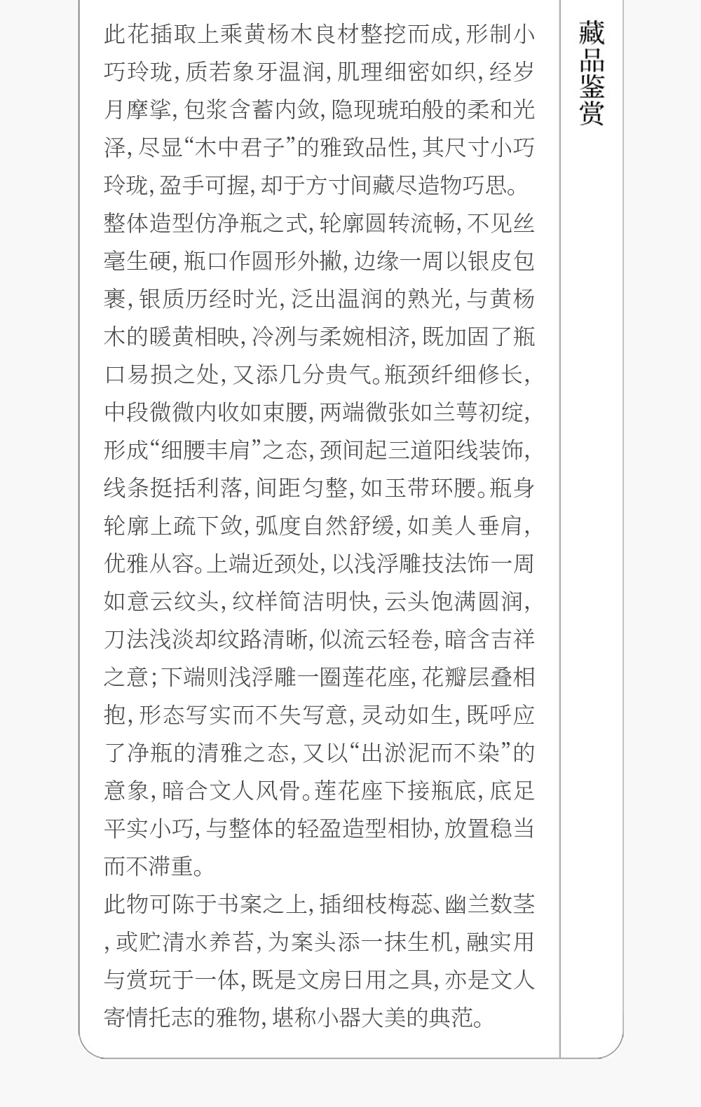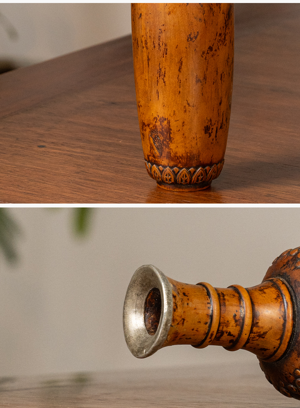 清早期 黄杨木雕如意云纹口沿包银瓶形花插