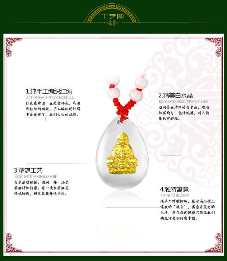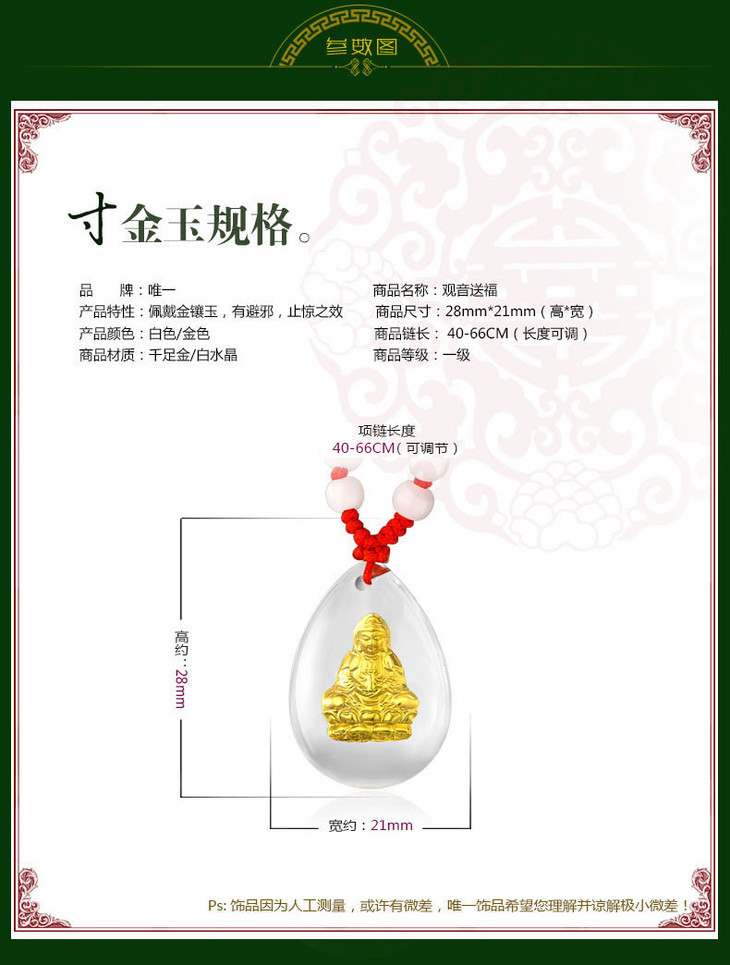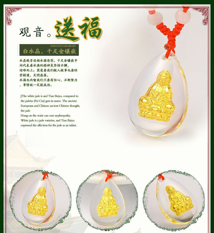 观音送福吊坠金镶玉送女友闺蜜节日生日礼物