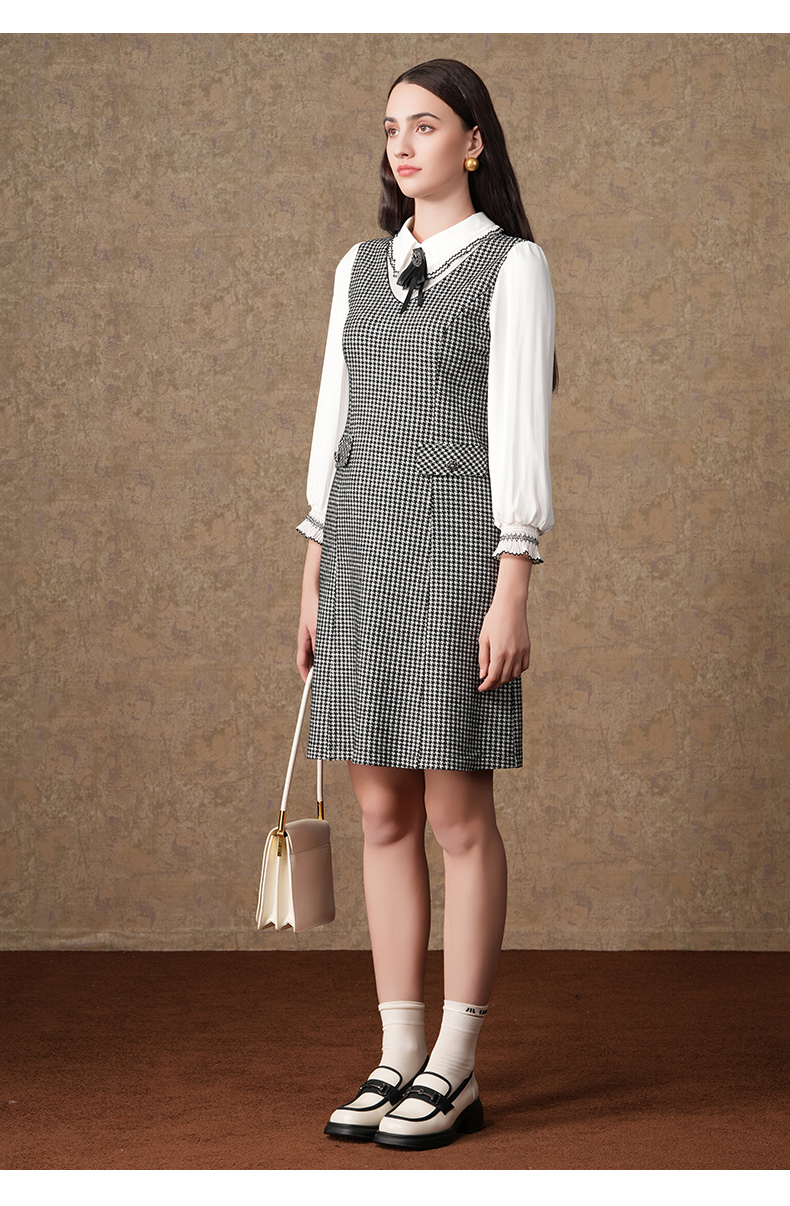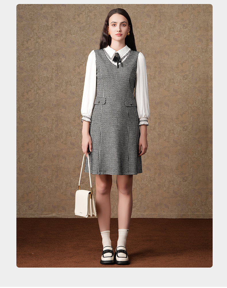 乔万尼羊毛连衣裙女秋冬新款小香风假两件ET4E878