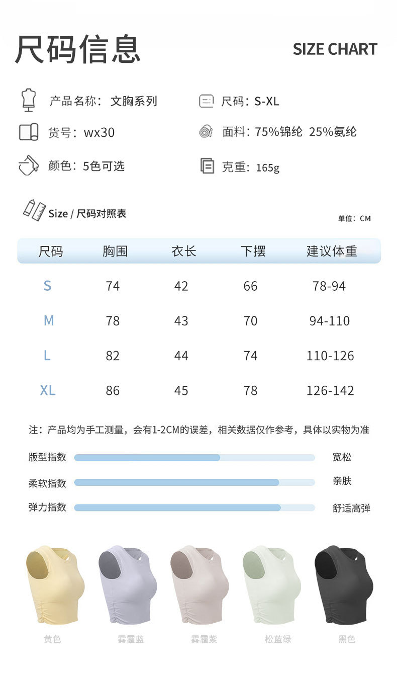 跃牌【美丽贤淑】上衣外穿防震瑜伽锦纶光面文胸背心 WX30