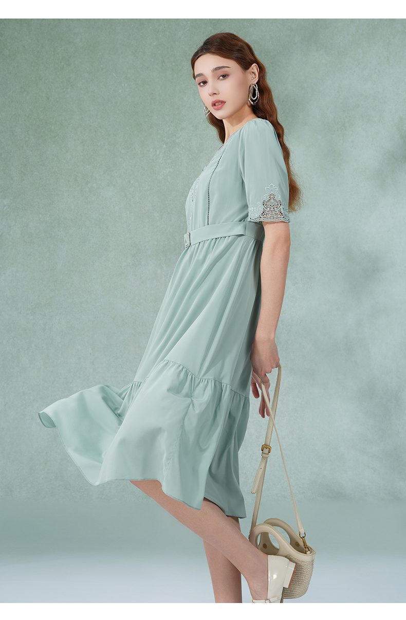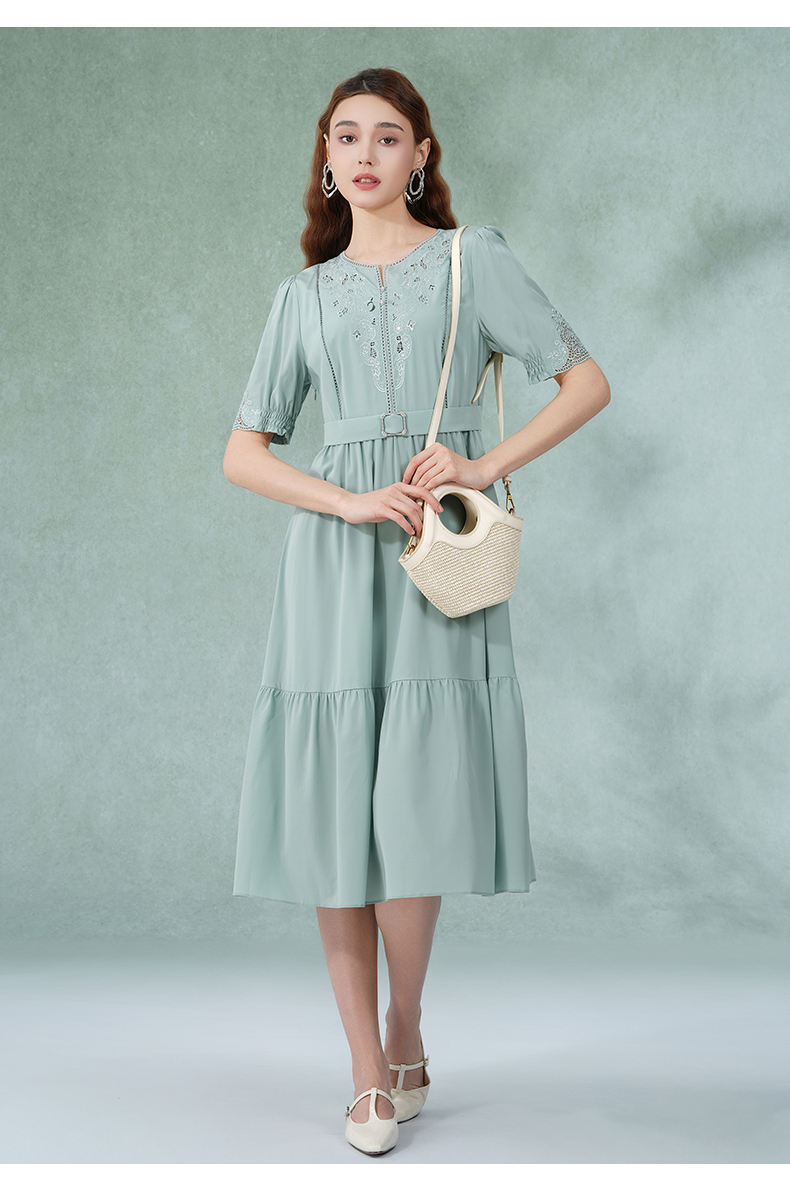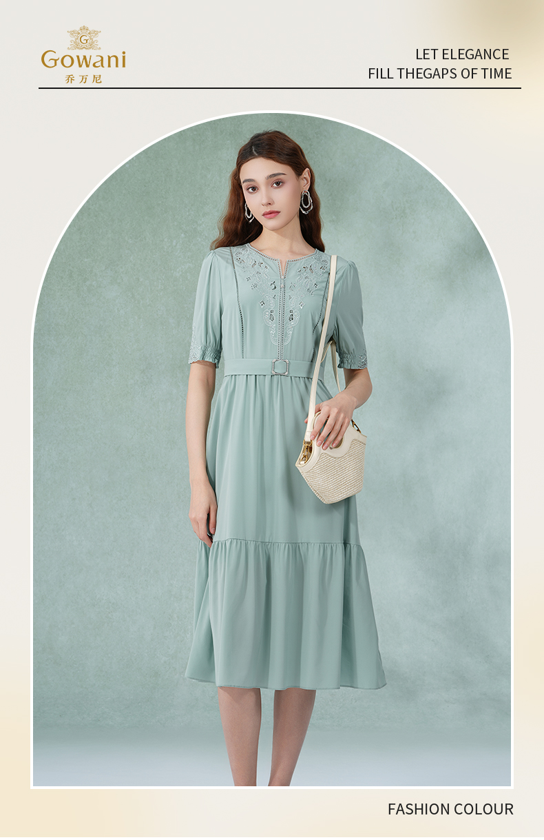乔万尼真丝连衣裙法式收腰重工绣花ET2E285