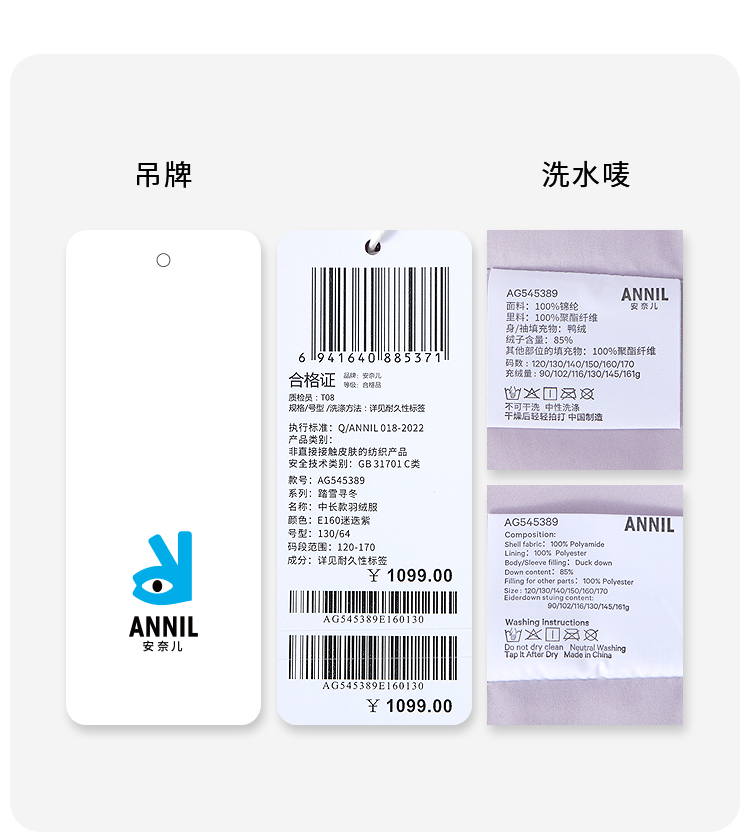 【实体店同款】女童中长款羽绒服冬季新款安奈儿童装AG545389