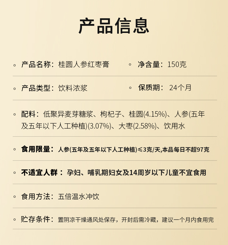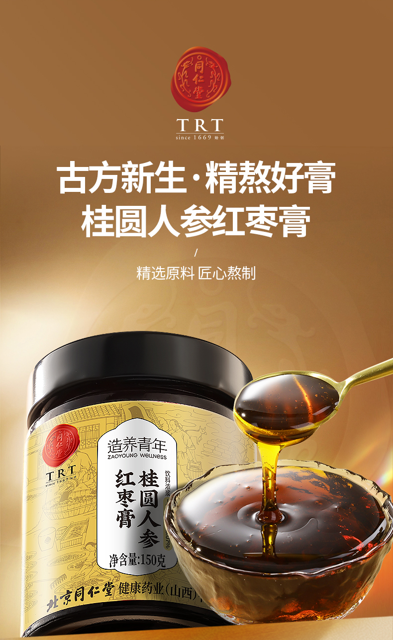 【99元任选3件】【正宗同仁堂品牌】北京同仁堂 造养青年 桂圆人参红枣膏 150克 古法工艺 浓缩精华 SY