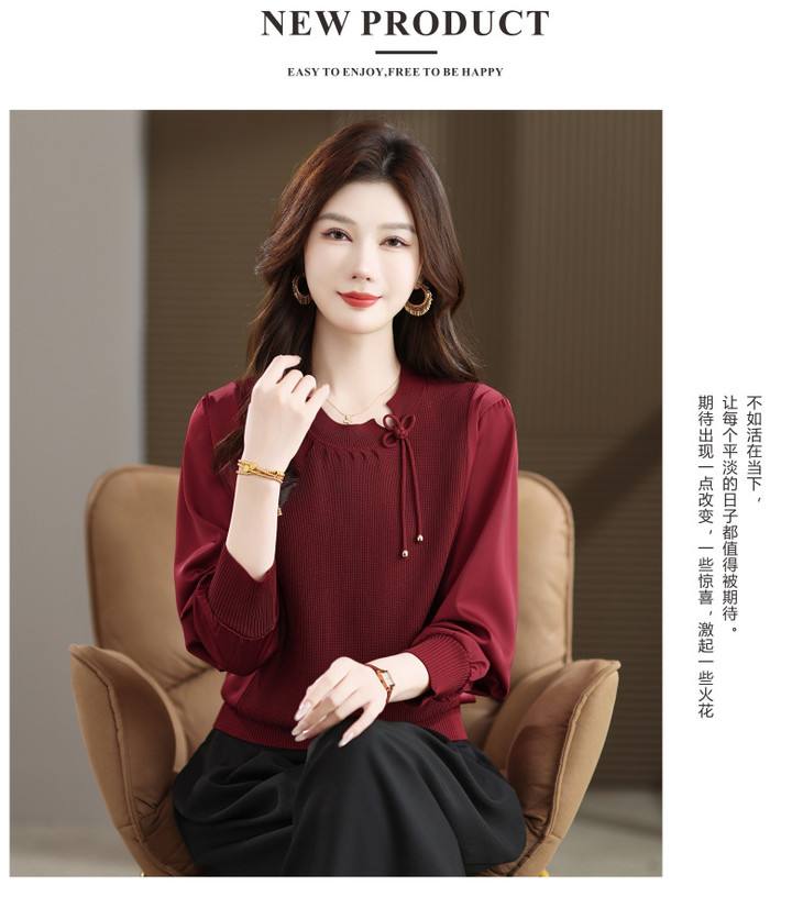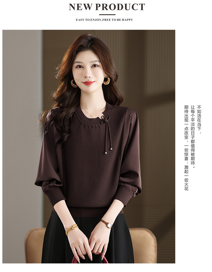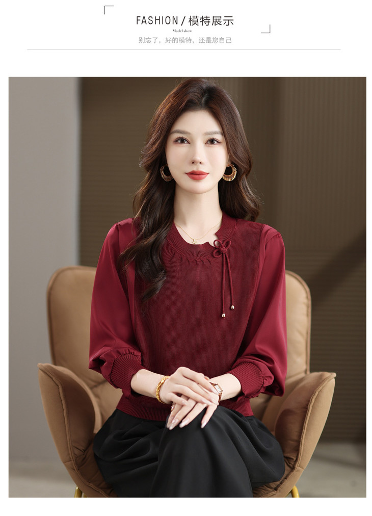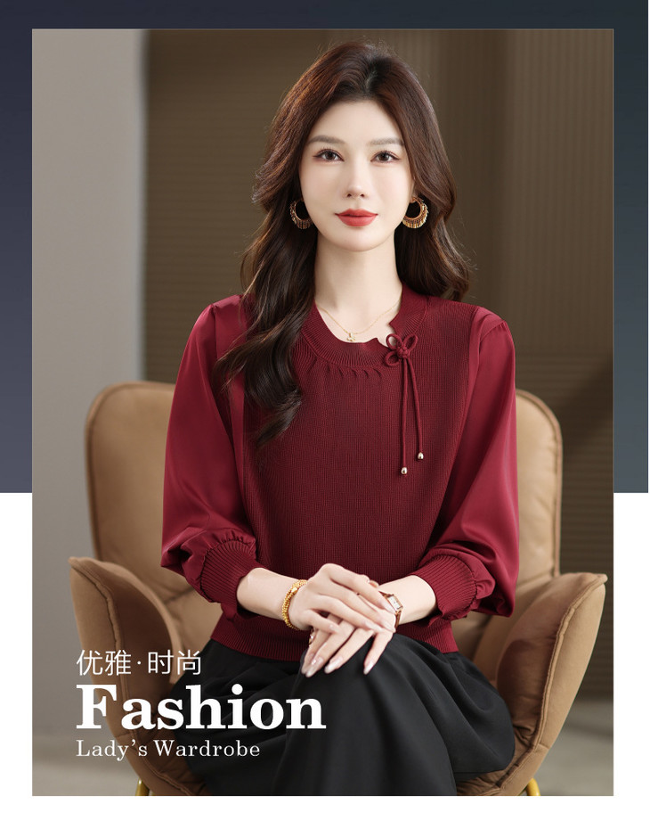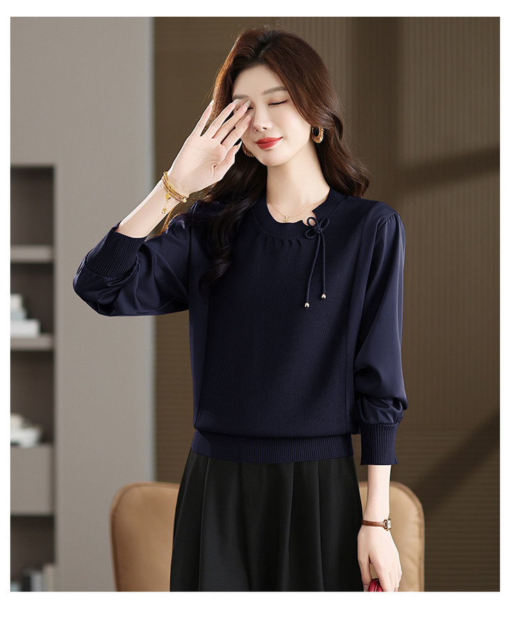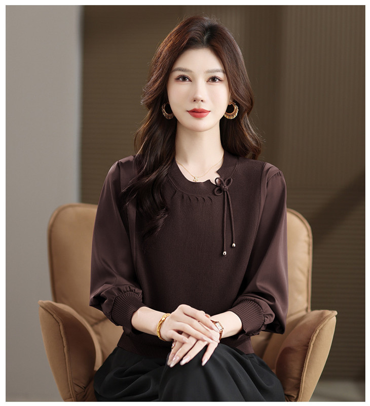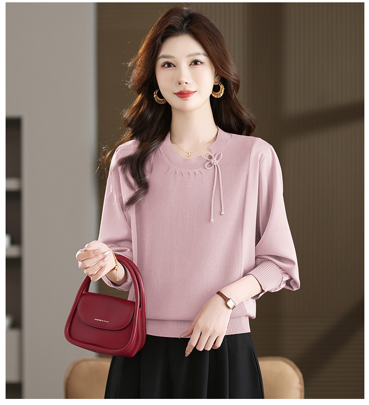新中式国风针织衫上衣,薄款长袖拼接圆领毛衣CC-MH-25259