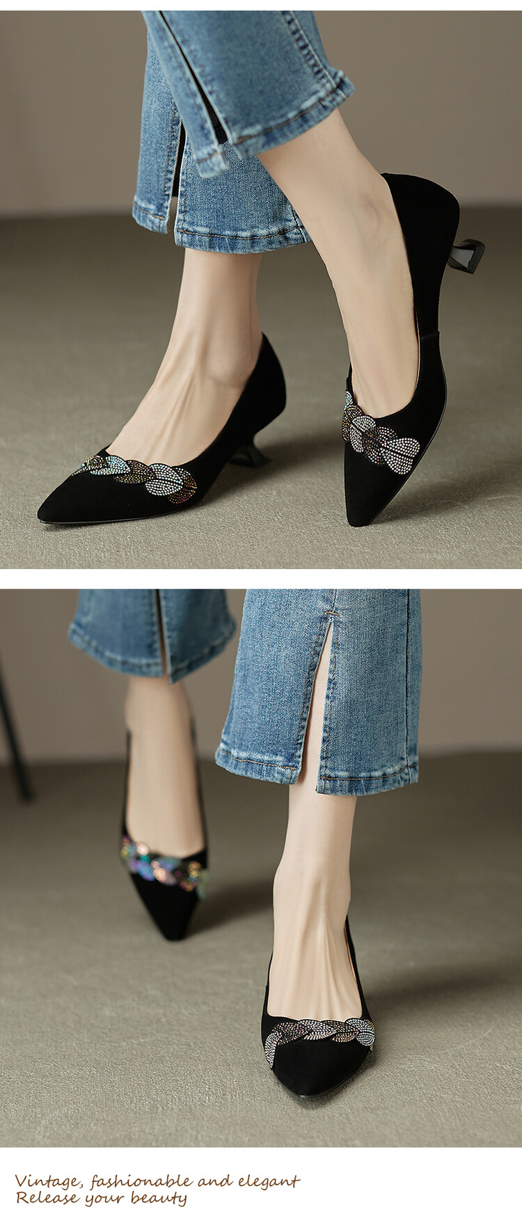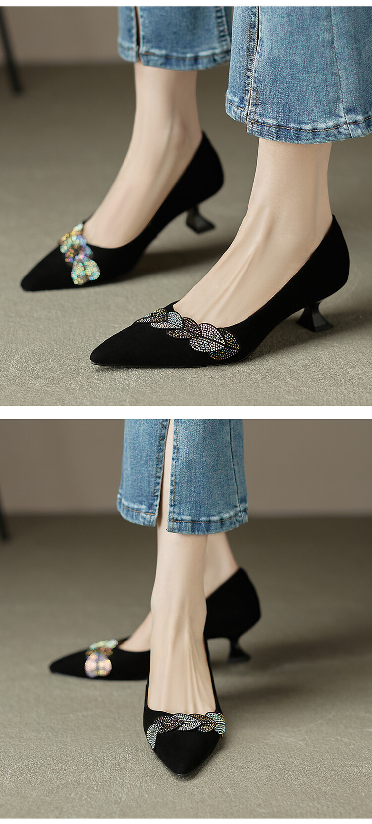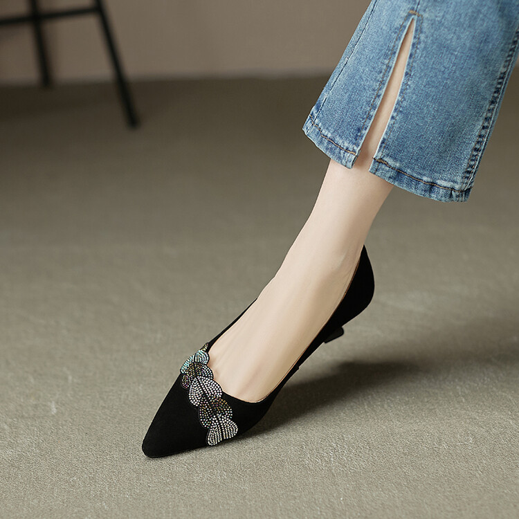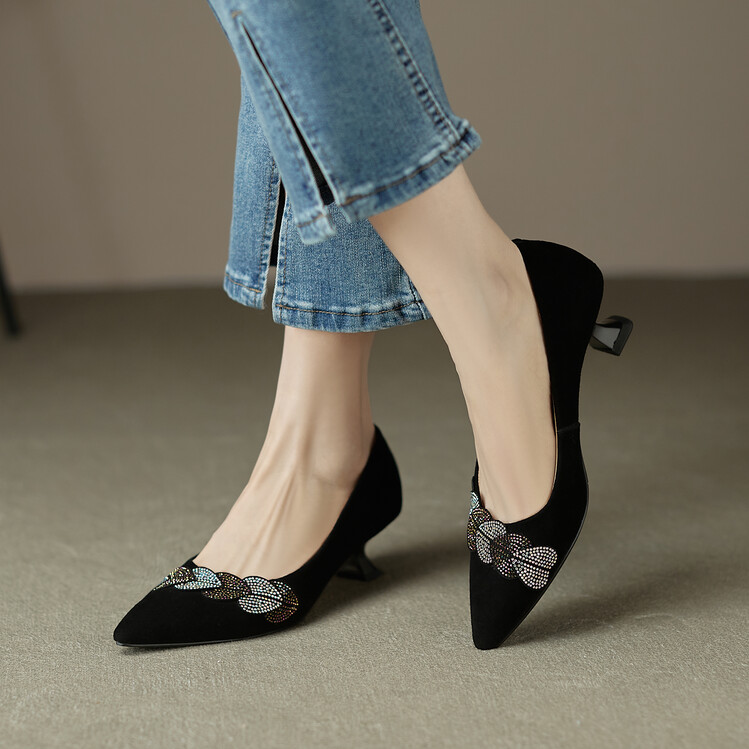 【颜 色】: 黑色,绿色【鞋 面】:羊皮【内 里】:猪皮【鞋 底】:橡胶底【跟 高】:5CM【尺 码】:34-39