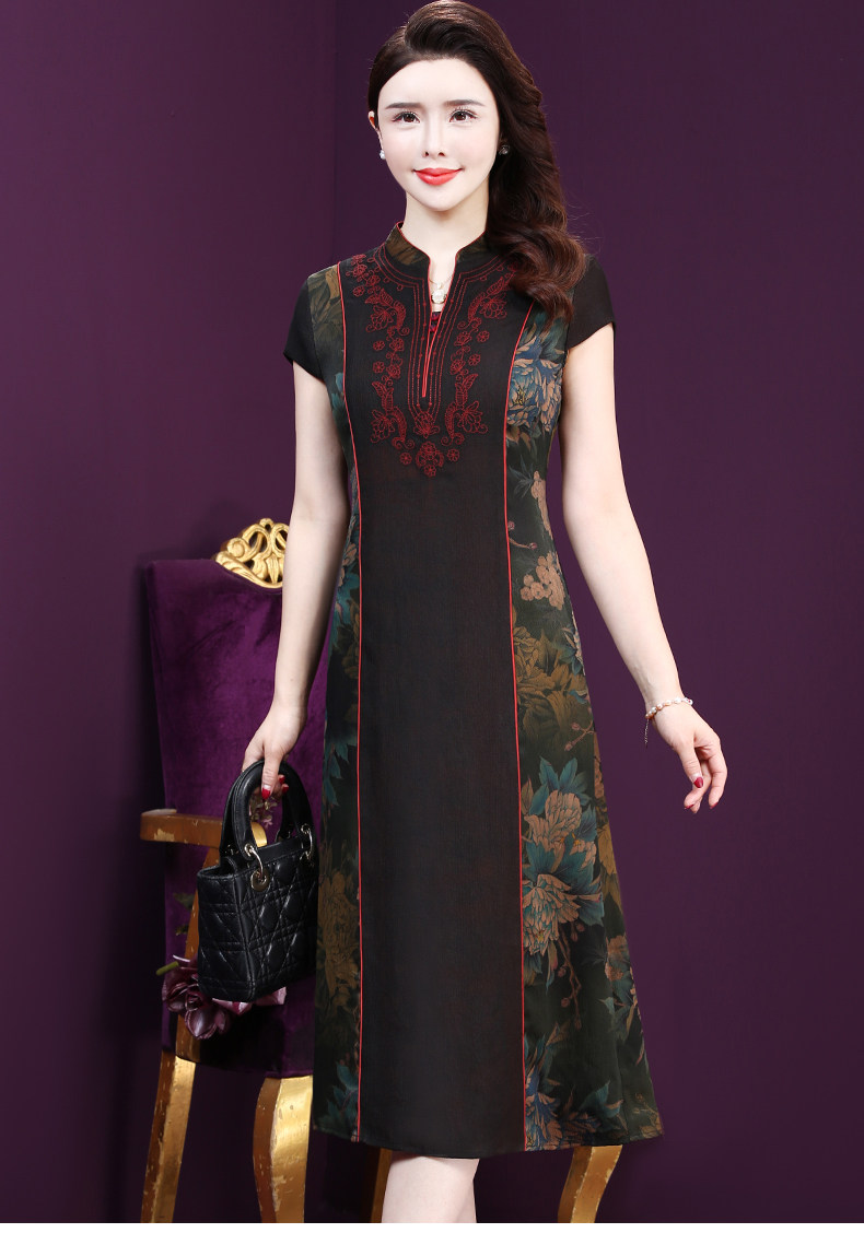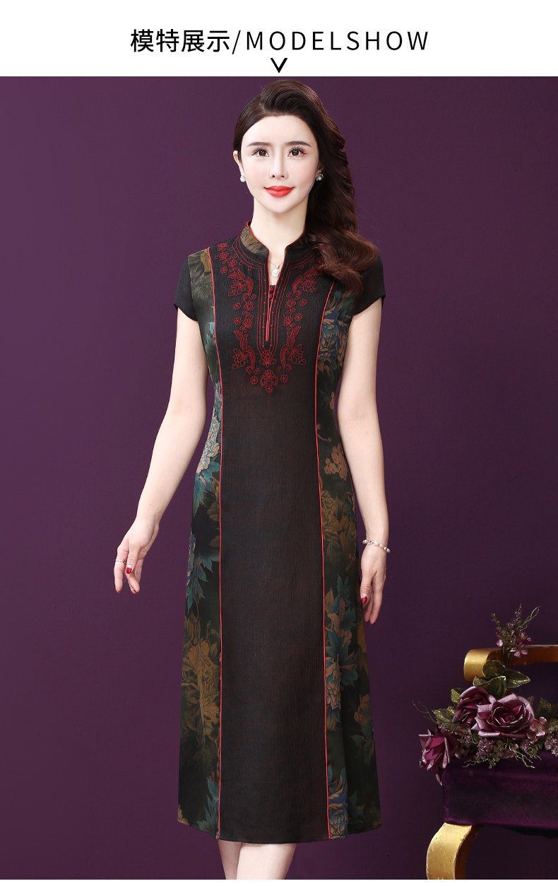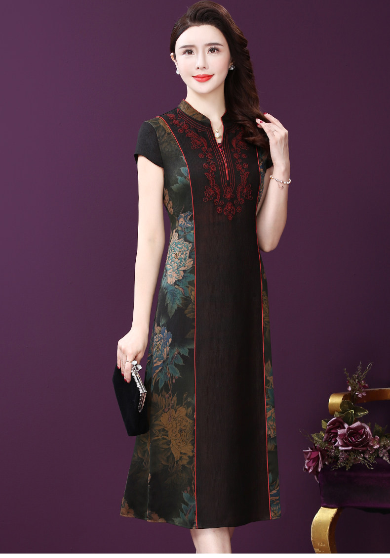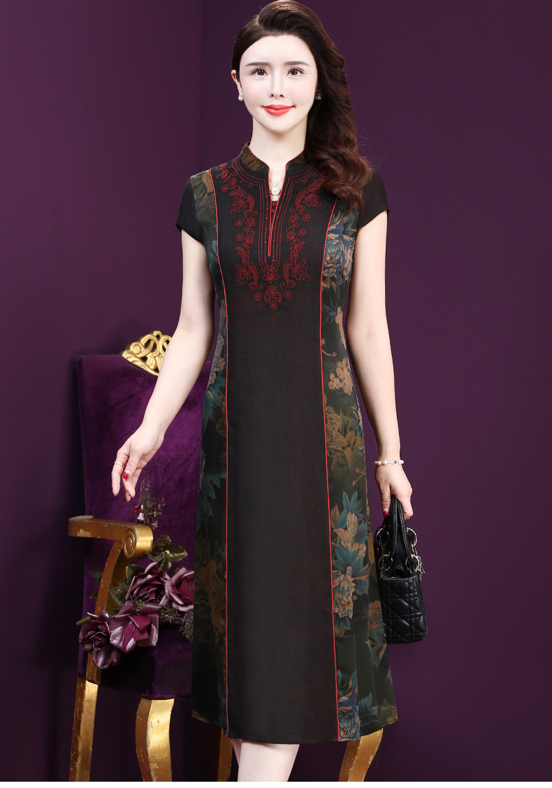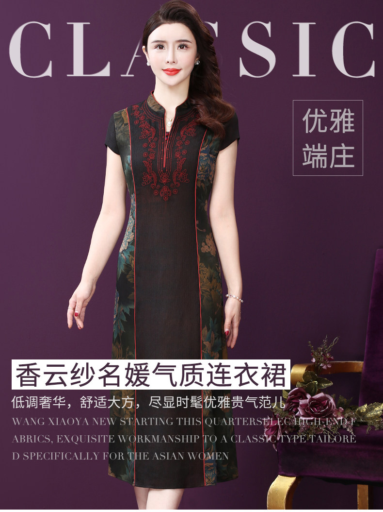 WXY-20059W夏装新款短袖小立领桑蚕丝连衣裙