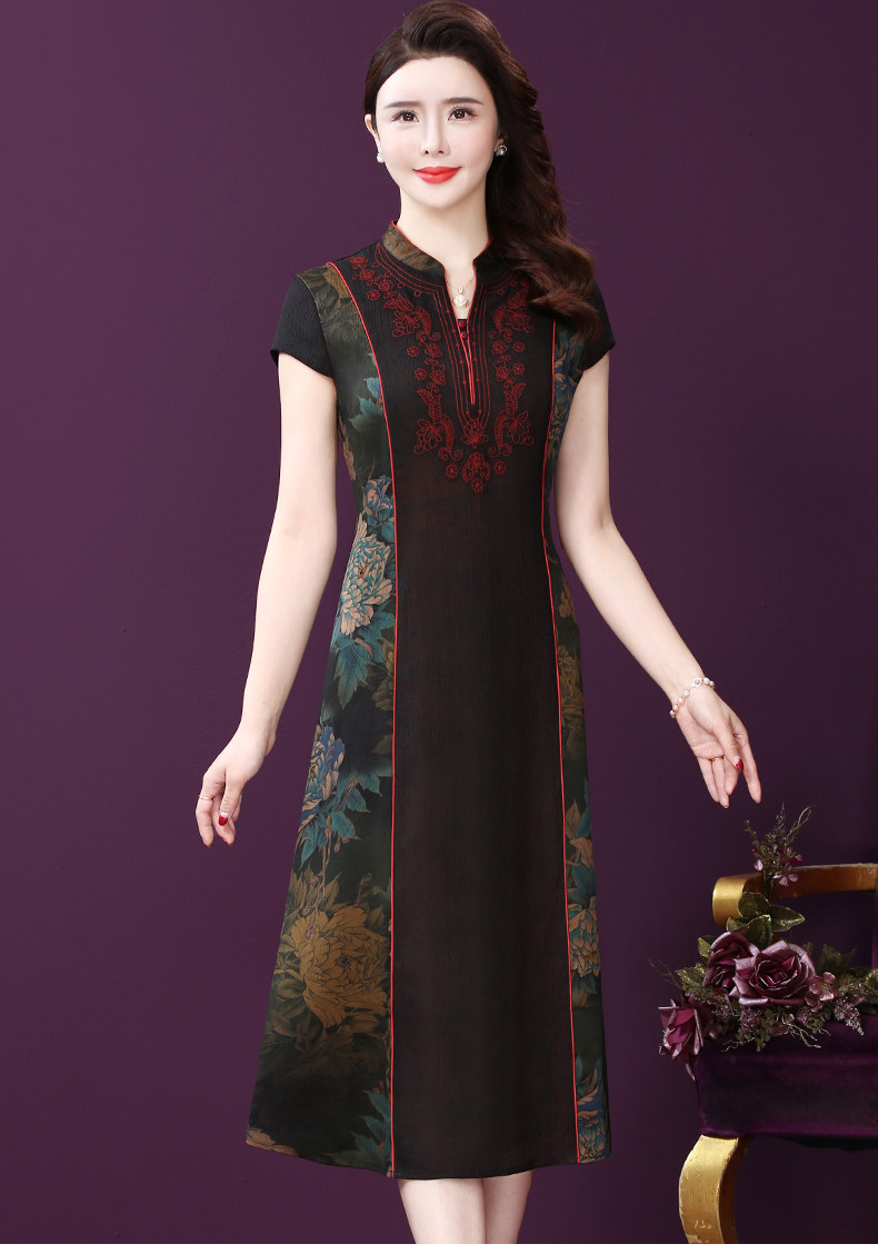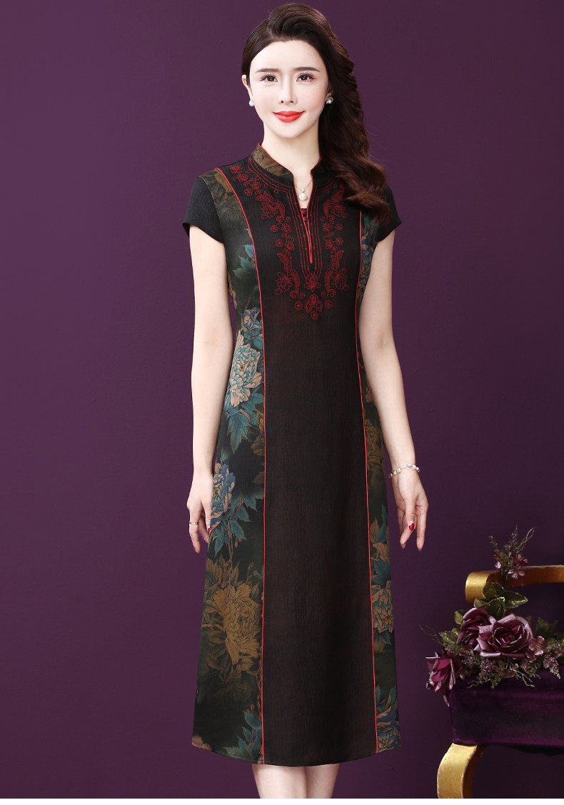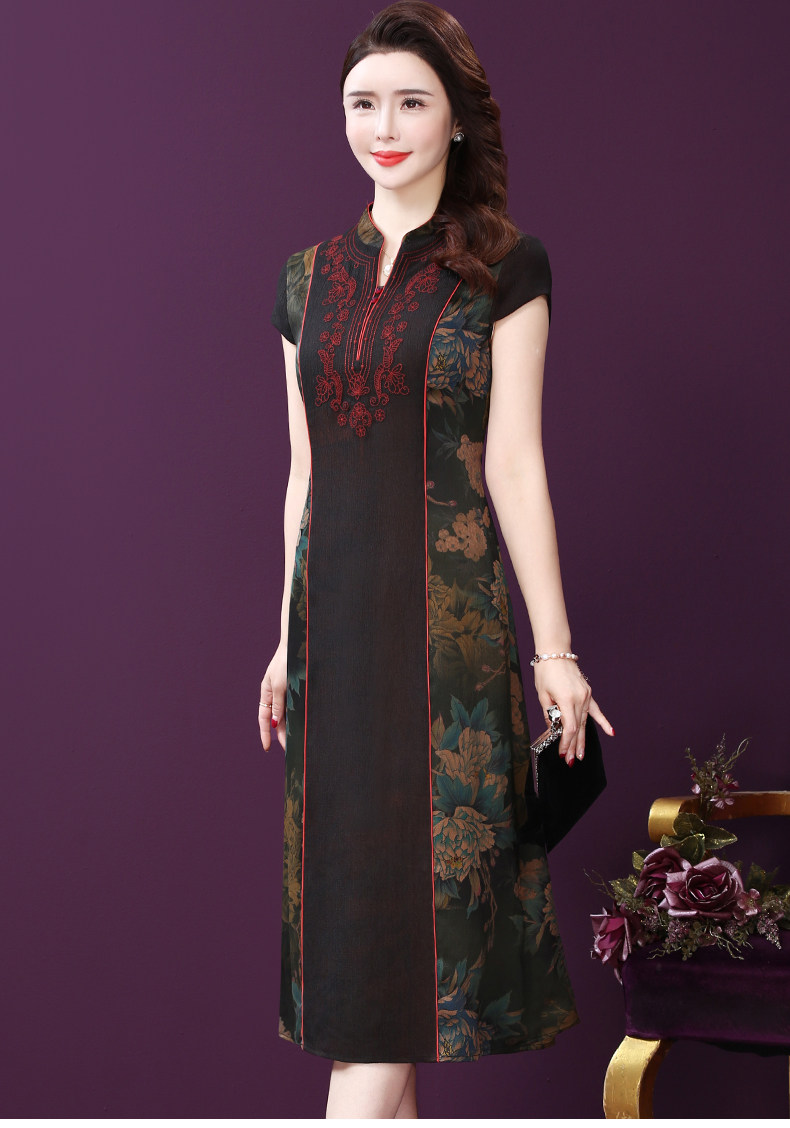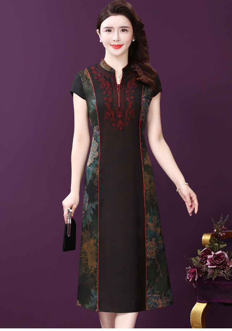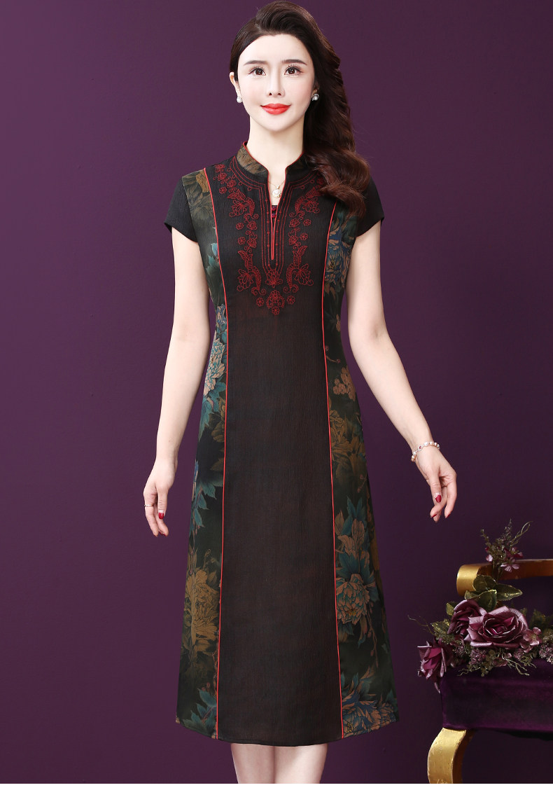 WXY-20059W夏装新款短袖小立领桑蚕丝连衣裙