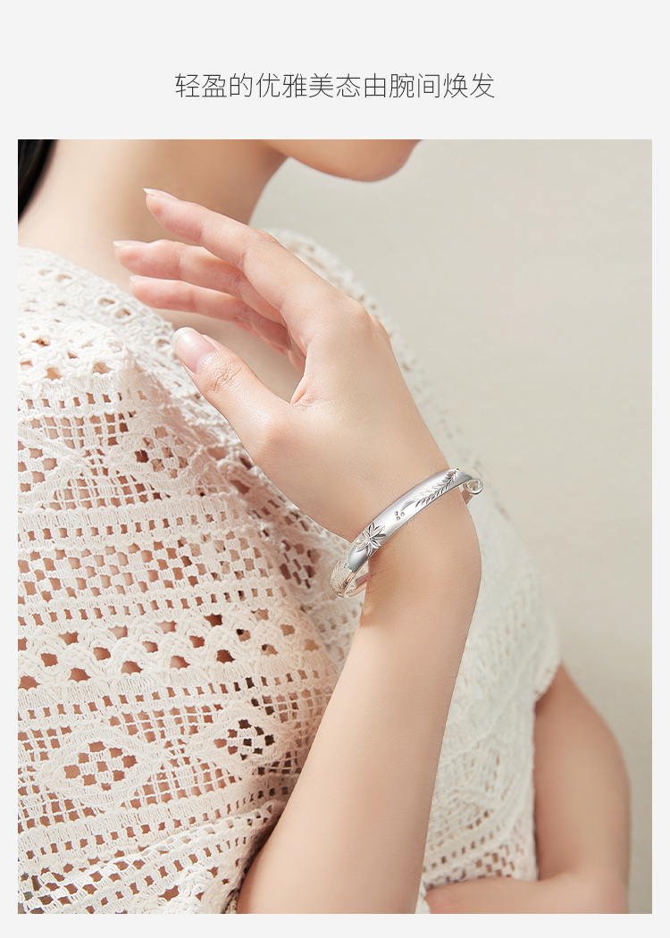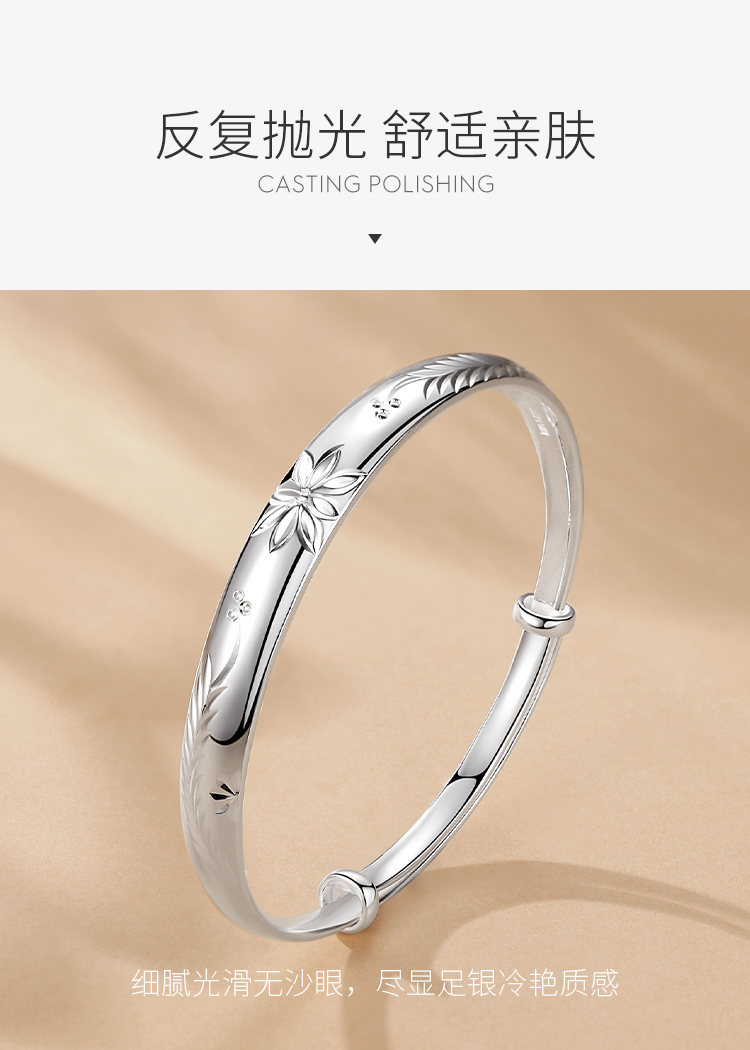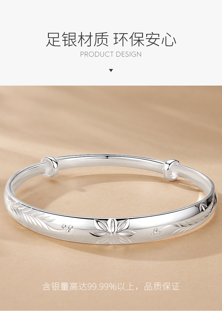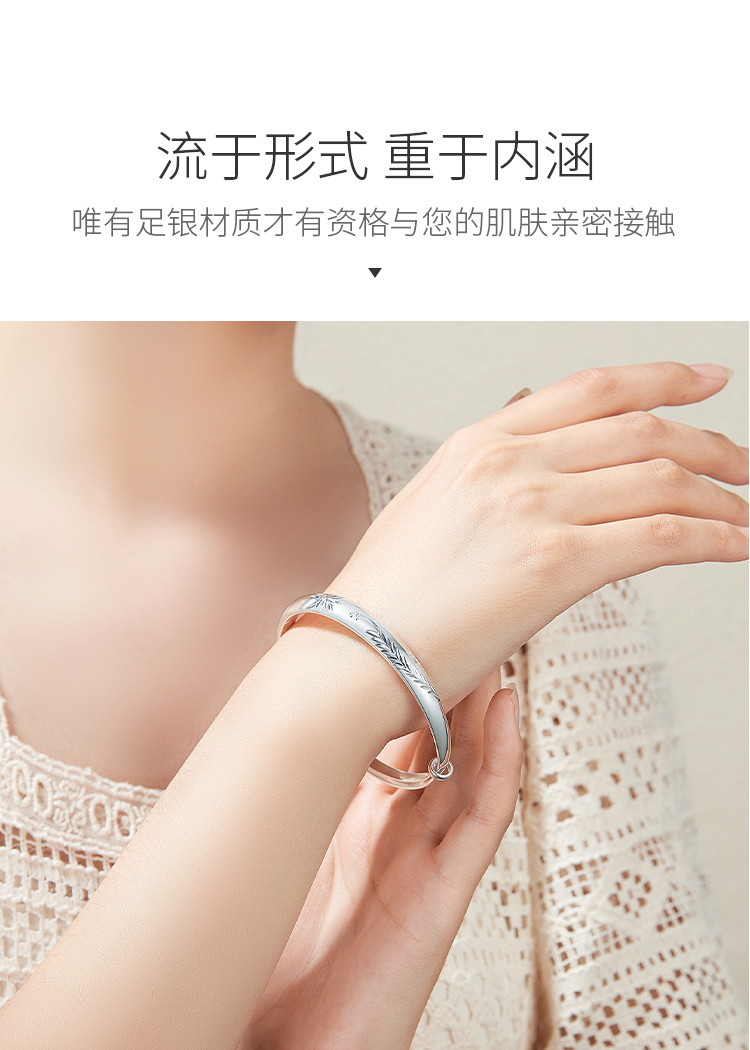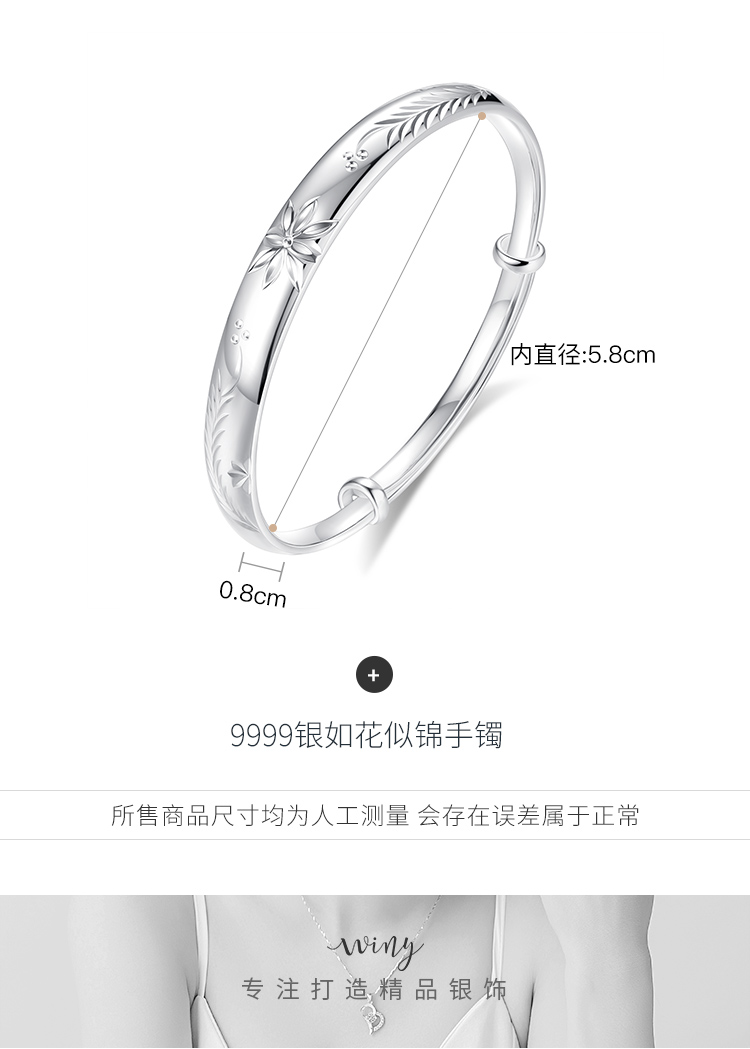 Winy9999足银如花似锦手镯新中式民族风年轻款纯银镯子送妈妈生日礼物