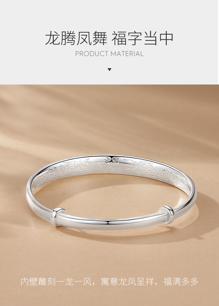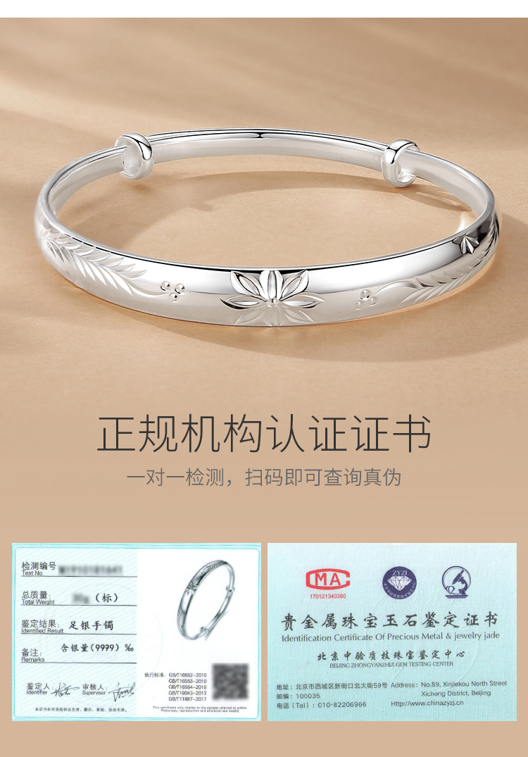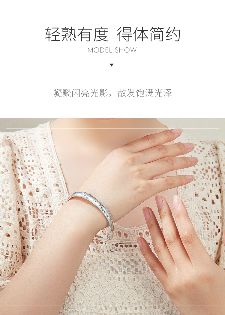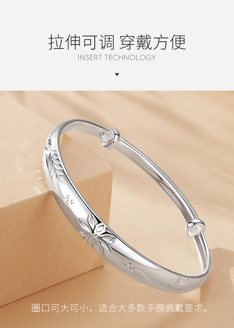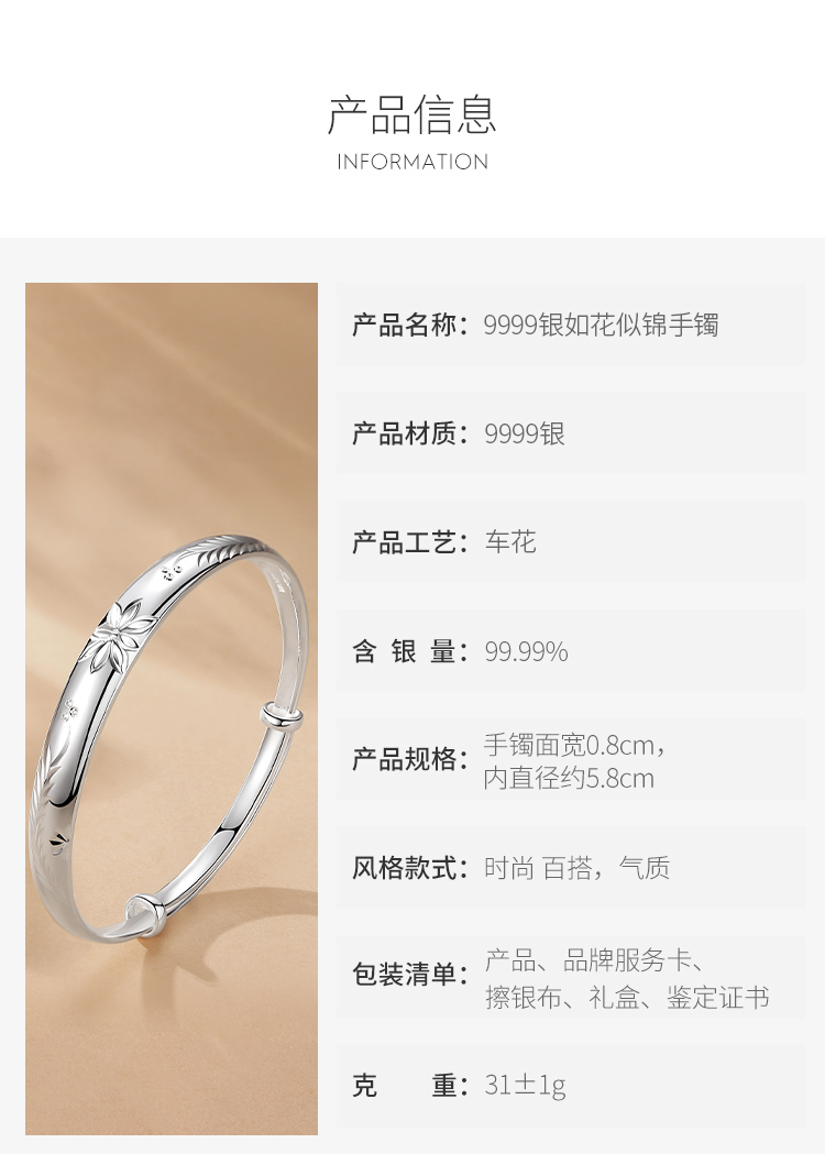 Winy9999足银如花似锦手镯新中式民族风年轻款纯银镯子送妈妈生日礼物