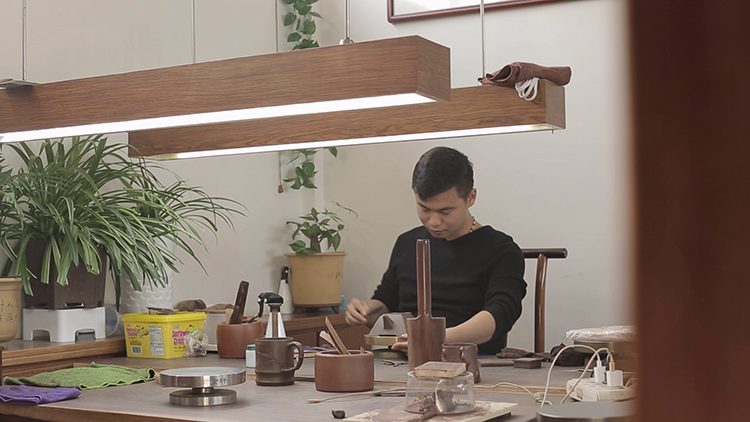 在母亲的言传身教下,对紫砂壶创作有了一定造诣。