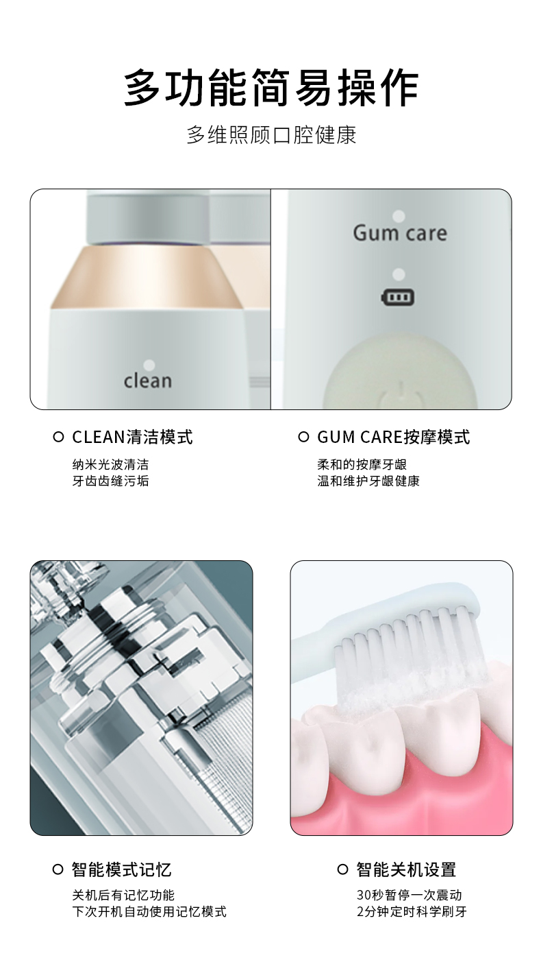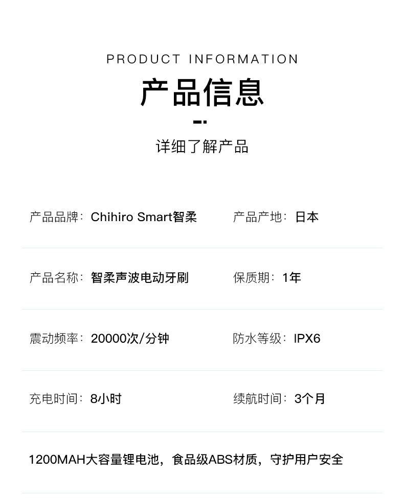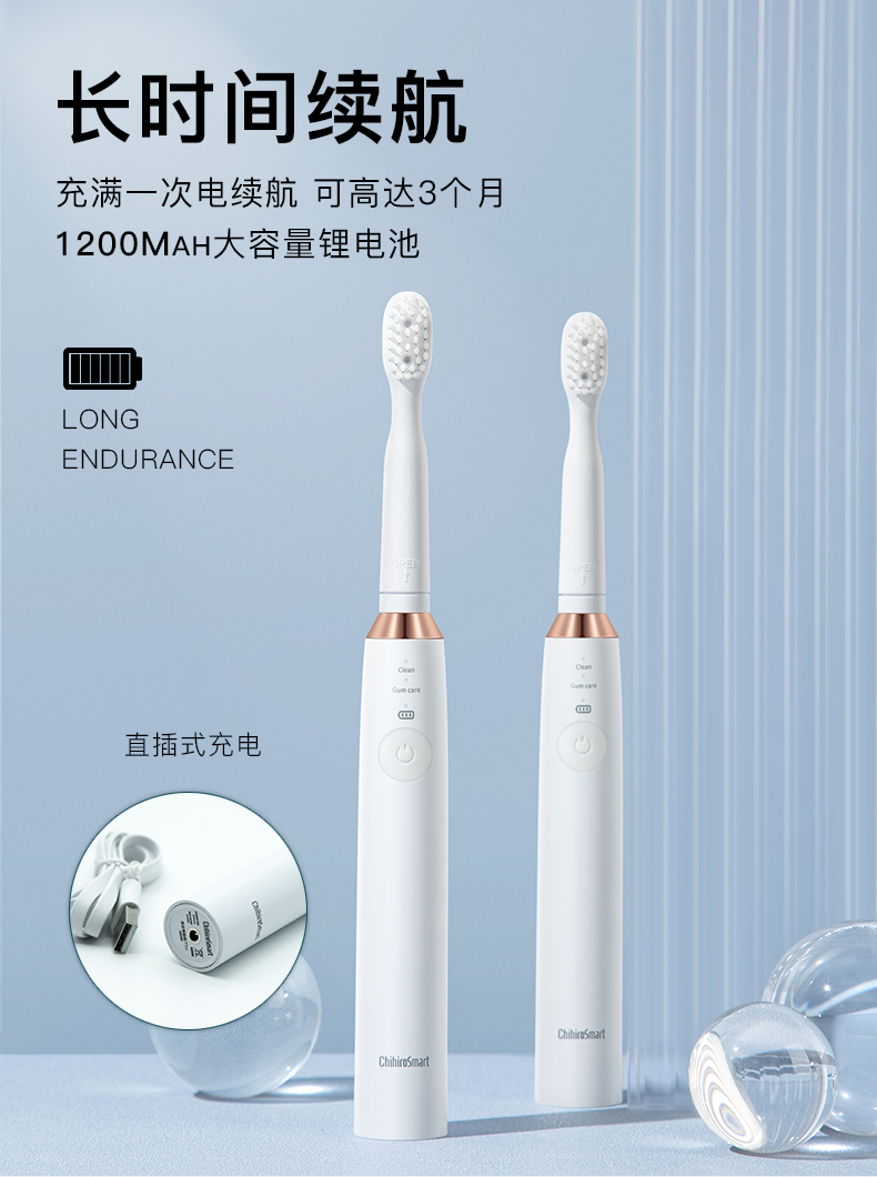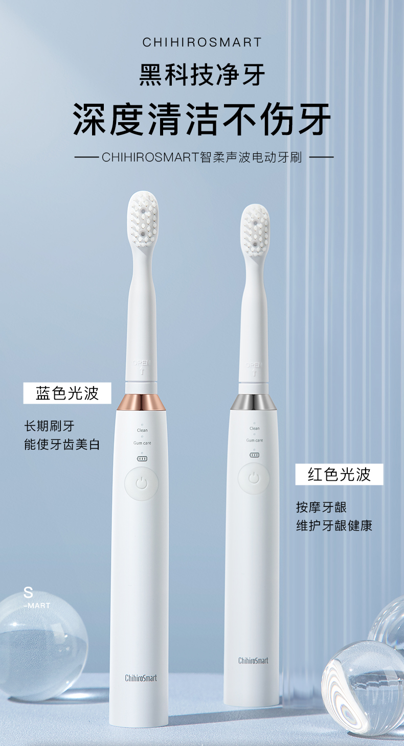 【纳米光波技术】ChihiroSmart/智柔光波纳米电动牙刷超长续航3个月超细刷头两种模式