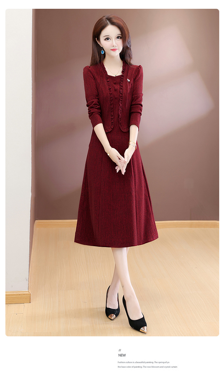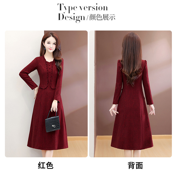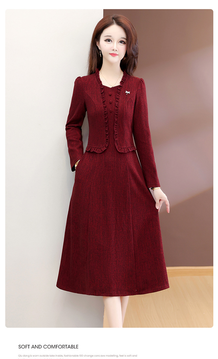 QYMXQD-54C2528-1-Y假两件妈妈装连衣裙2025年秋冬季新款气质喜婆婆婚宴礼服裙中长裙 商品图0