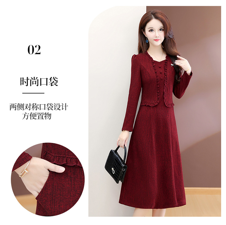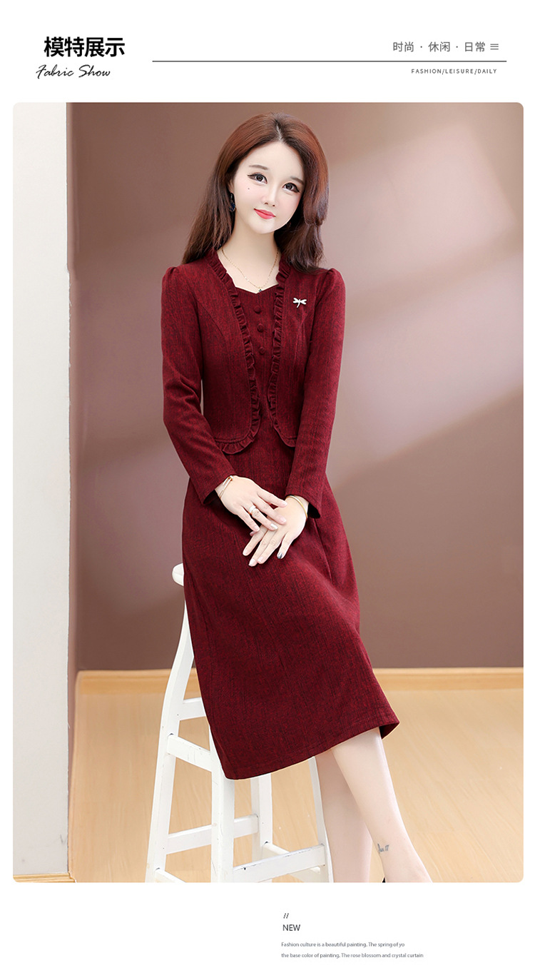QYMXQD-54C2528-1-Y假两件妈妈装连衣裙2025年秋冬季新款气质喜婆婆婚宴礼服裙中长裙 商品图3