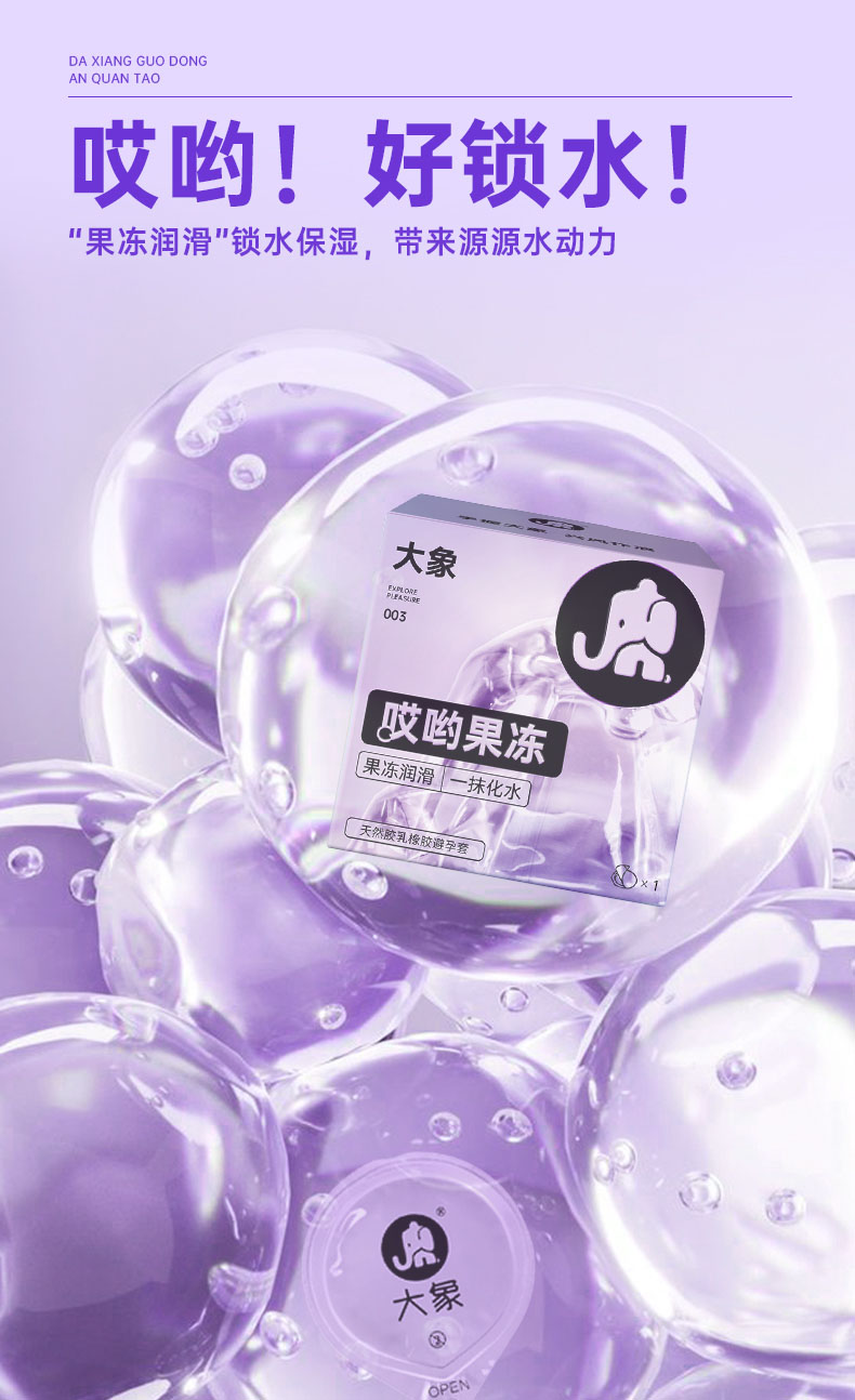 【年末亏本清仓 3倍润滑 女性友好玻尿酸】大象 哎哟果冻避孕套 1只装