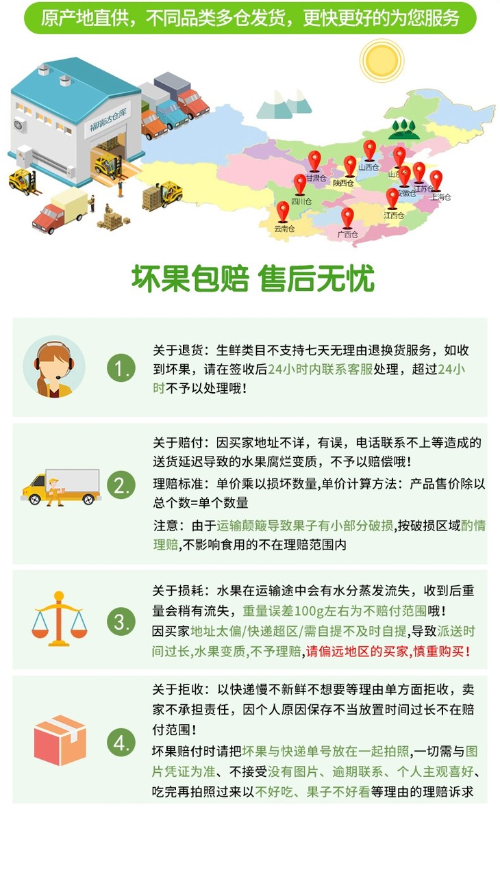 3.签收24小时内拍照,坏果和快递单一起的照片,必须清晰的看见单号。