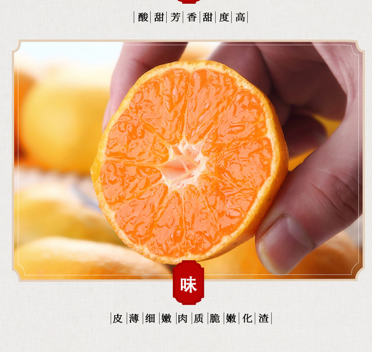 产品特点:果实外观呈扁圆形,果皮较薄,表面细滑,色泽鲜艳,橙黄至橙红色;果肉橙红色,肉质清甜、细腻、多汁、无渣,入口即化,果味香味浓厚