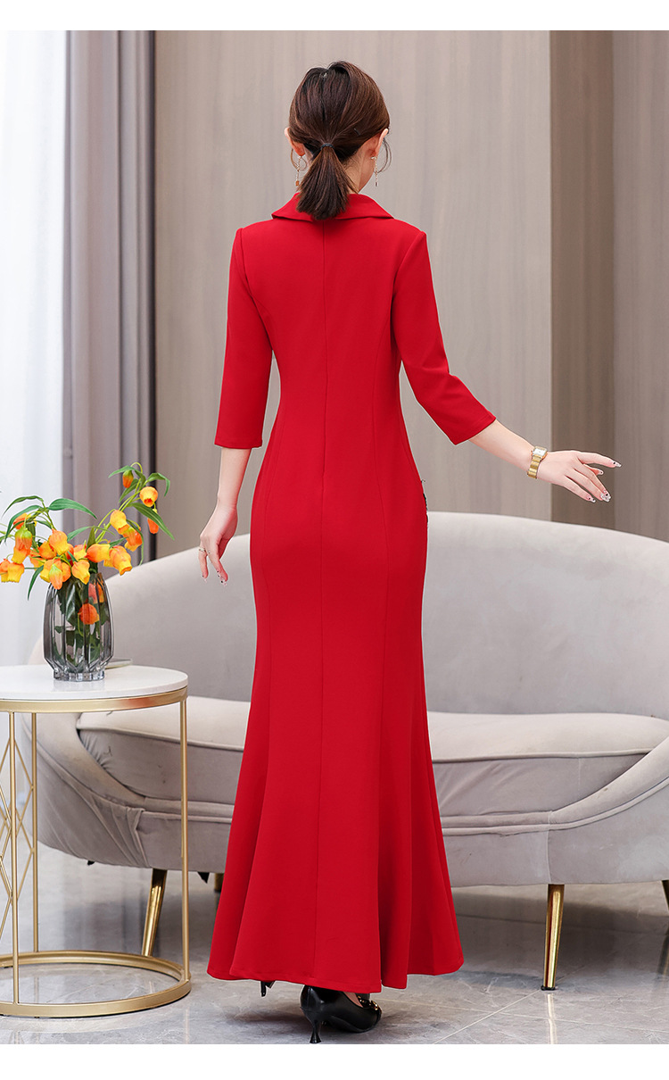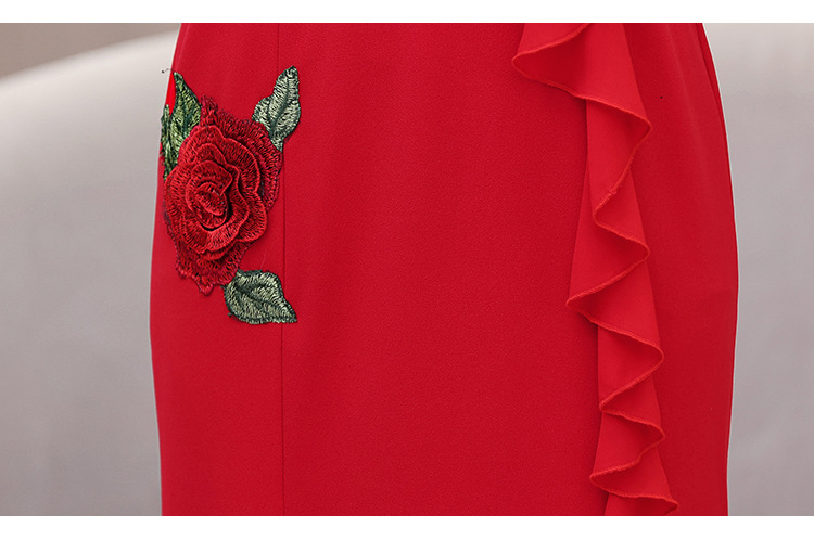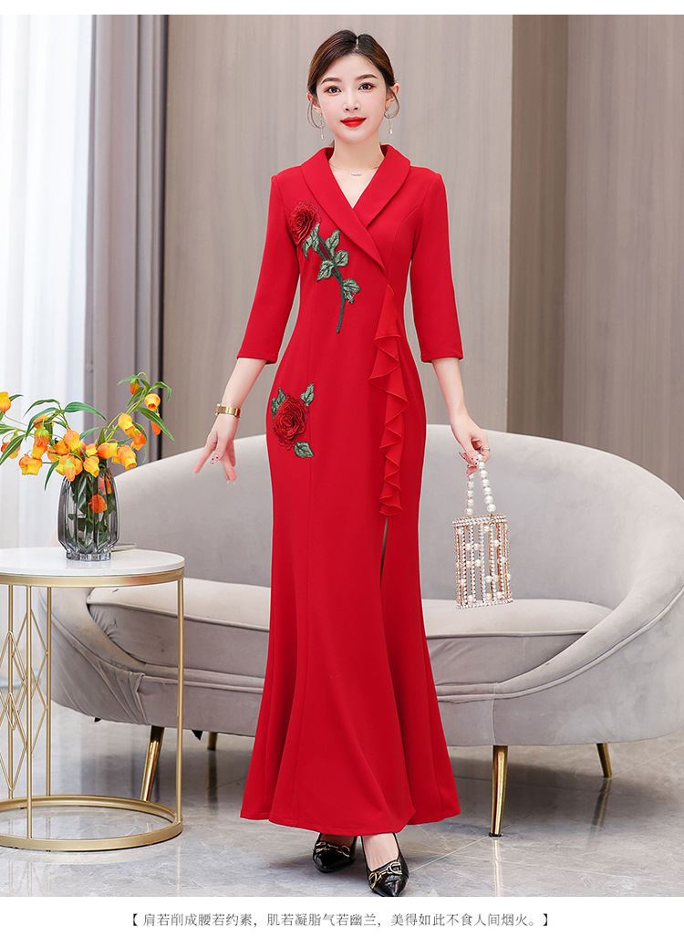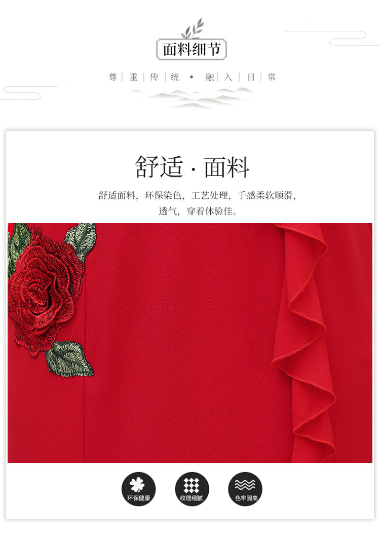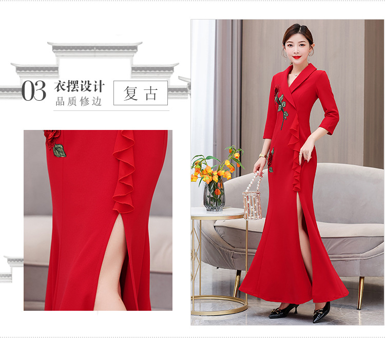 【XY】QE92222023春季新款中国风复古修身斜襟走秀表演长款旗袍刺绣花荷叶边裙