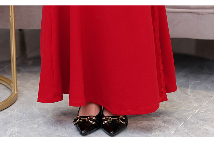 DY 4146 秋冬新款加厚花朵刺绣立领修身大摆连衣裙