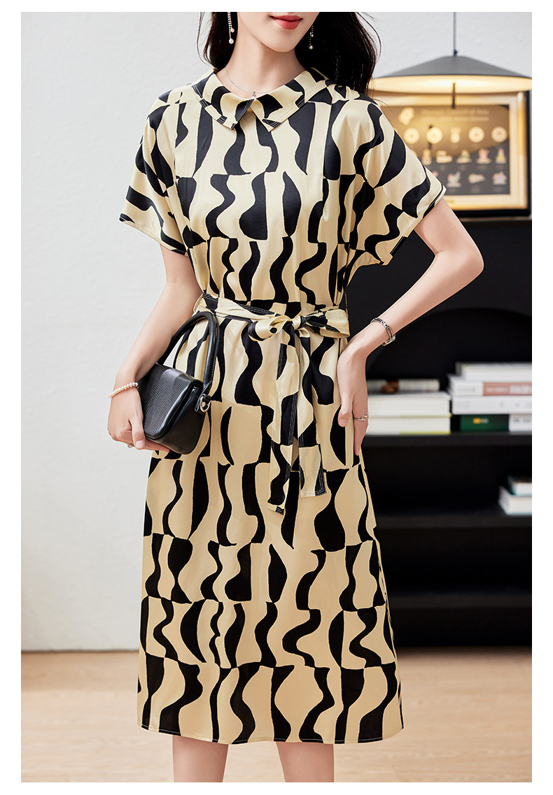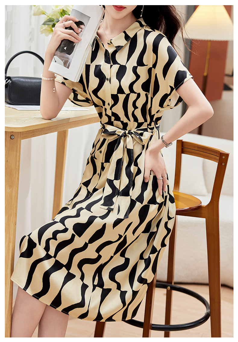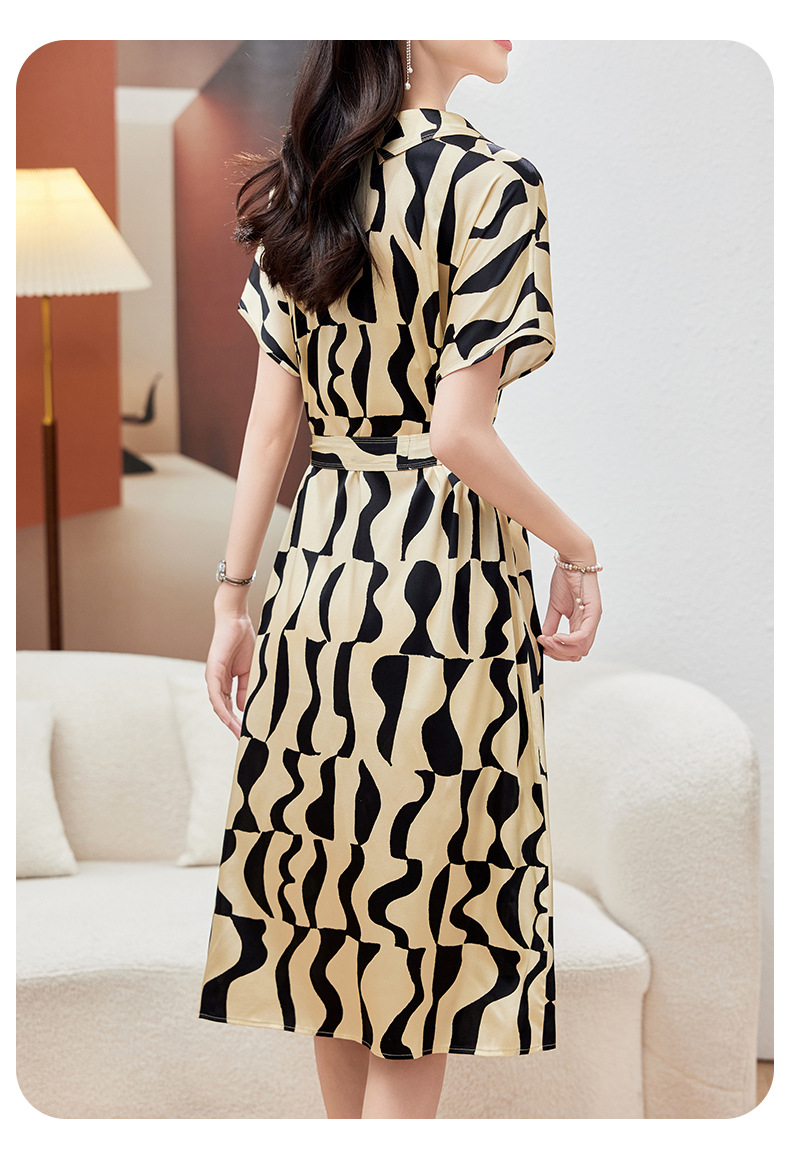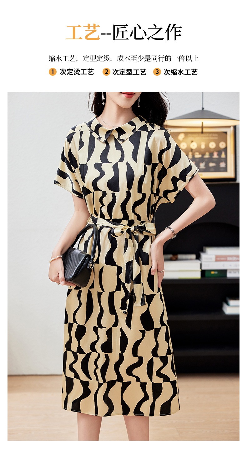 KQ-PZ09160 19姆米重磅弹力缎短袖连衣裙女2025夏季法式优雅气质收腰显瘦裙子