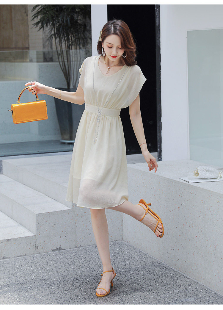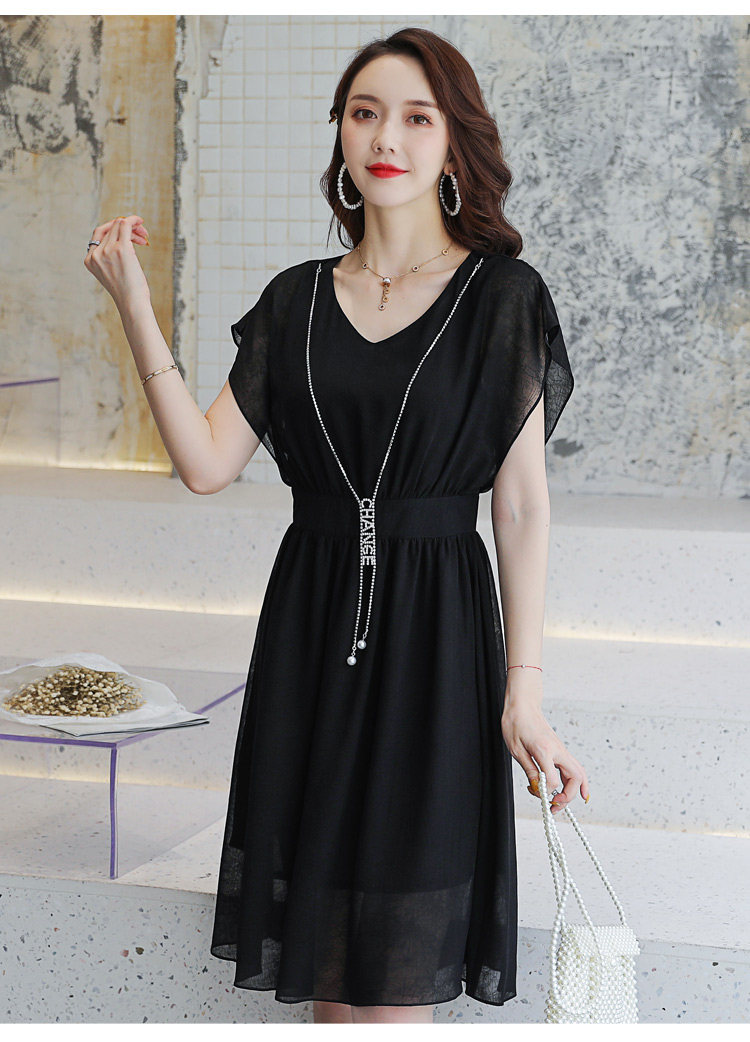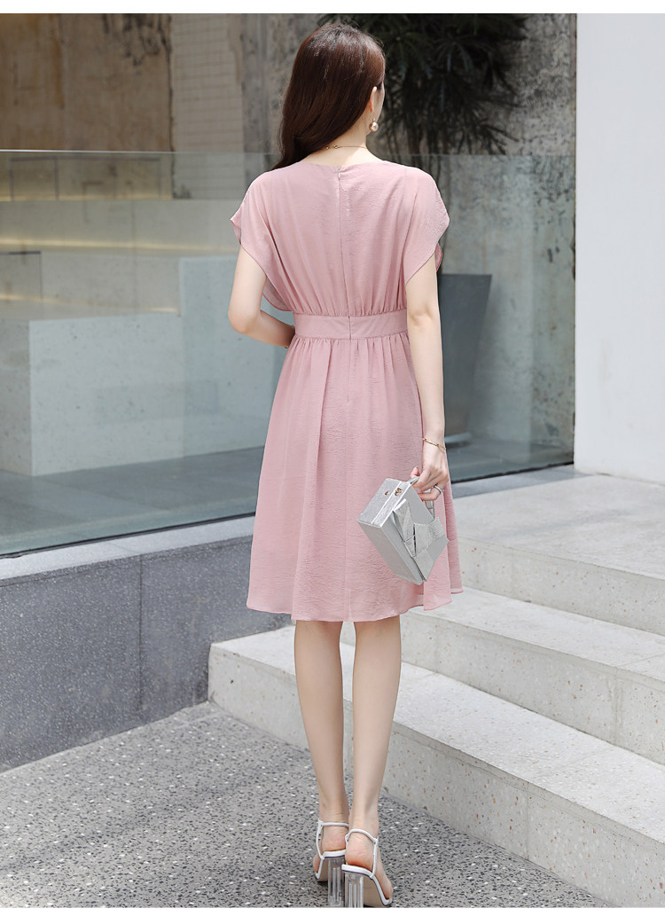 2019新款纯色显瘦修身百搭时尚雪纺连衣裙Q-XLGD1931