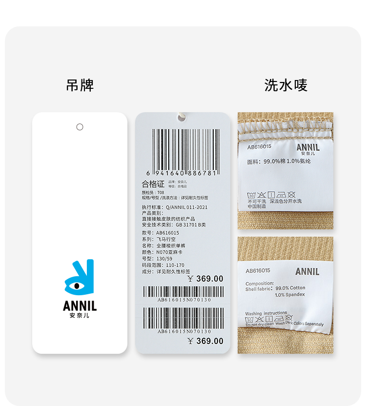 【实体店同款】男童全腰梭织单裤春季新款安奈儿童装AB616015