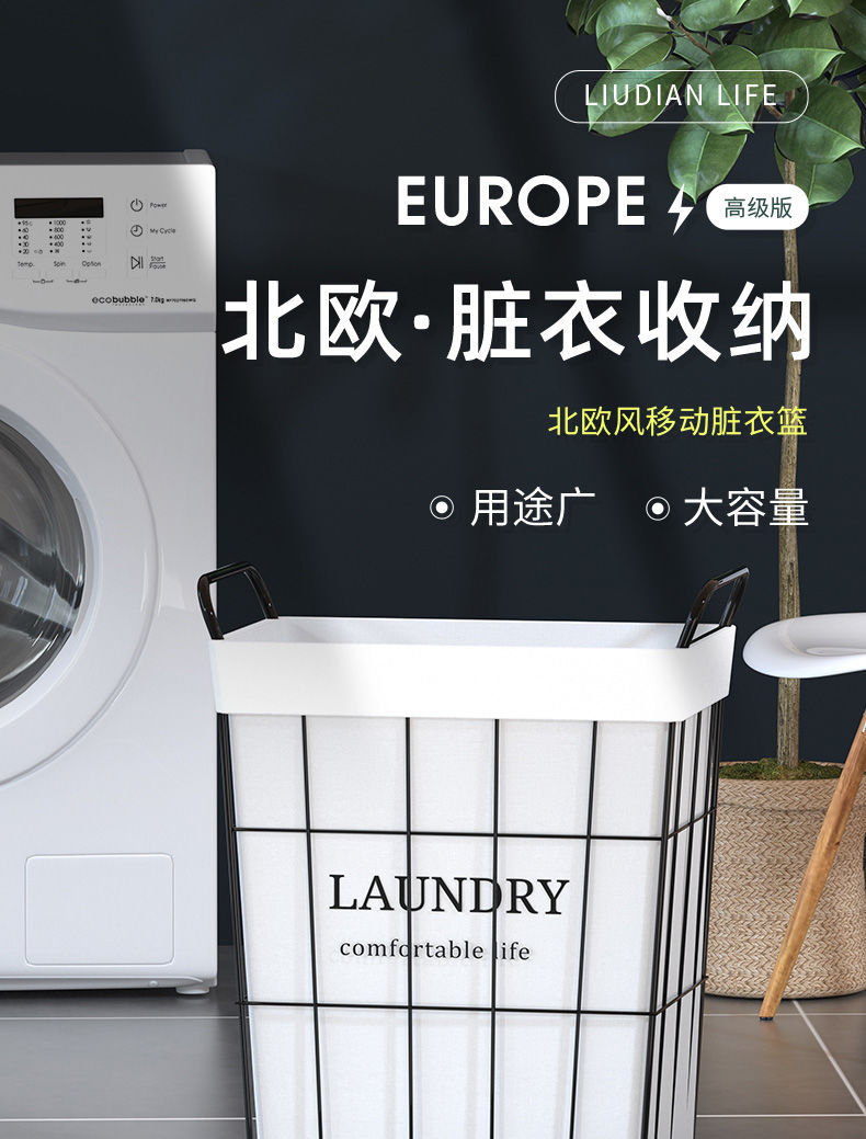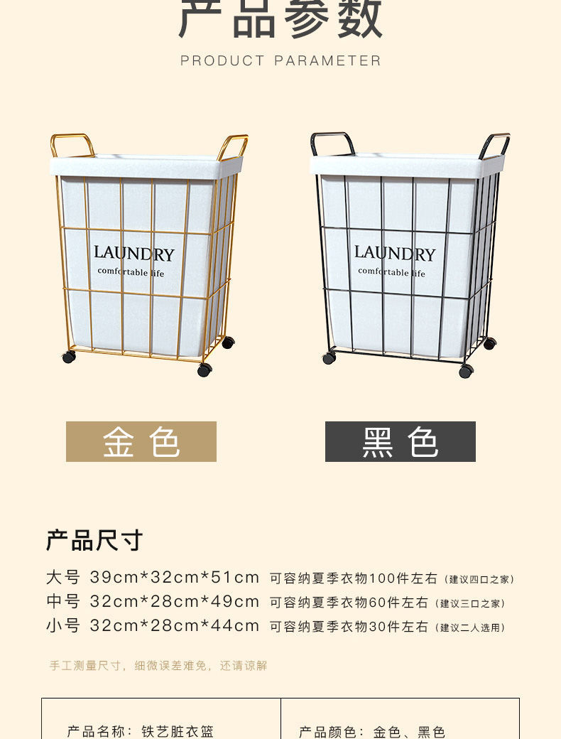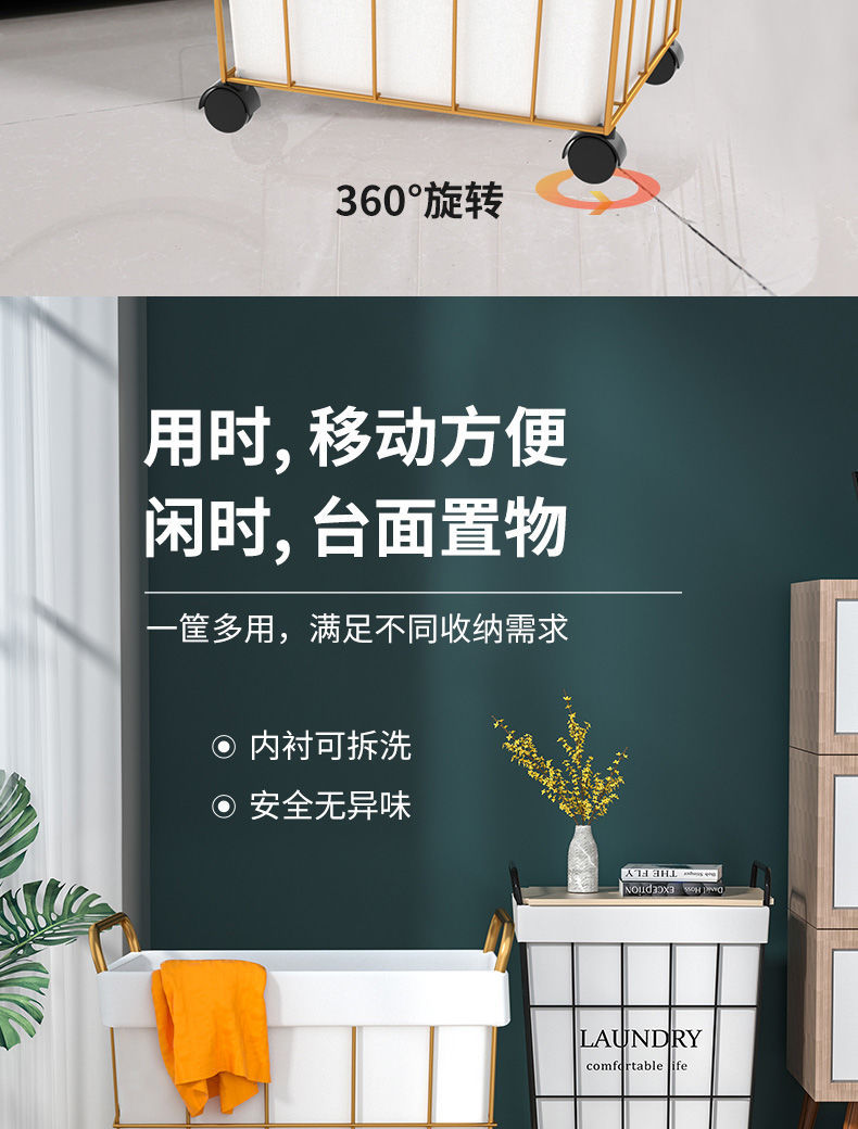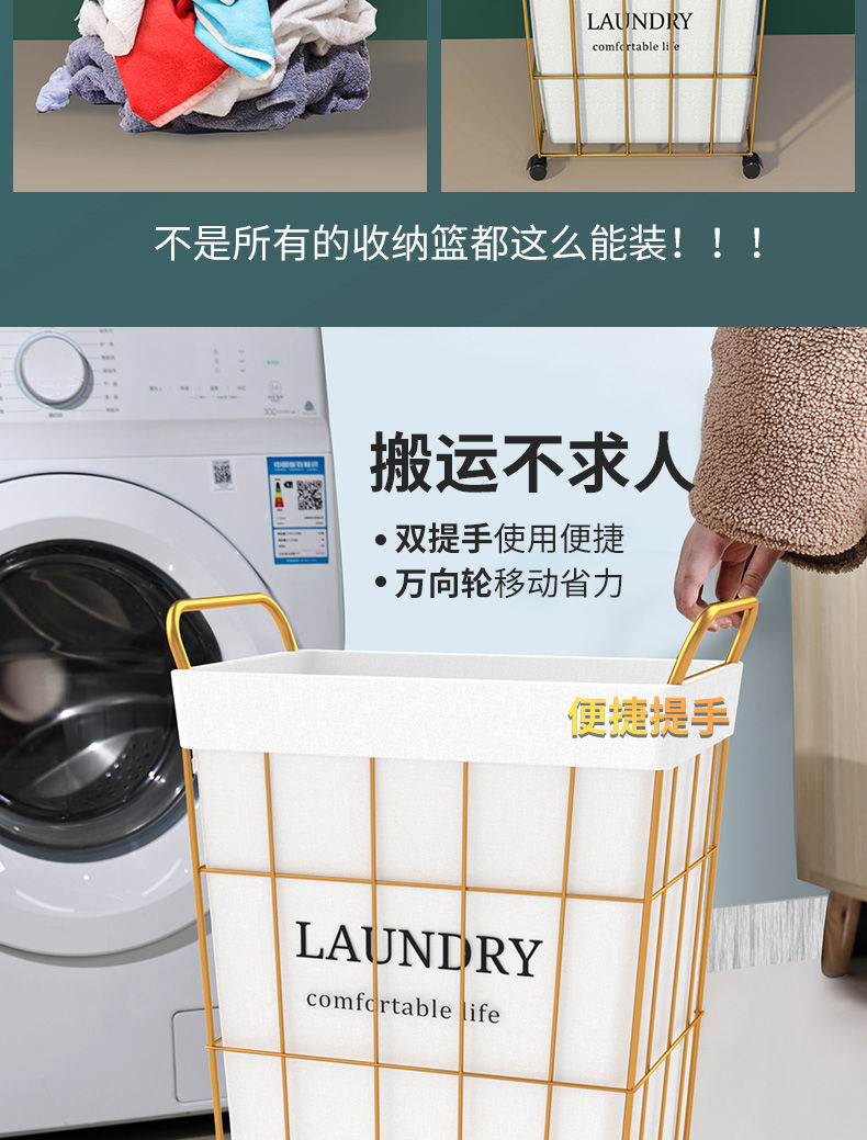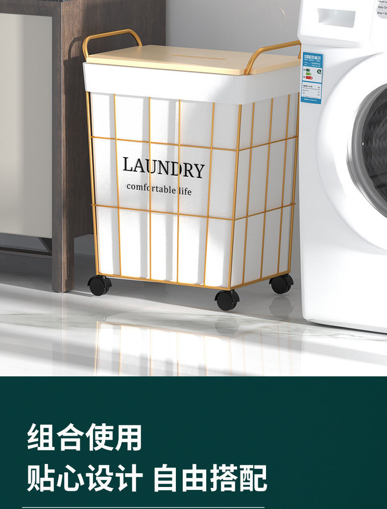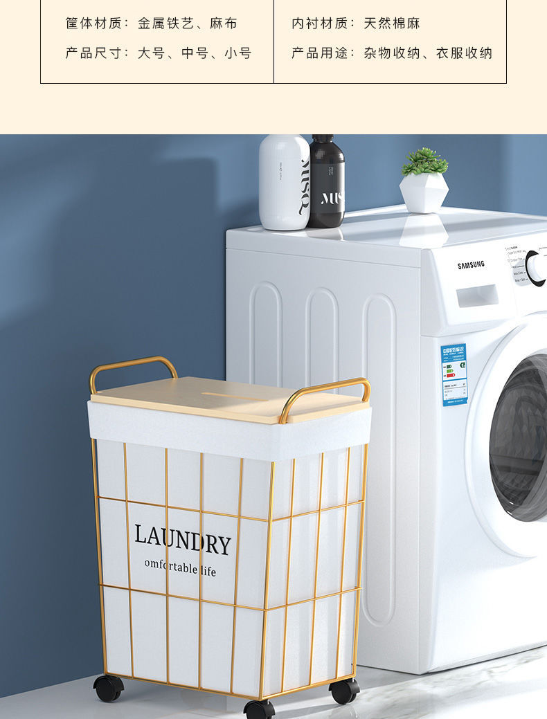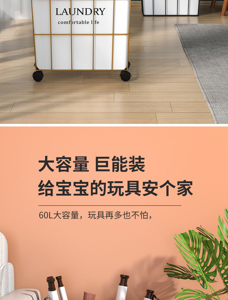 带盖带轮收纳筐 大号玩具家居脏衣篓 铁艺滑轮浴室简约收纳脏衣篮